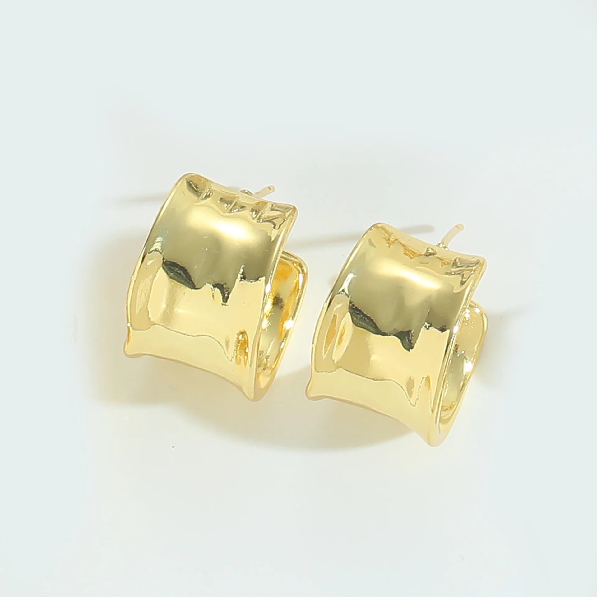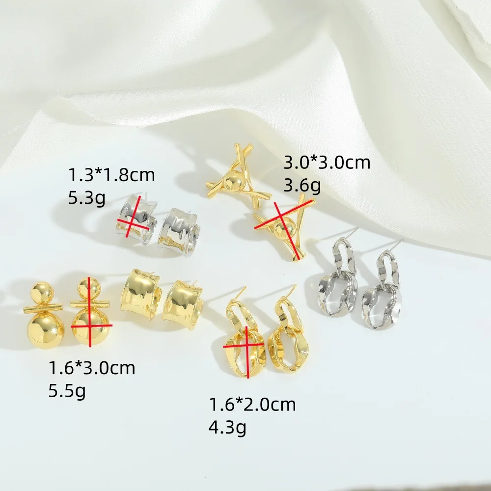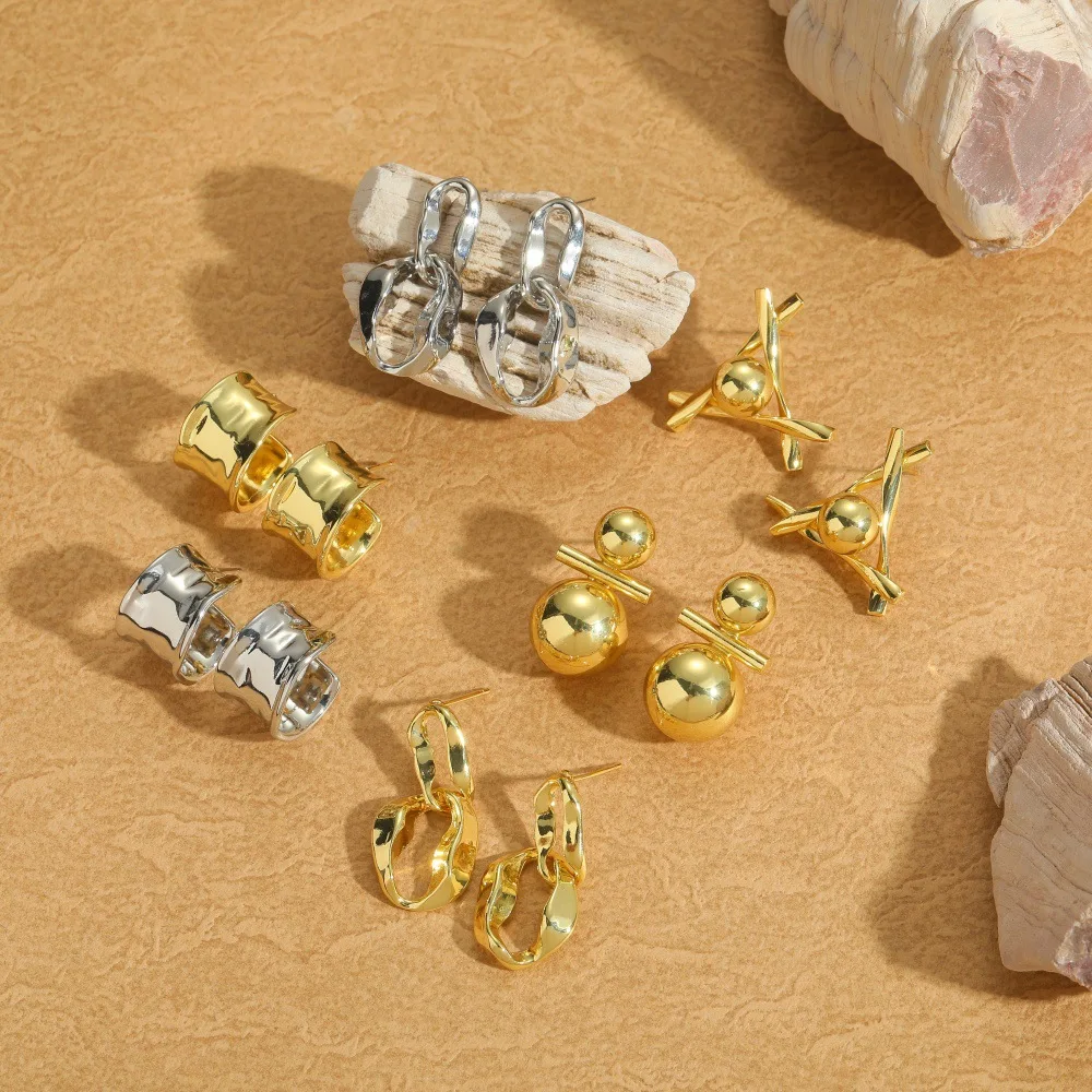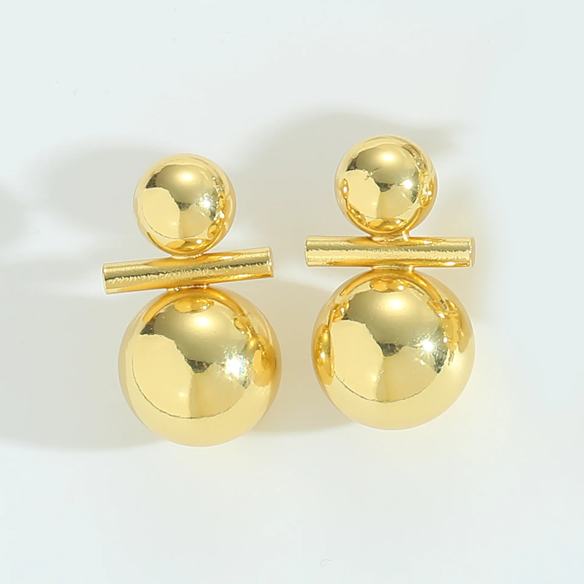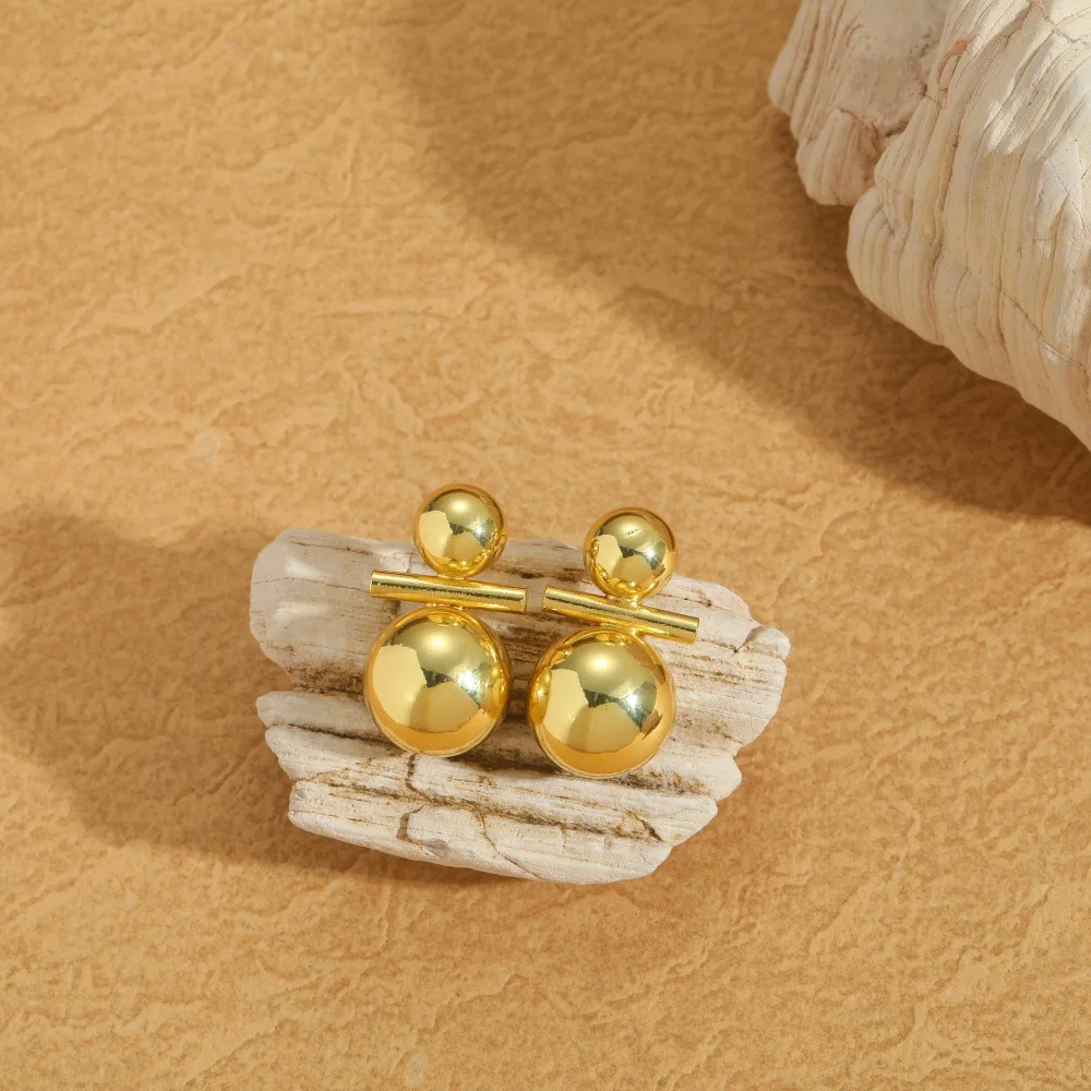 Geometric Spherical Copper Gold Plated Smooth Surface Stud Earrings Minimalist Jewelry for Women