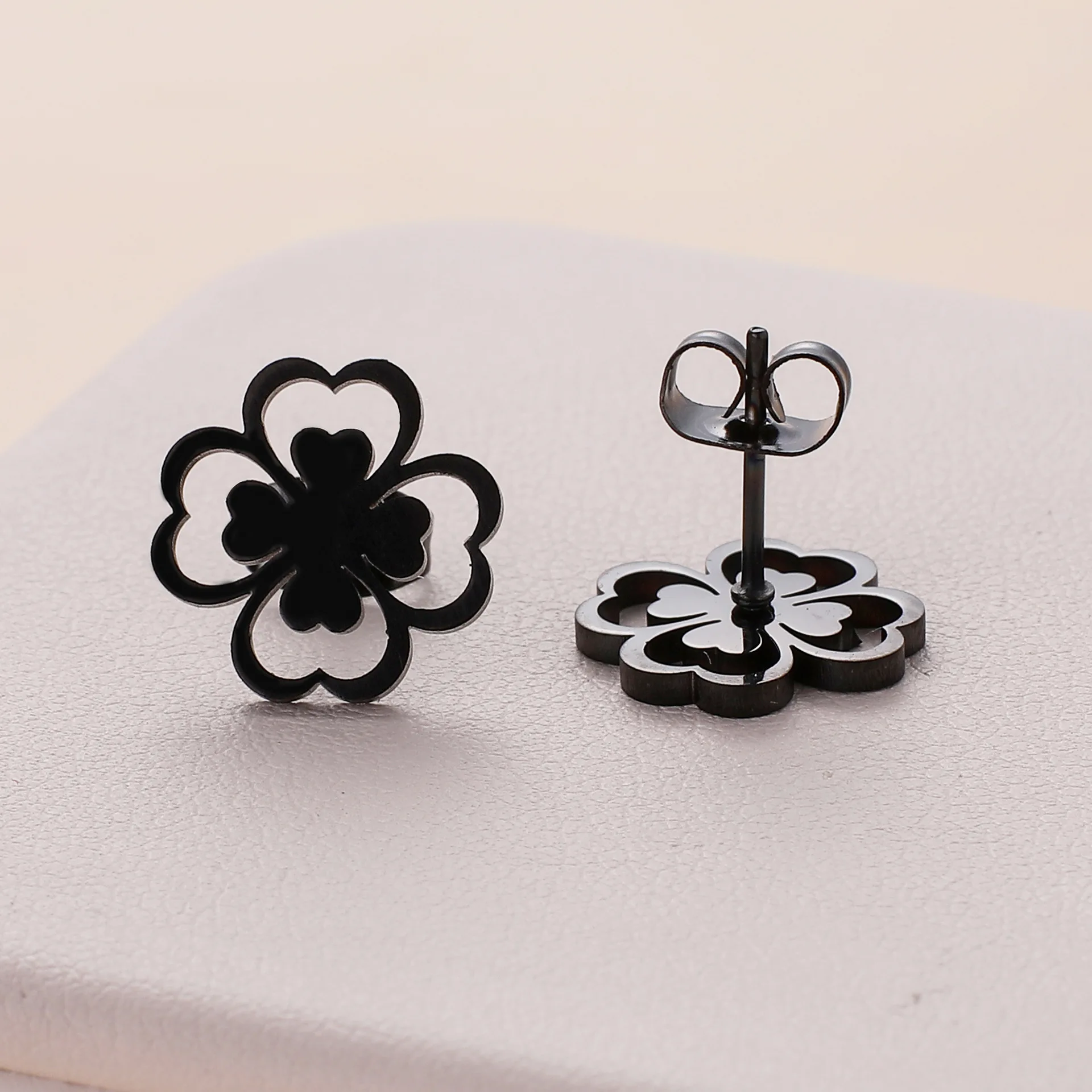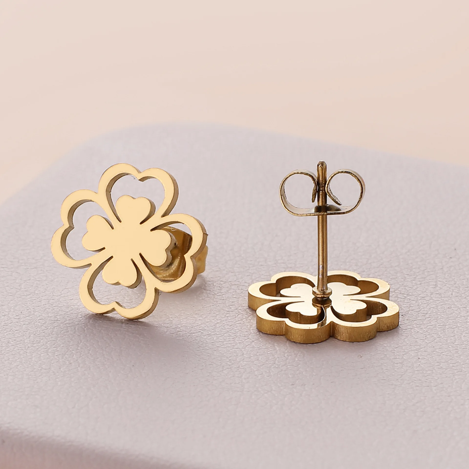 Stylish Personality All-In-One 18k Gold Flowers Earrings Trend Classic Style Clover Cute Fine Earrings Gifts
