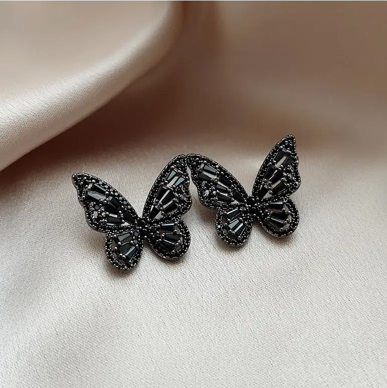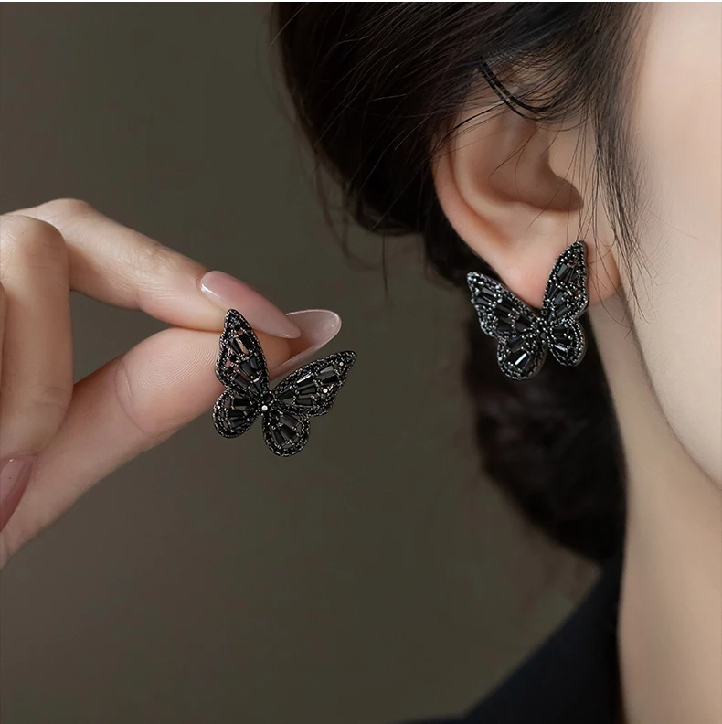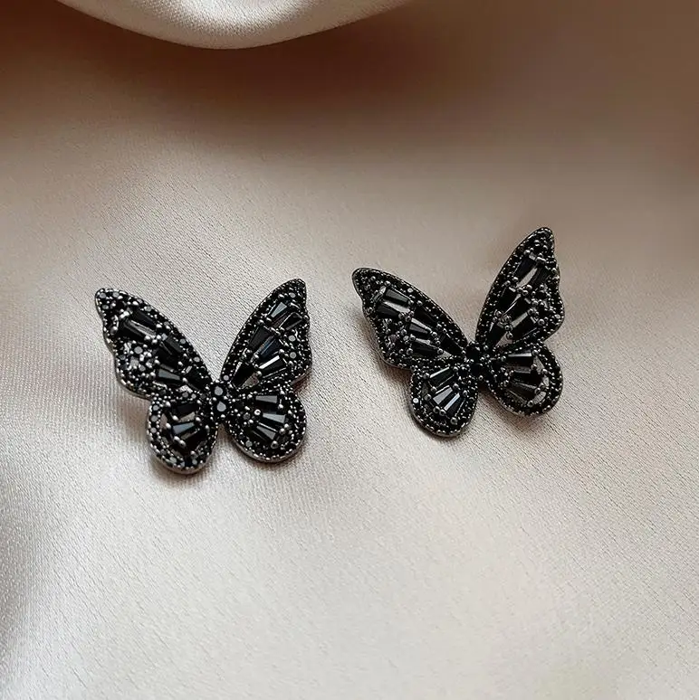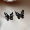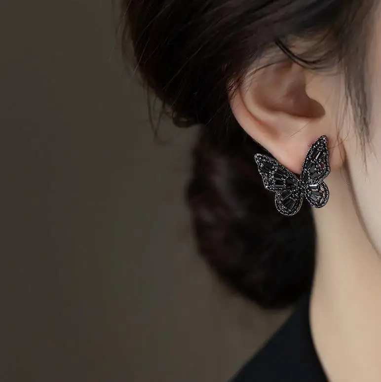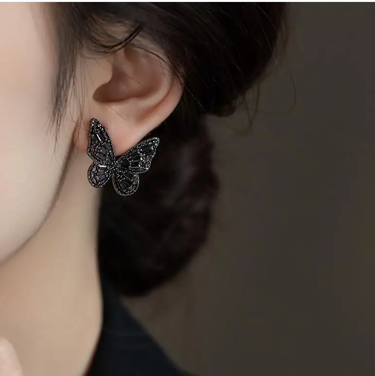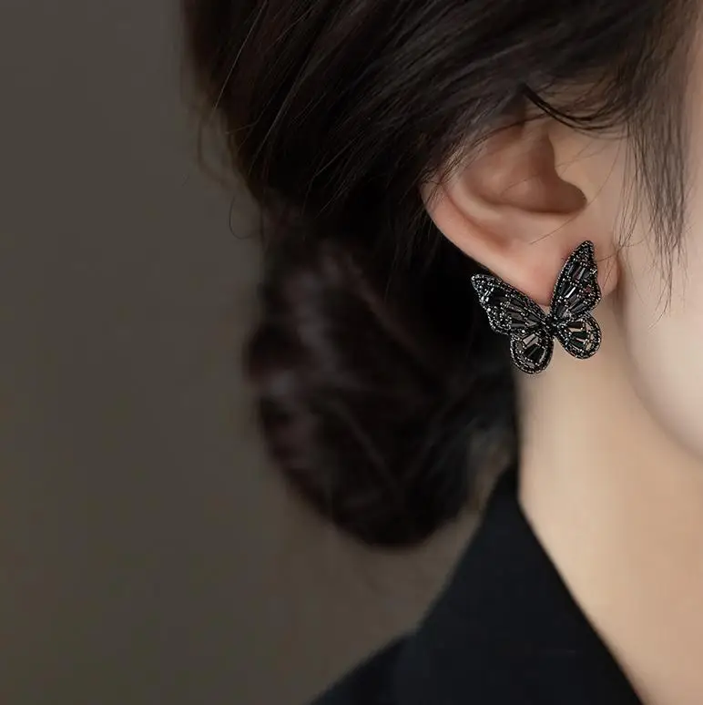 New Hollowed Black Crystal Butterfly Stud Earrings for Women Luxury Modern Jewelry Gift