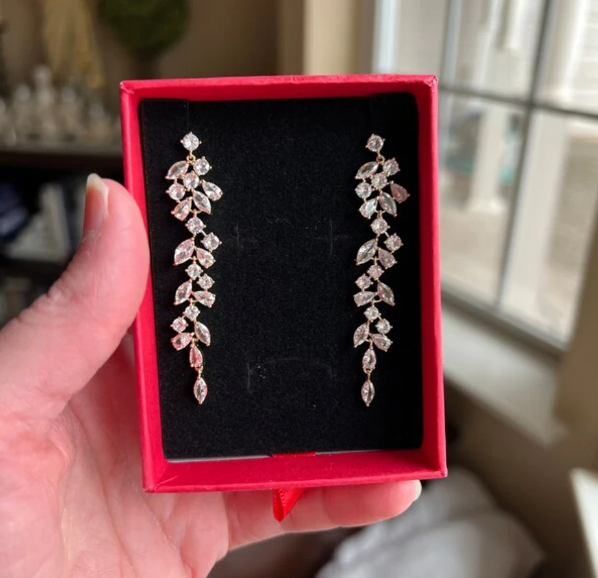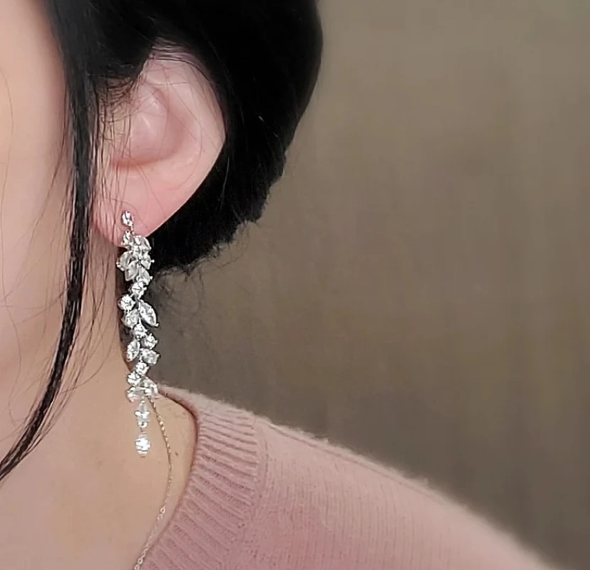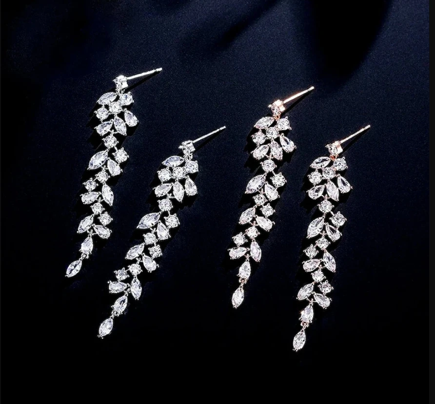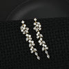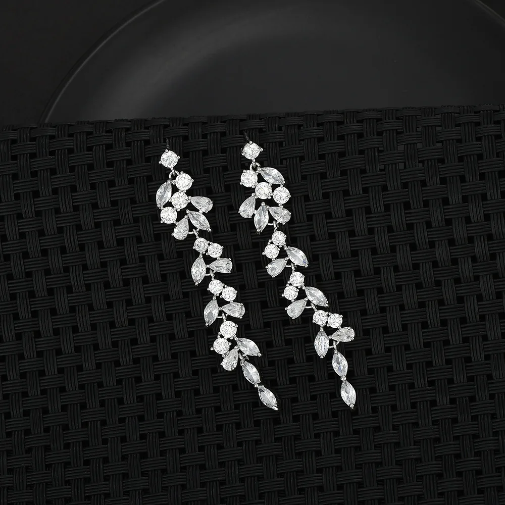 Fashion Bridesmaid Bridal Cubic Zircon Long Tassel Leaf Drop Earrings Fine Jewelry Earrings for Wedding Party Prom