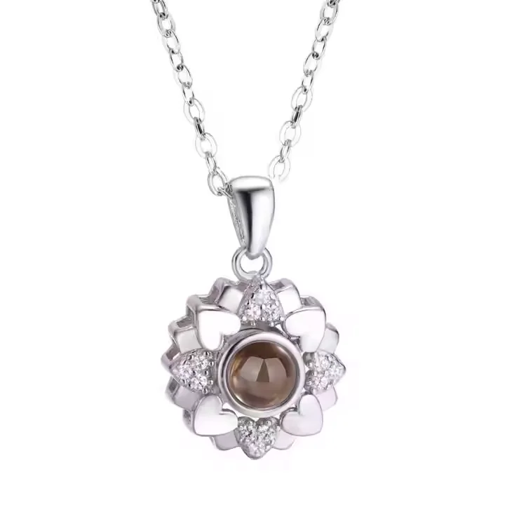 Fashionable Flower 100 Language Diamond Necklace Gold Silver Photo Projection Pendant Necklace for Valentine's Day Gift