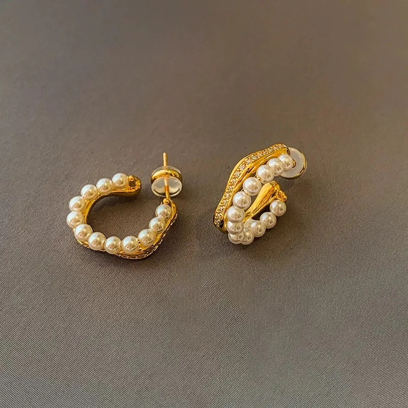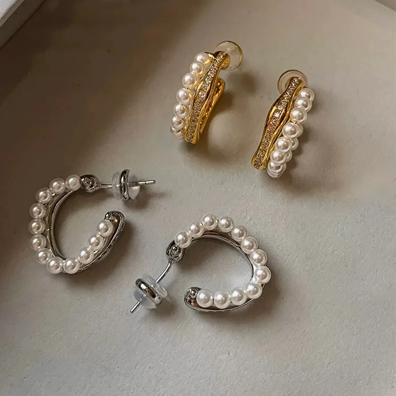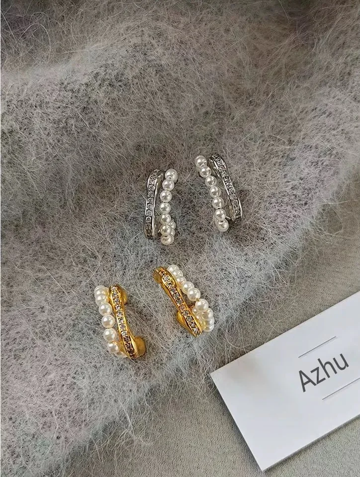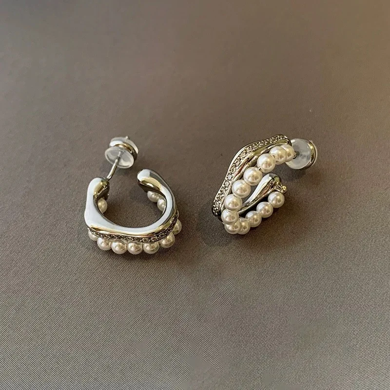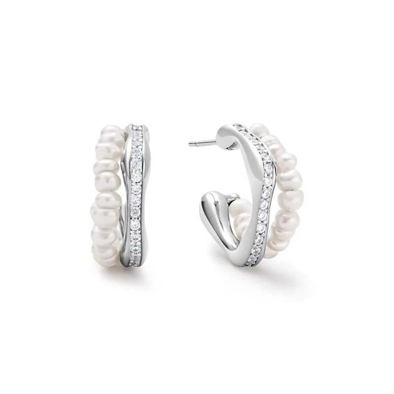 Chic Double Layer Fresh Water Pearl Earrings with Cubic Zirconia Silver 925 Unique Pearl Stud Earrings for Women