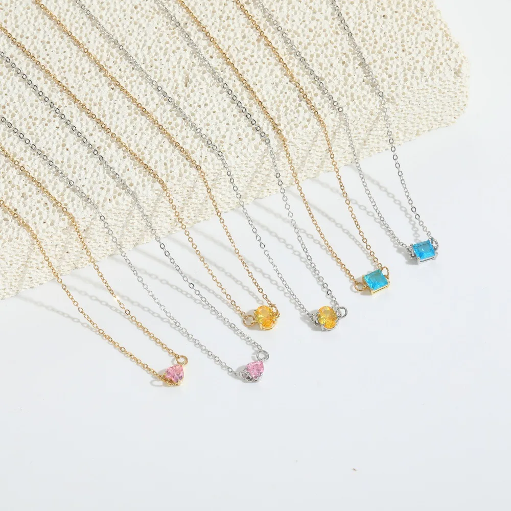 Copper Square Collarbone Chain Necklace - Colorful Minimalist Jewelry for Women Versatile Everyday Choker with Rainbow Hues