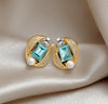 Light Luxury 18k Gold Plated Geometric Square Green zircon Pearl Earrings Fashion Jewelry for Women