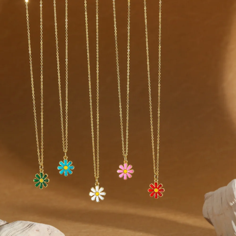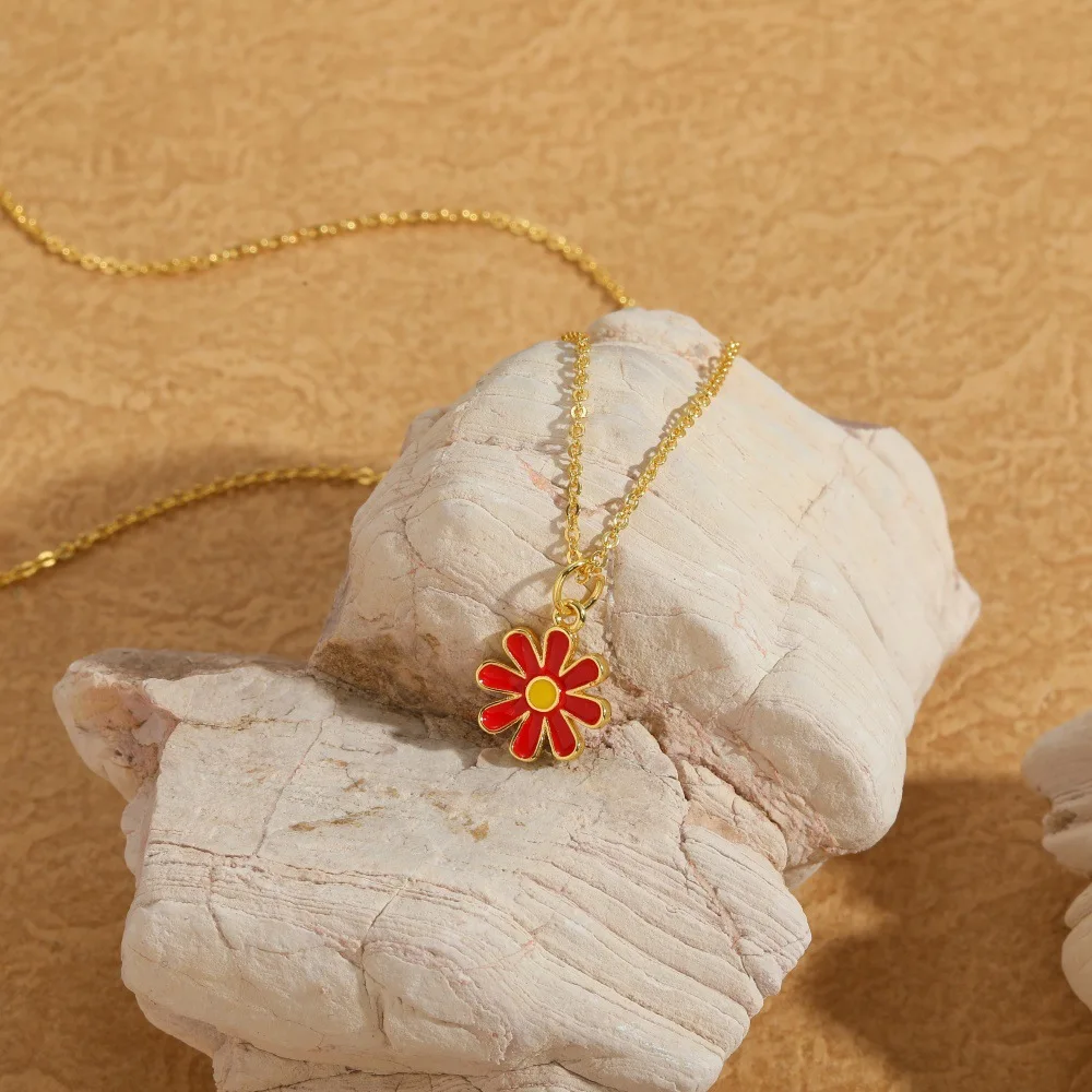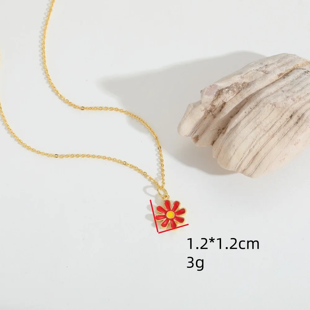 Copper Alloy Floral Pendant Necklace Boho Chic Jewelry for Women Minimalist Garden Style Delicate Chain for Girls