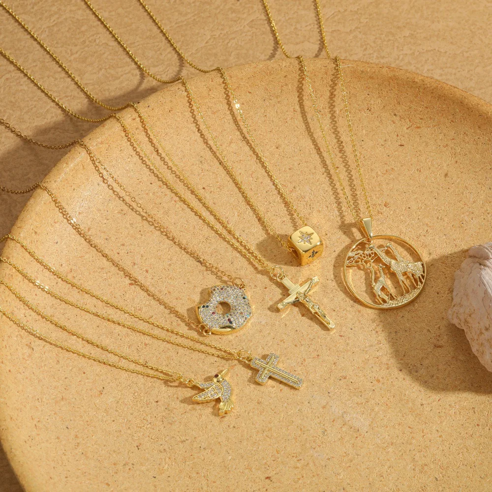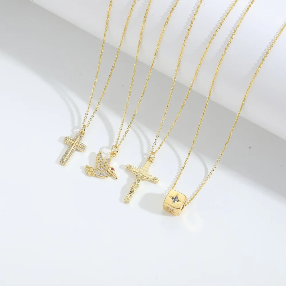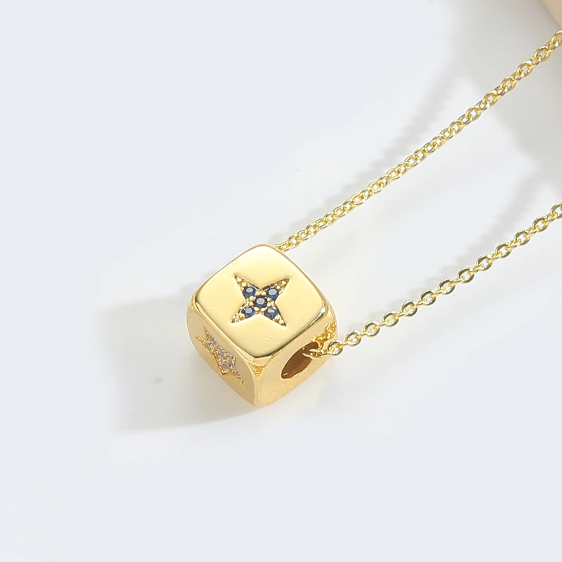 Personalized square Gold Dice Pendant Necklace New Custom Cross Pendant Pure Fine Jewelry Necklace for Women