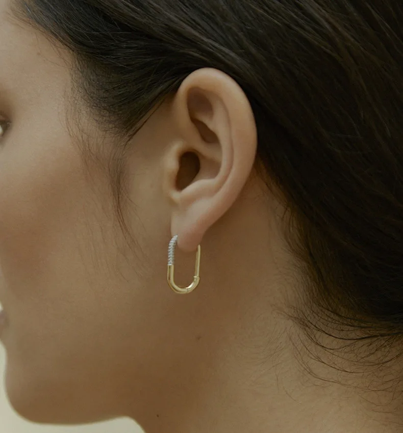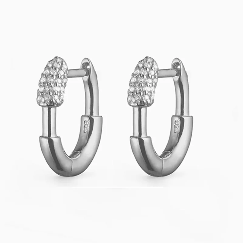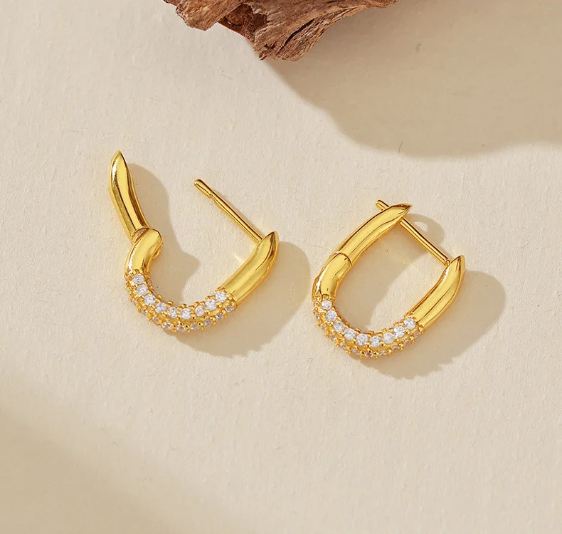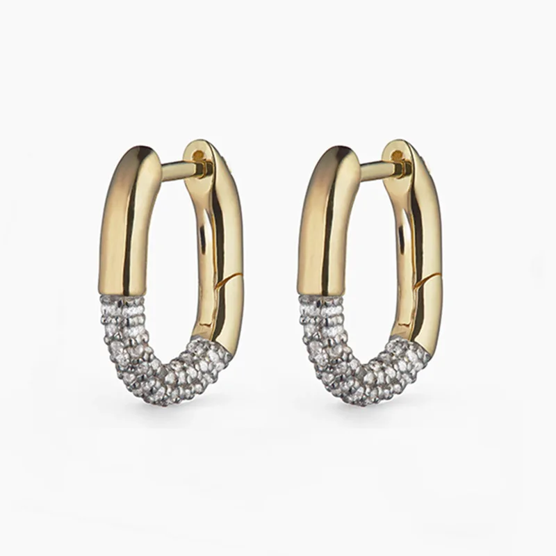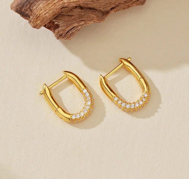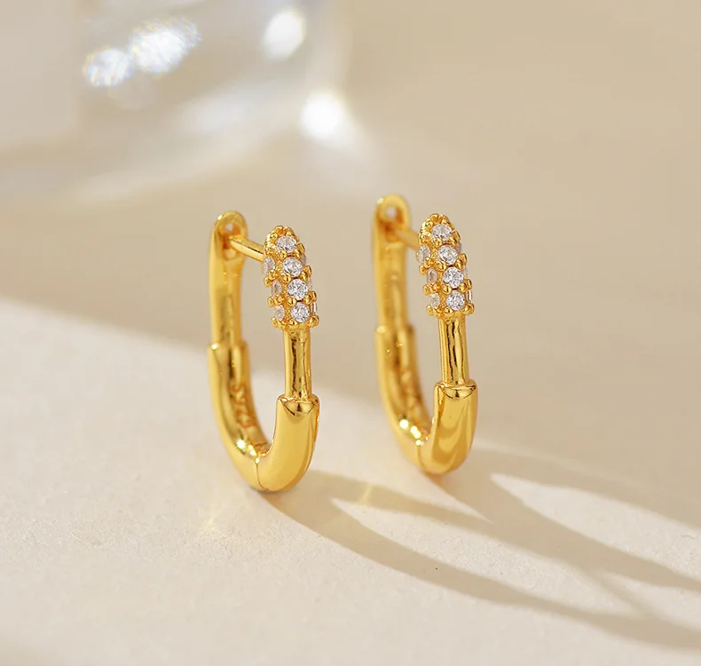 Fashion Trendy 18k Gold Plated Pin Oval Earrings for Women Minimalist Style Zircon Hoop Earrings