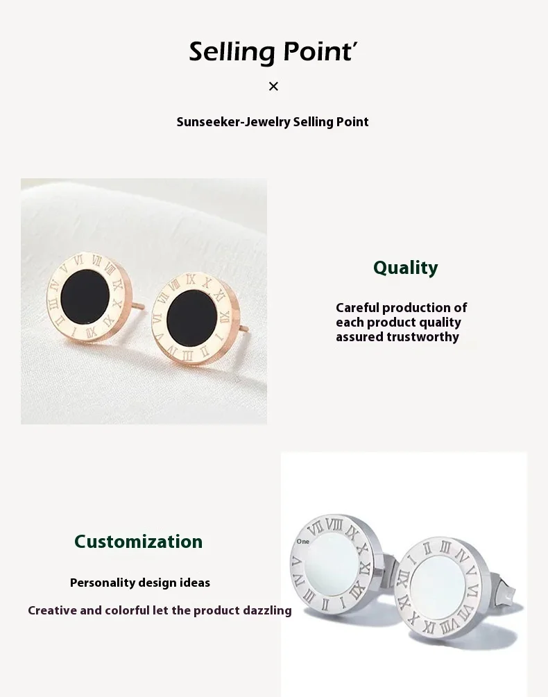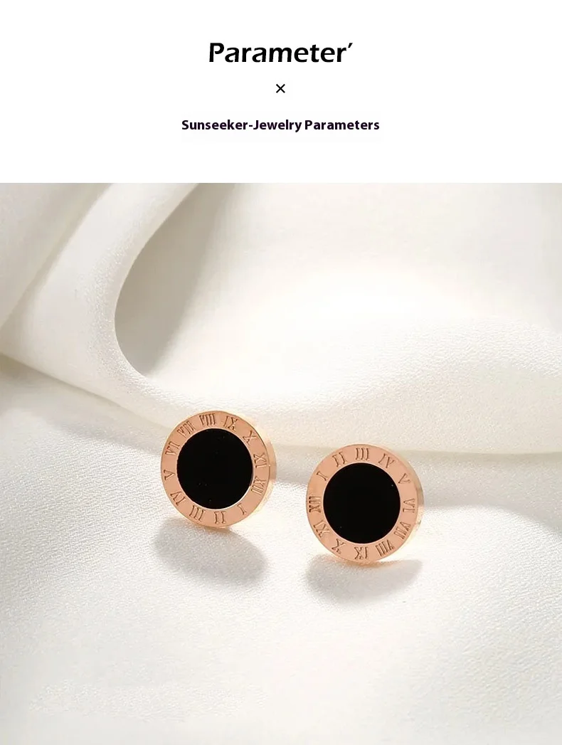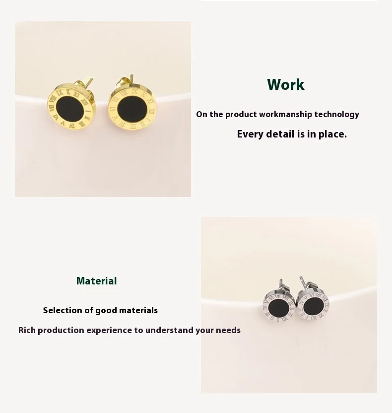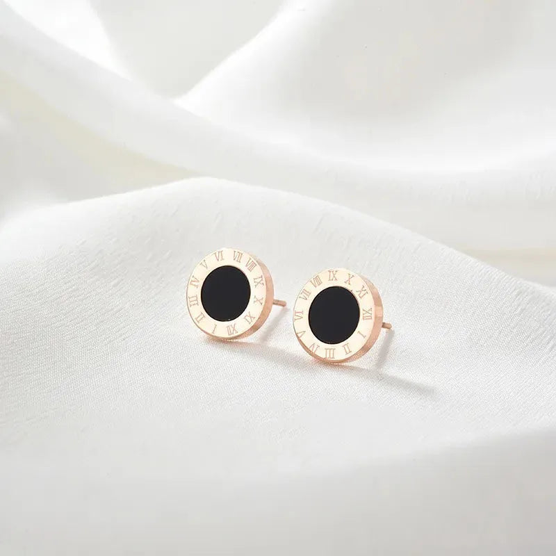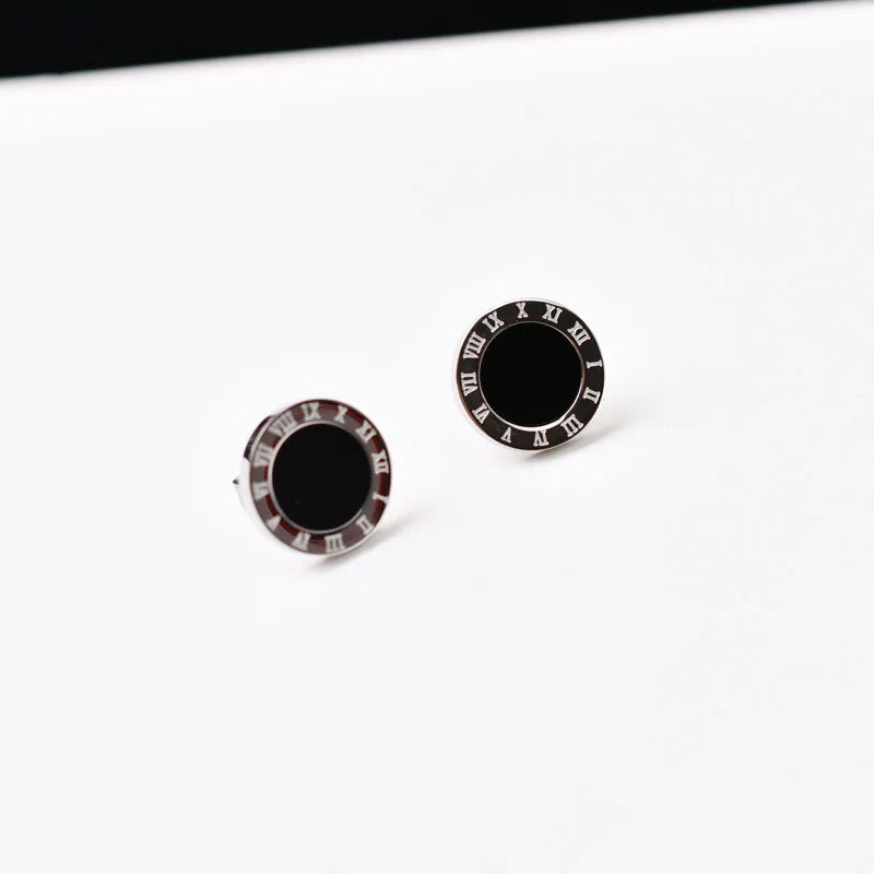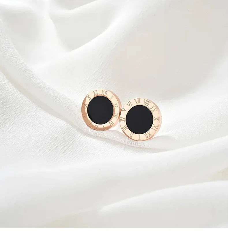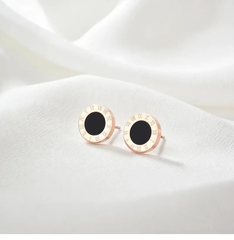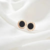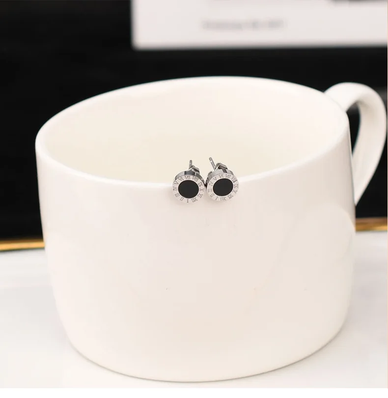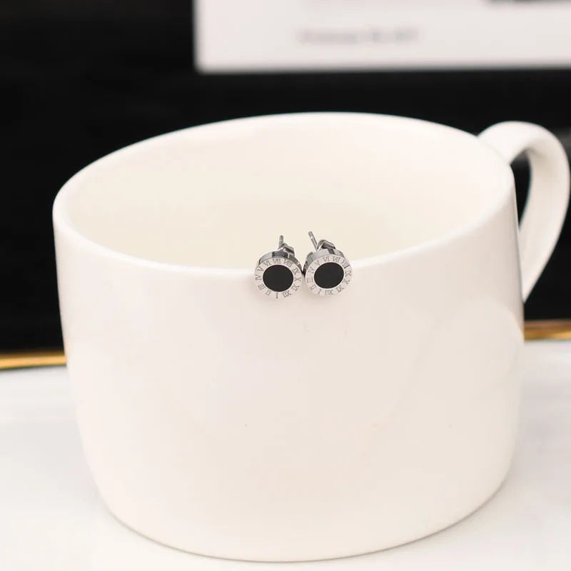 Women's Titanium Steel Roman Numeral Earrings - Black Acrylic Minimalist Hoop Ear Studs Wholesale Fashion Jewelry
