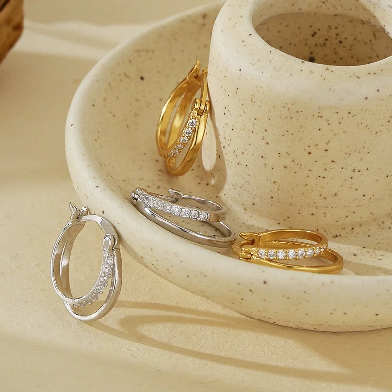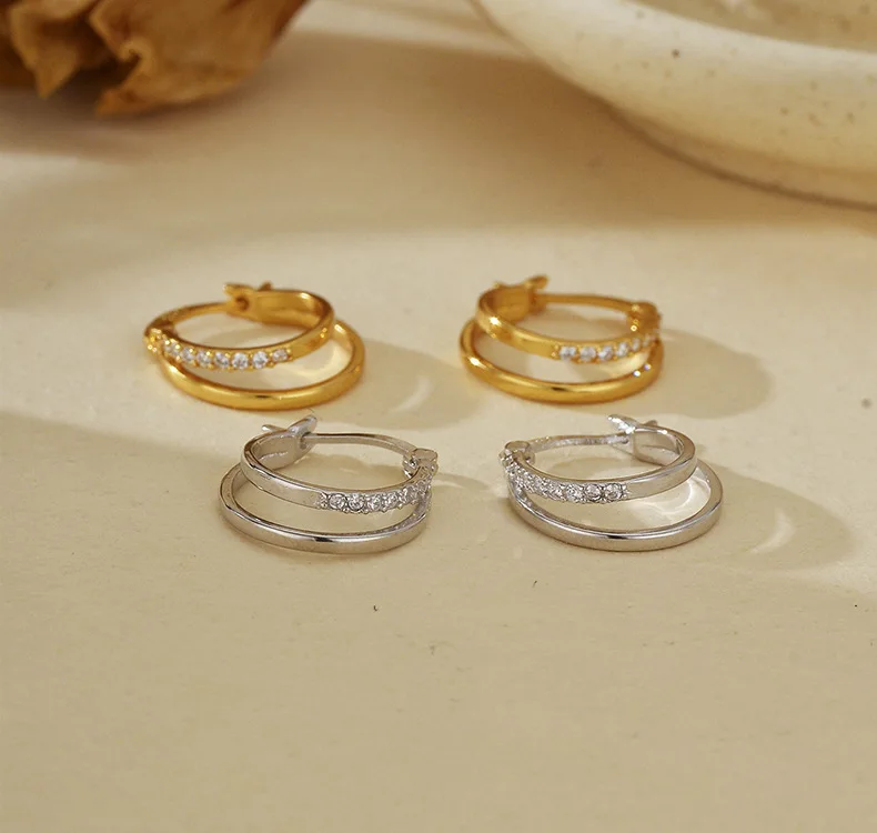 Women's Jewelry Wholesale Minimalist Huggie Earrings in 925 Sterling Silver & Gold Plated