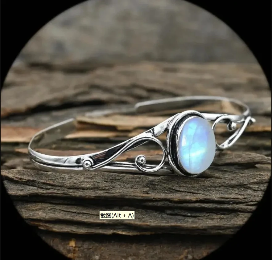 Rainbow Moonstone Bracelet Stylish Antique Silver Polished Adjustable Handmade Oval Opal Unisex Cuff Bracelet Her Gift