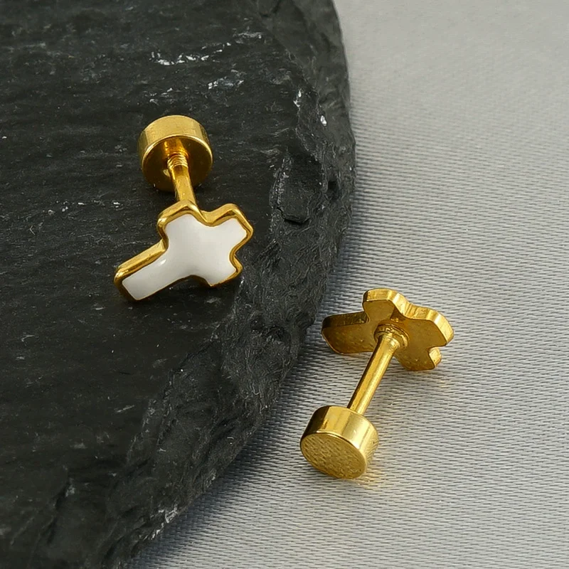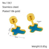 Elegant Stainless Steel Enamel Cross Stud Earrings With 18K Gold Plating for Women and Girls