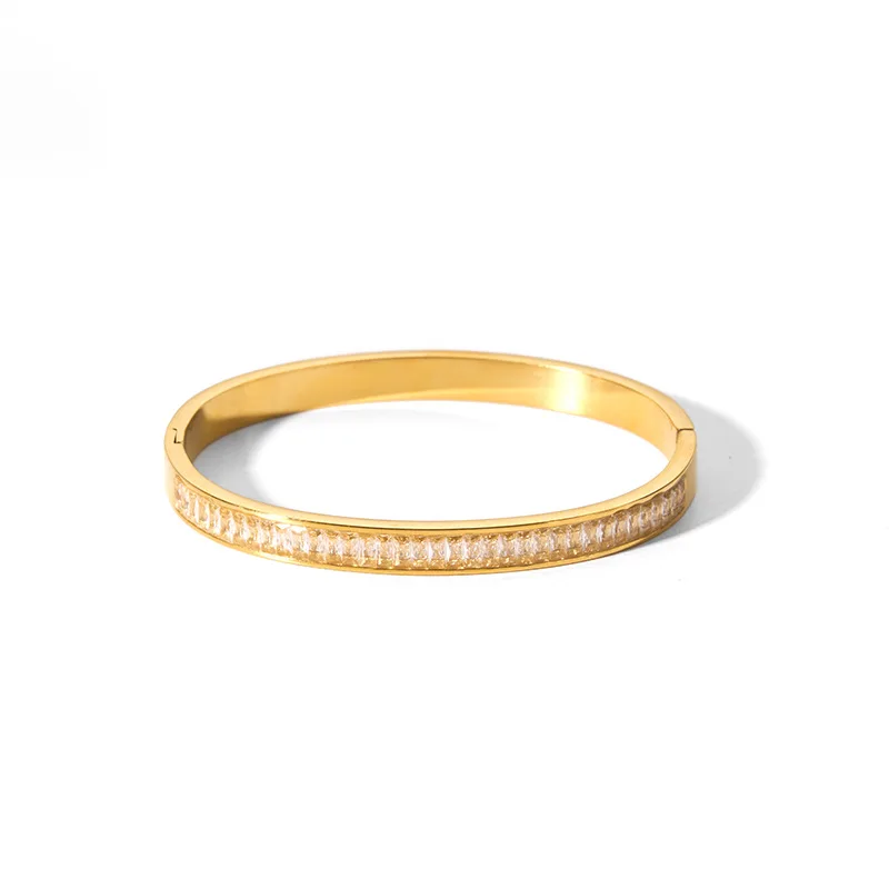Trendy 18K Gold PVD Electroplated Stainless Steel Bracelet with Zirconia Inlay Everyday Sophistication Bangles