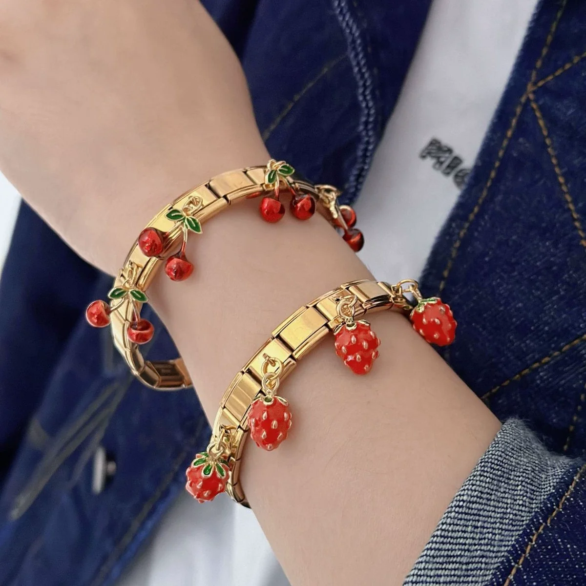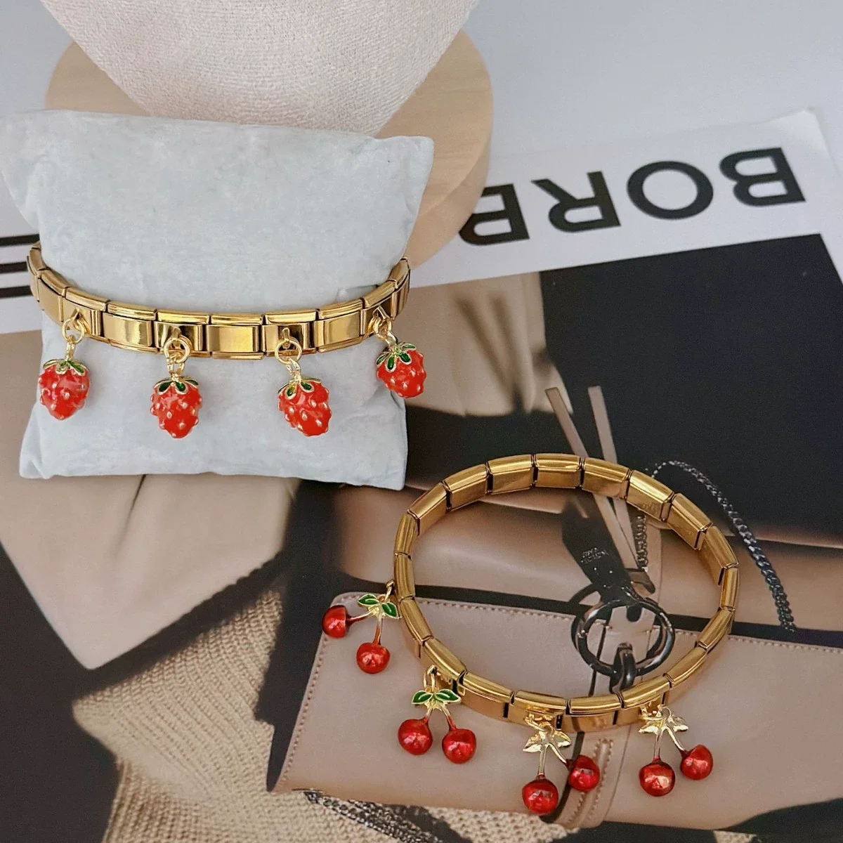 Handmade Italian Stainless Steel Bracelet New & Lovely Strawberry Cherry Charm Personalized Jewelry Fashionable Bangles
