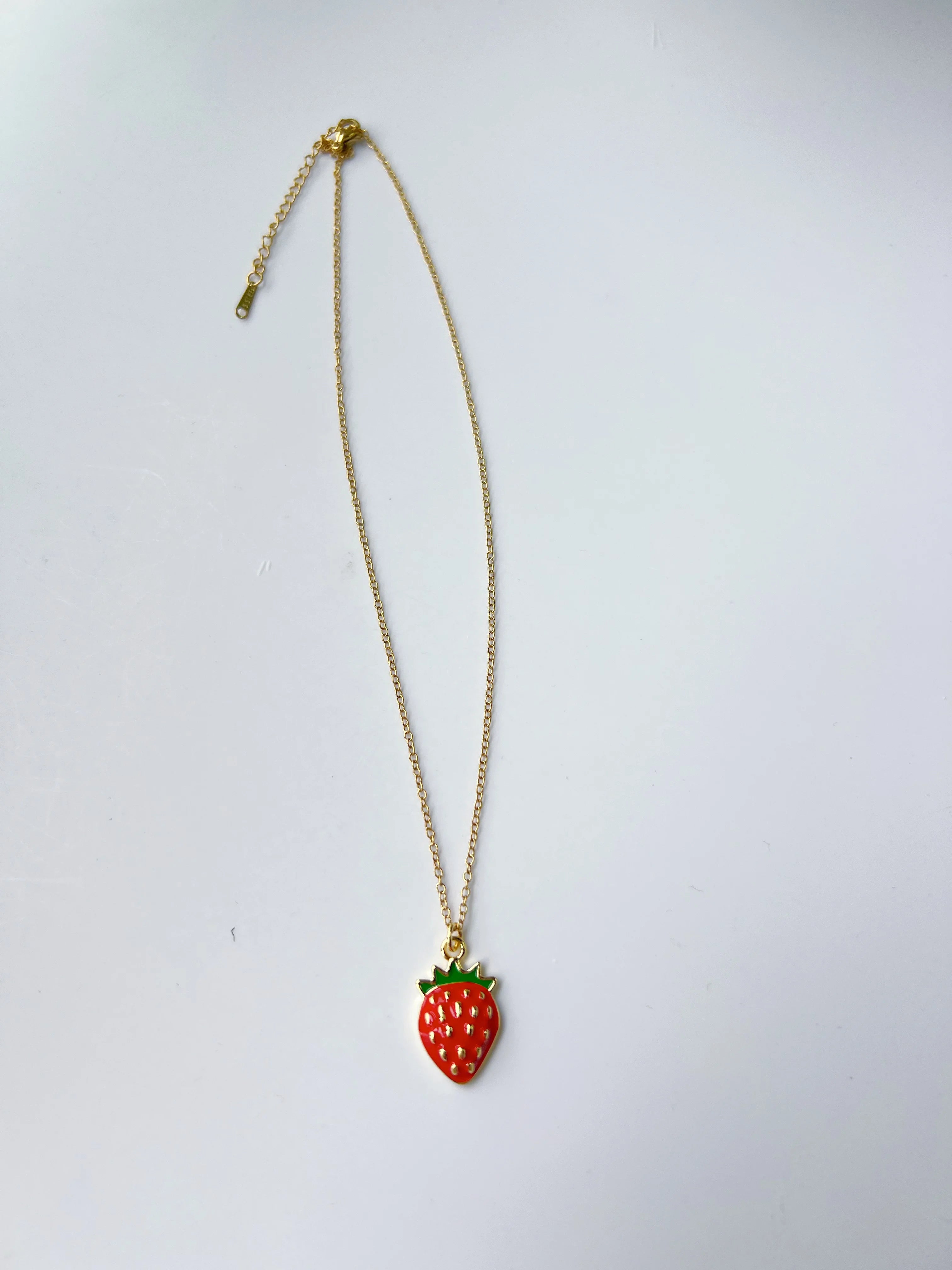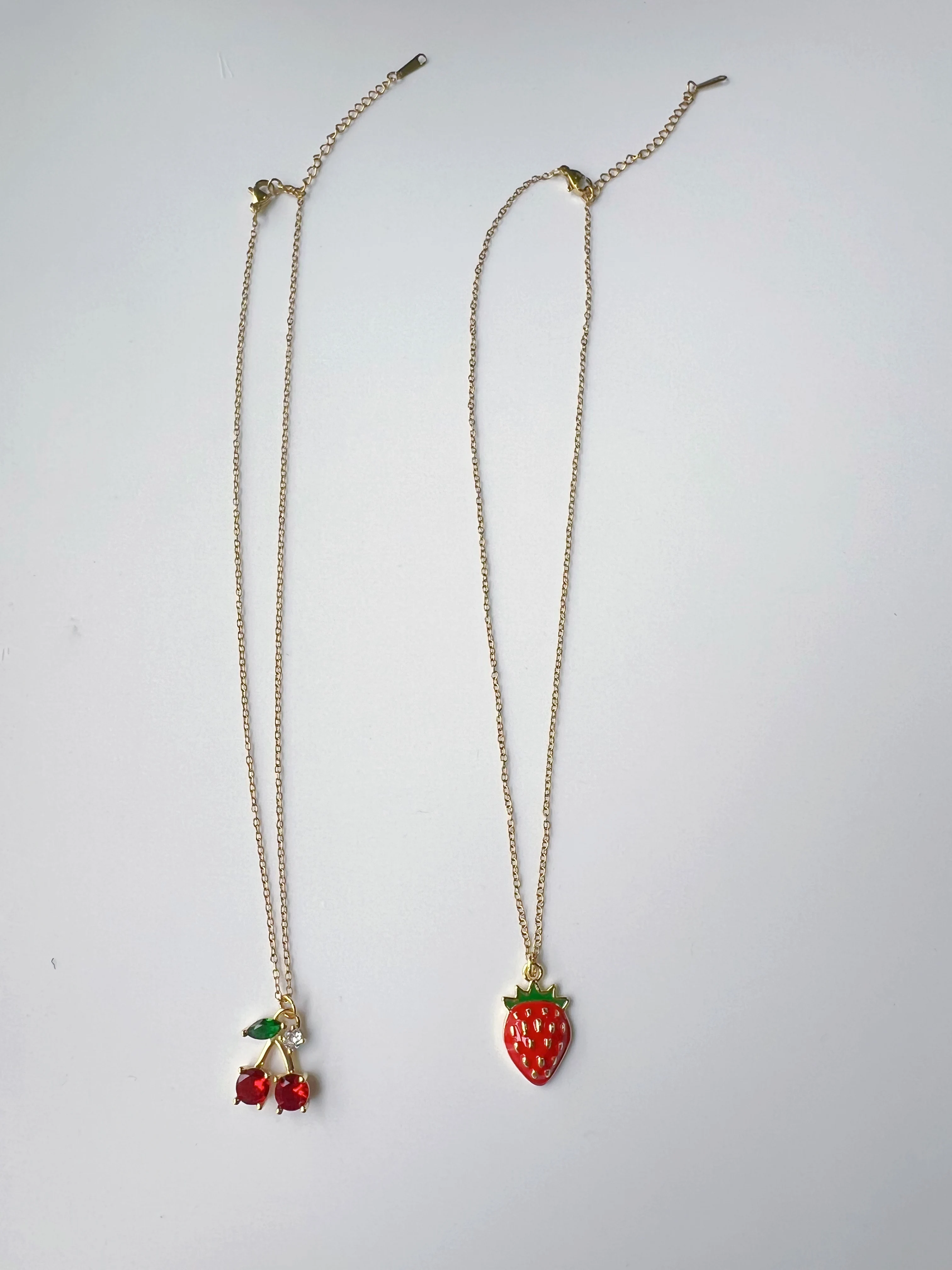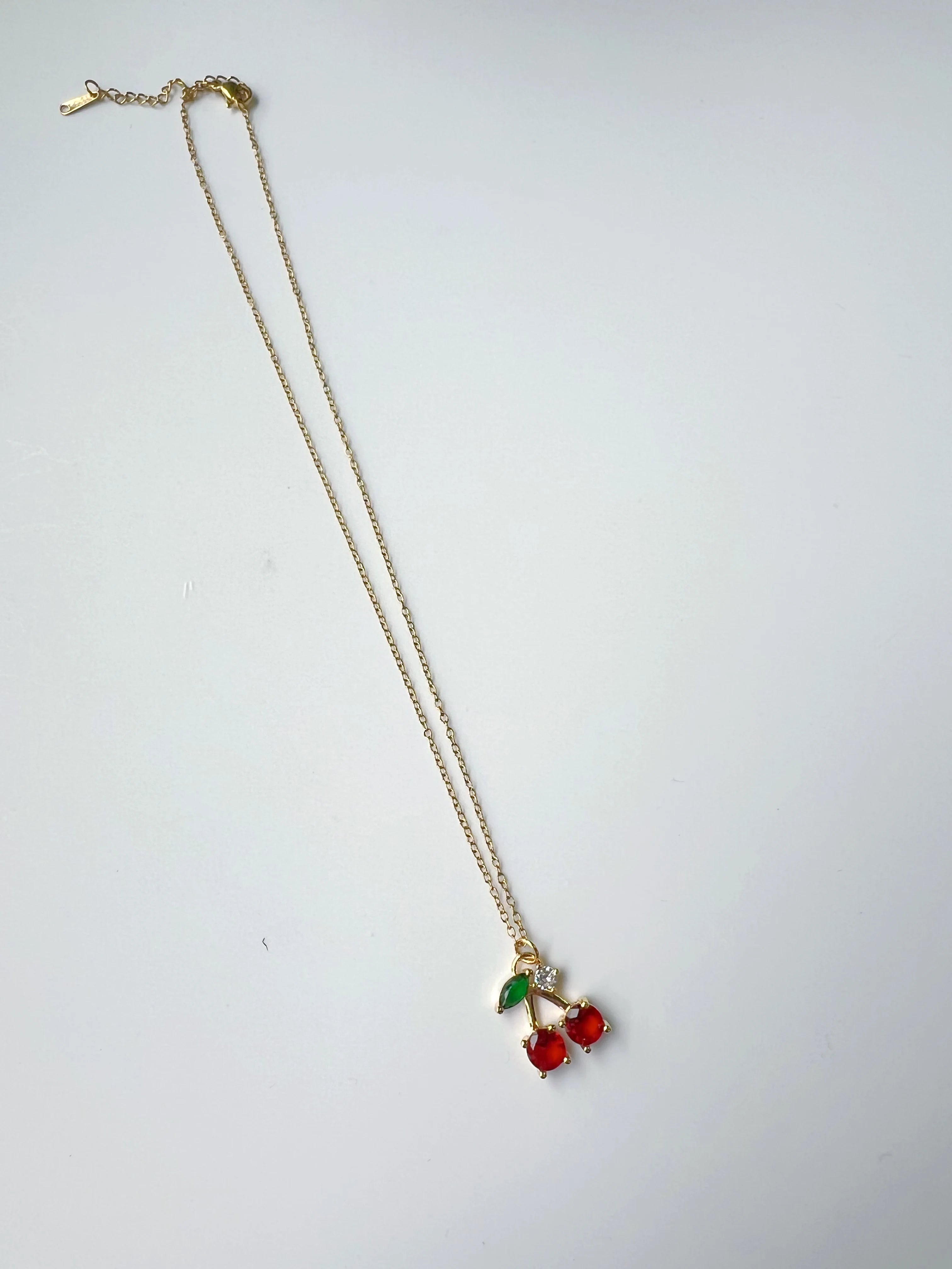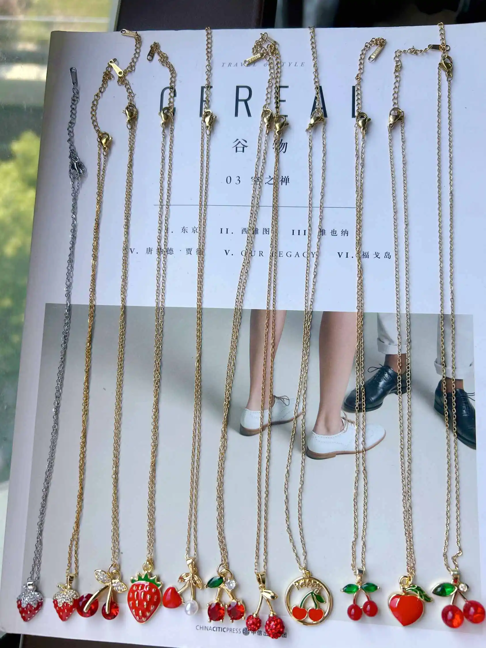 Wholesale Stainless Steel Cherry Strawberry Zircon Necklace Gold Plated Red Cherry Fruit Pendant Necklace for Women Gifts