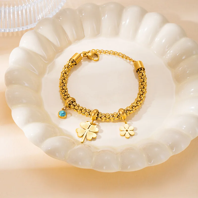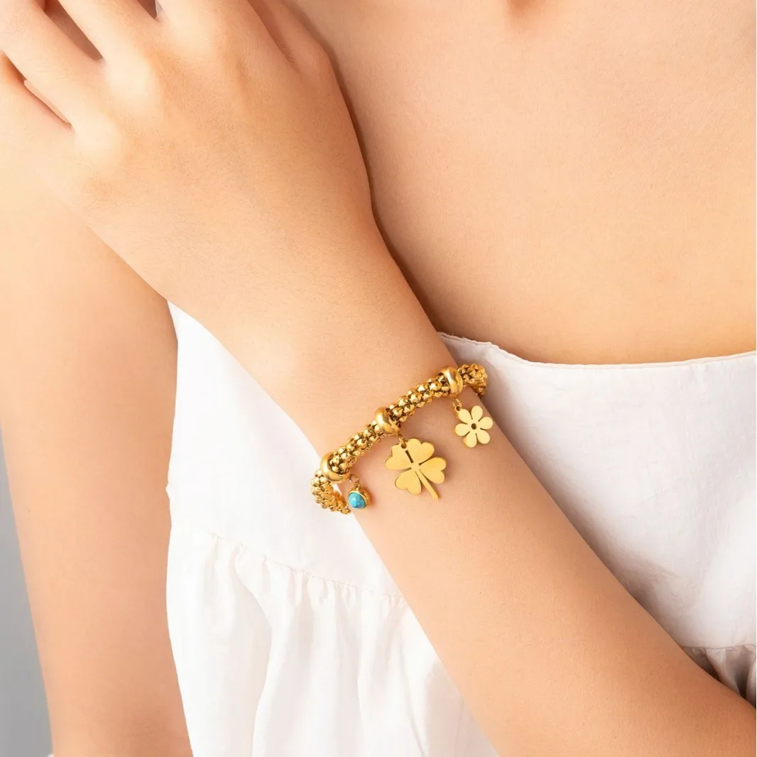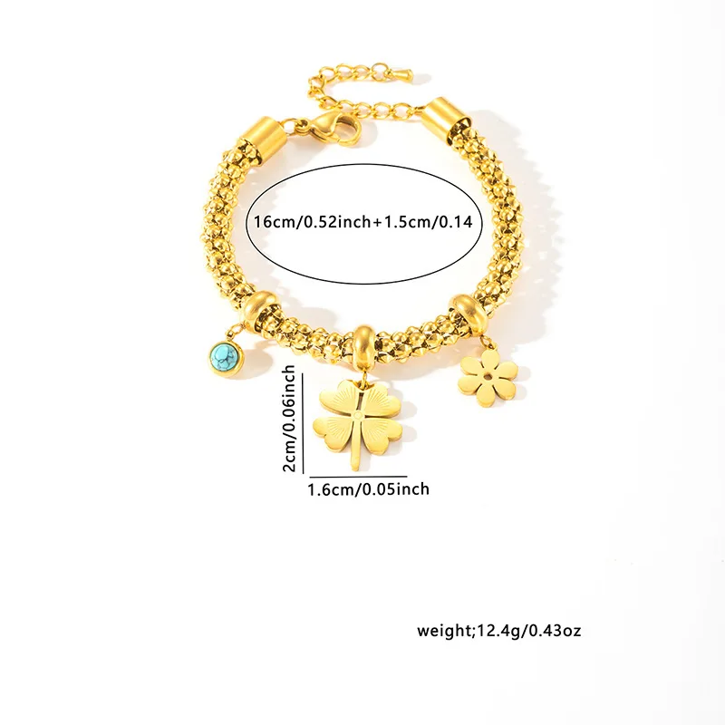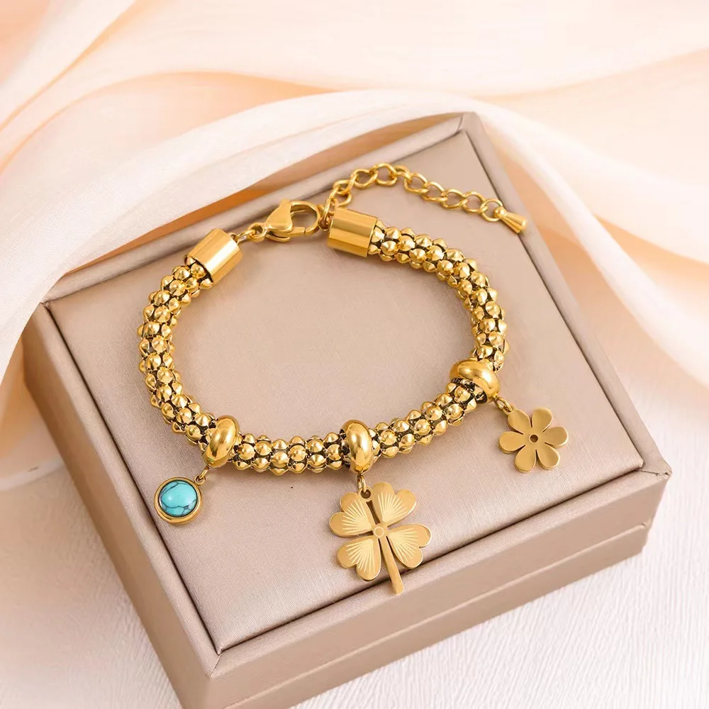 High Quality Stainless Steel Clover Bracelet 18k Gold Non Tarnish Waterproof 4 Leaf Clover Bracelet for Lady