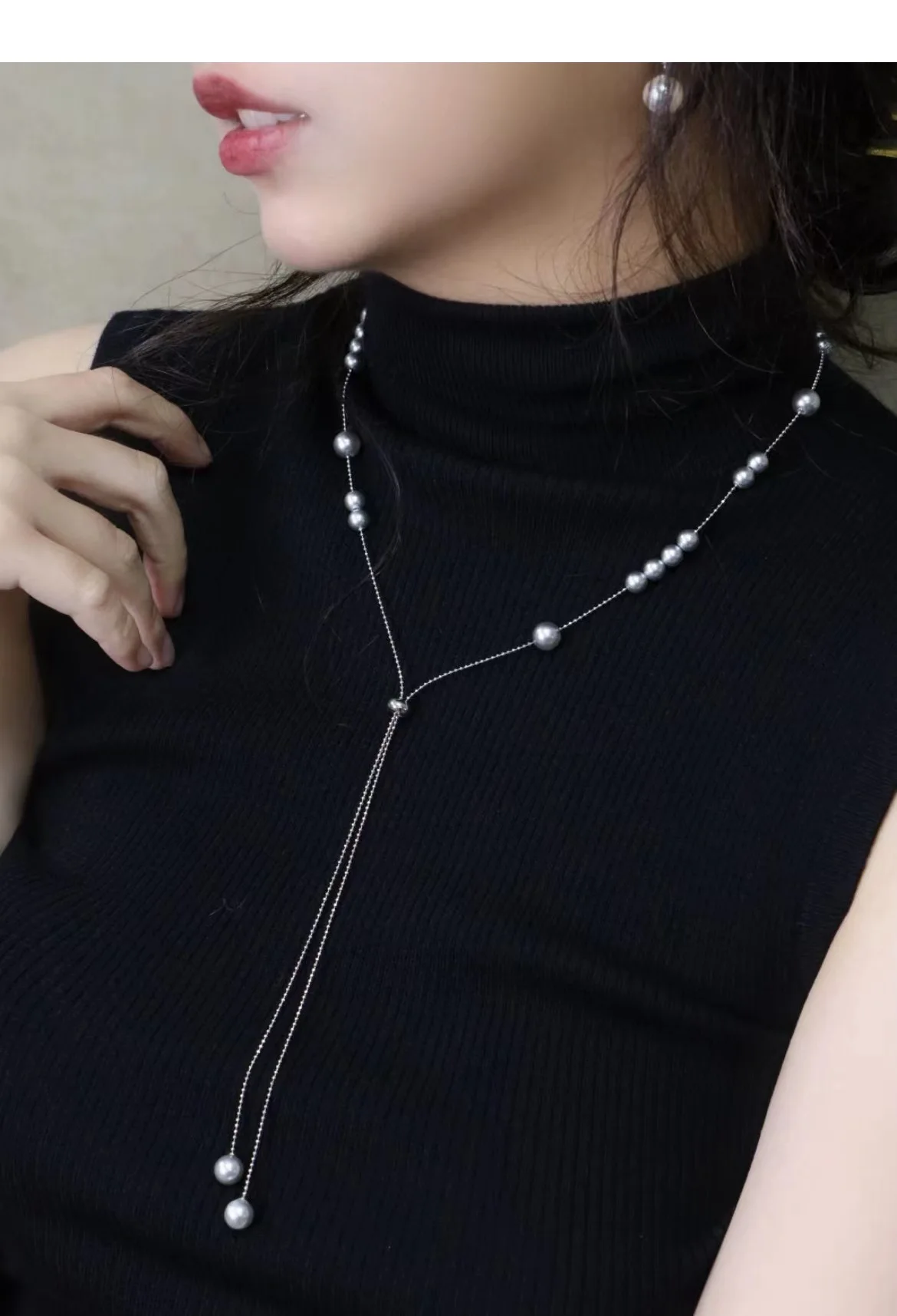 Fashionable Long Pearl Necklace for Women French Retro a Multi-wear Pearl Necklace Jewelry