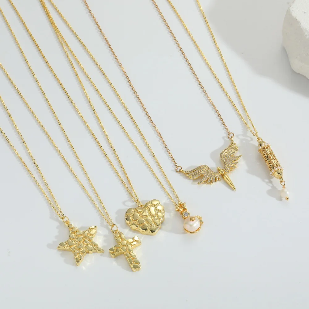 Elegant 14K Gold Plated Angel Wing Pendant Necklace With Premium Copper Rope Chain for Women and Girls