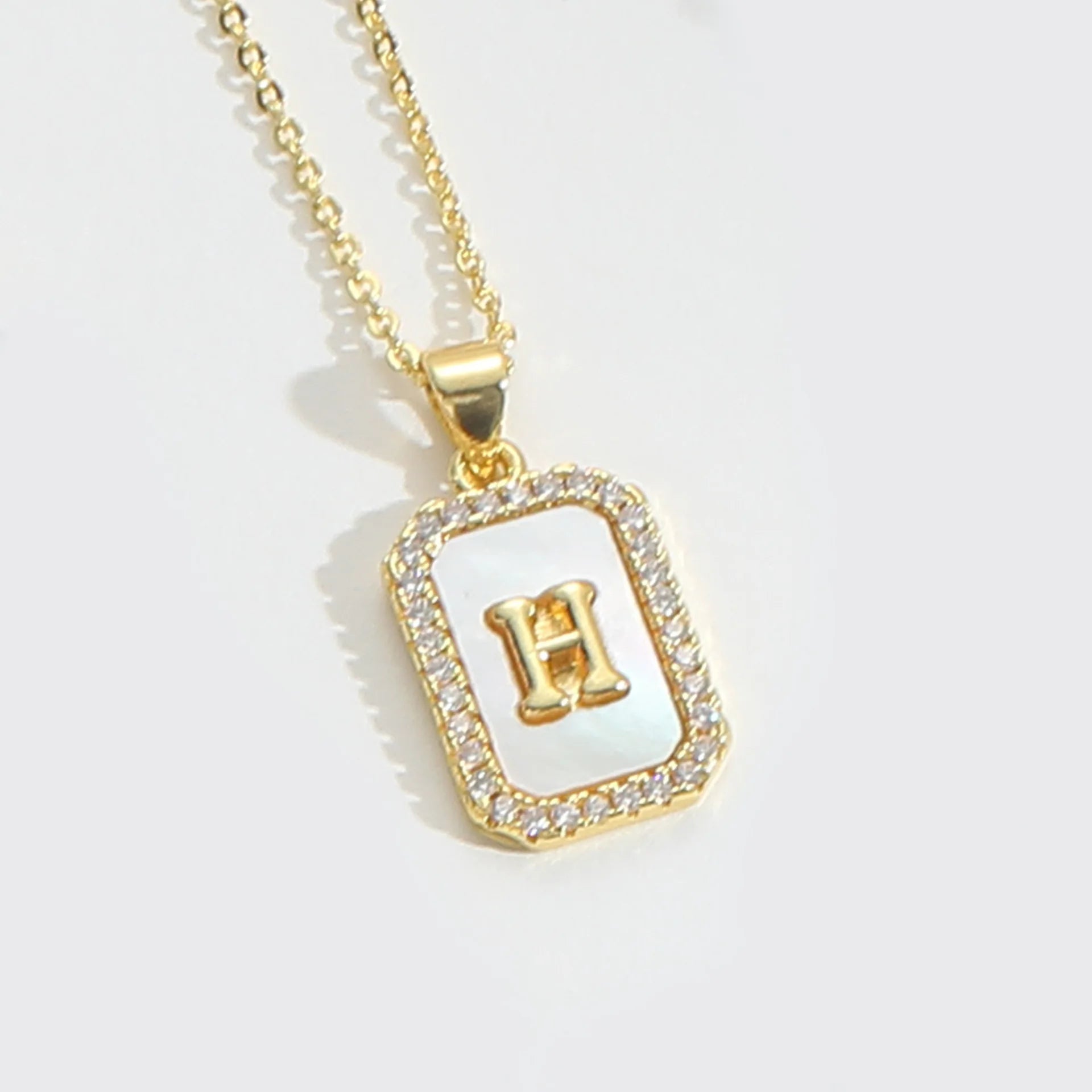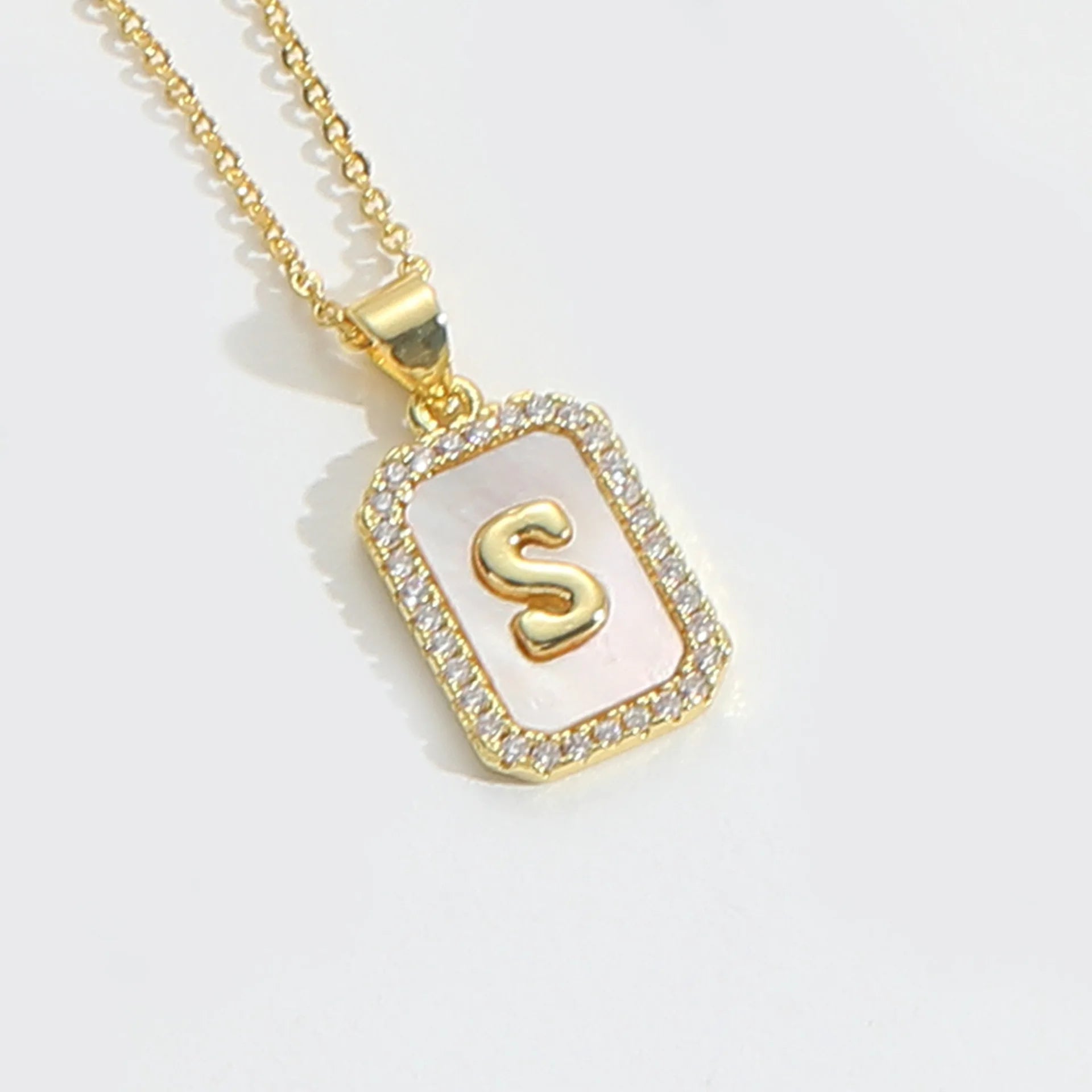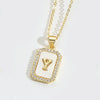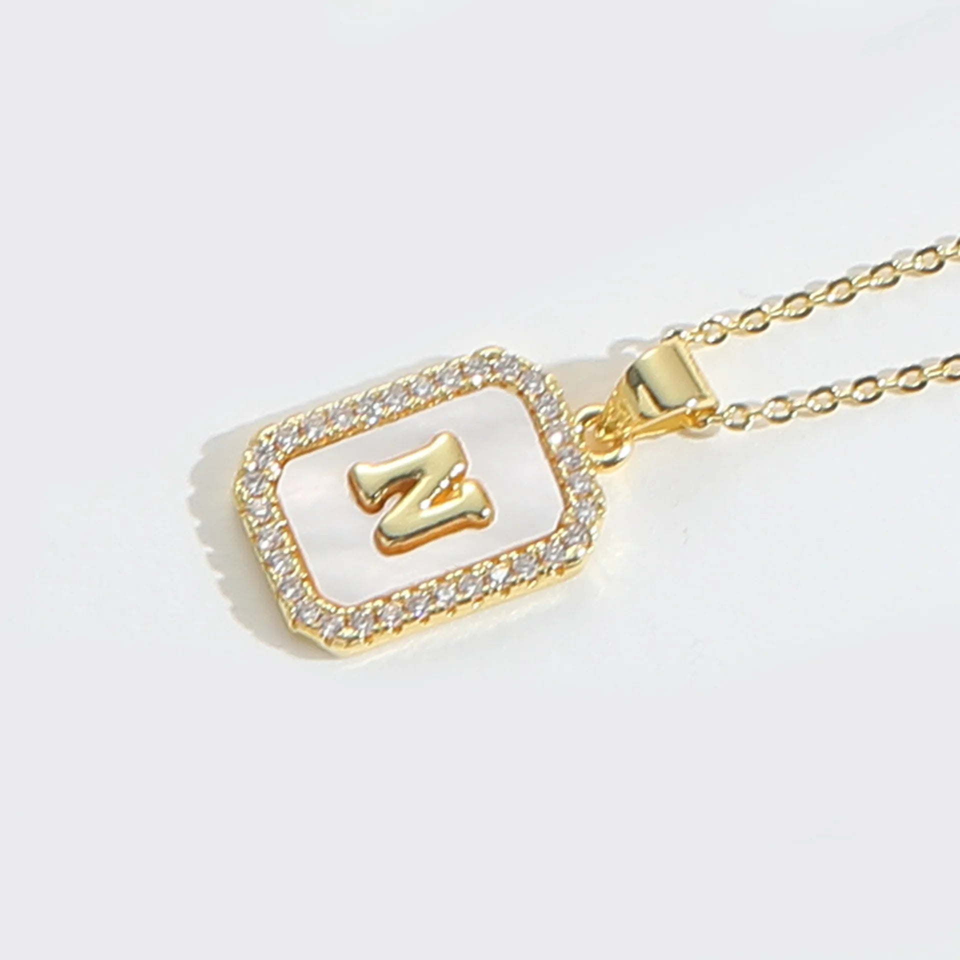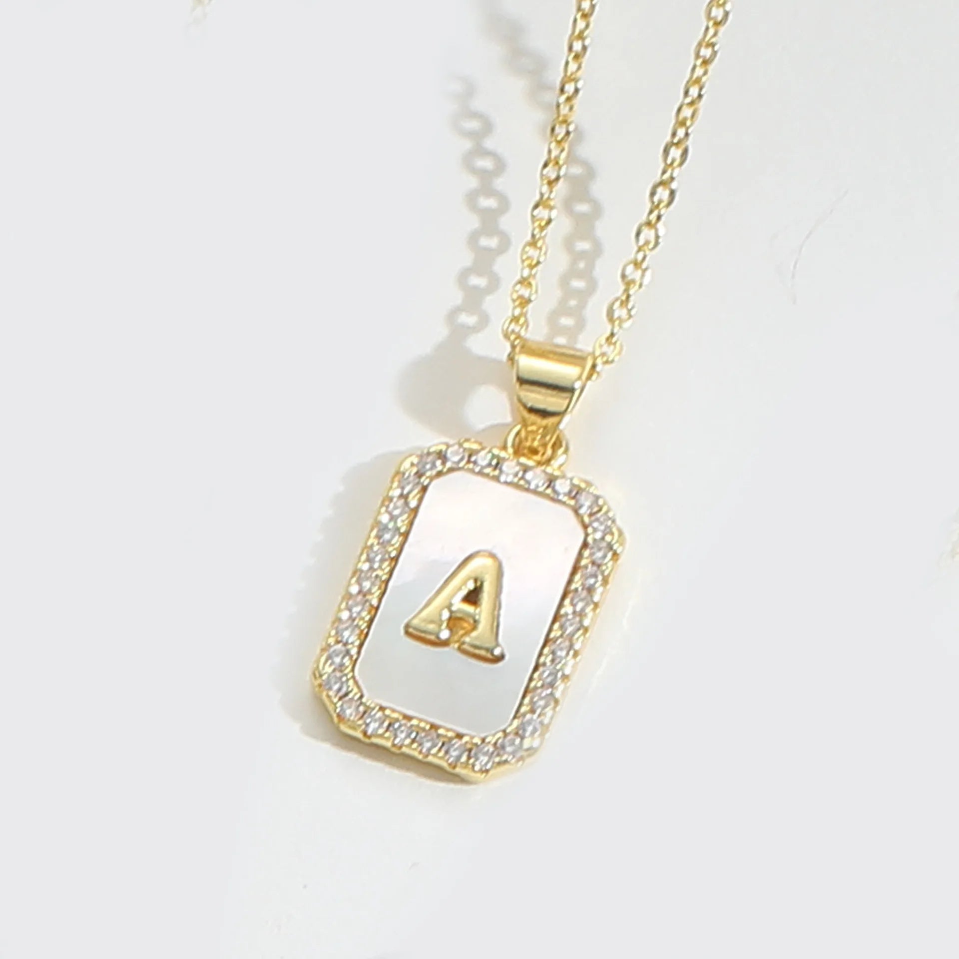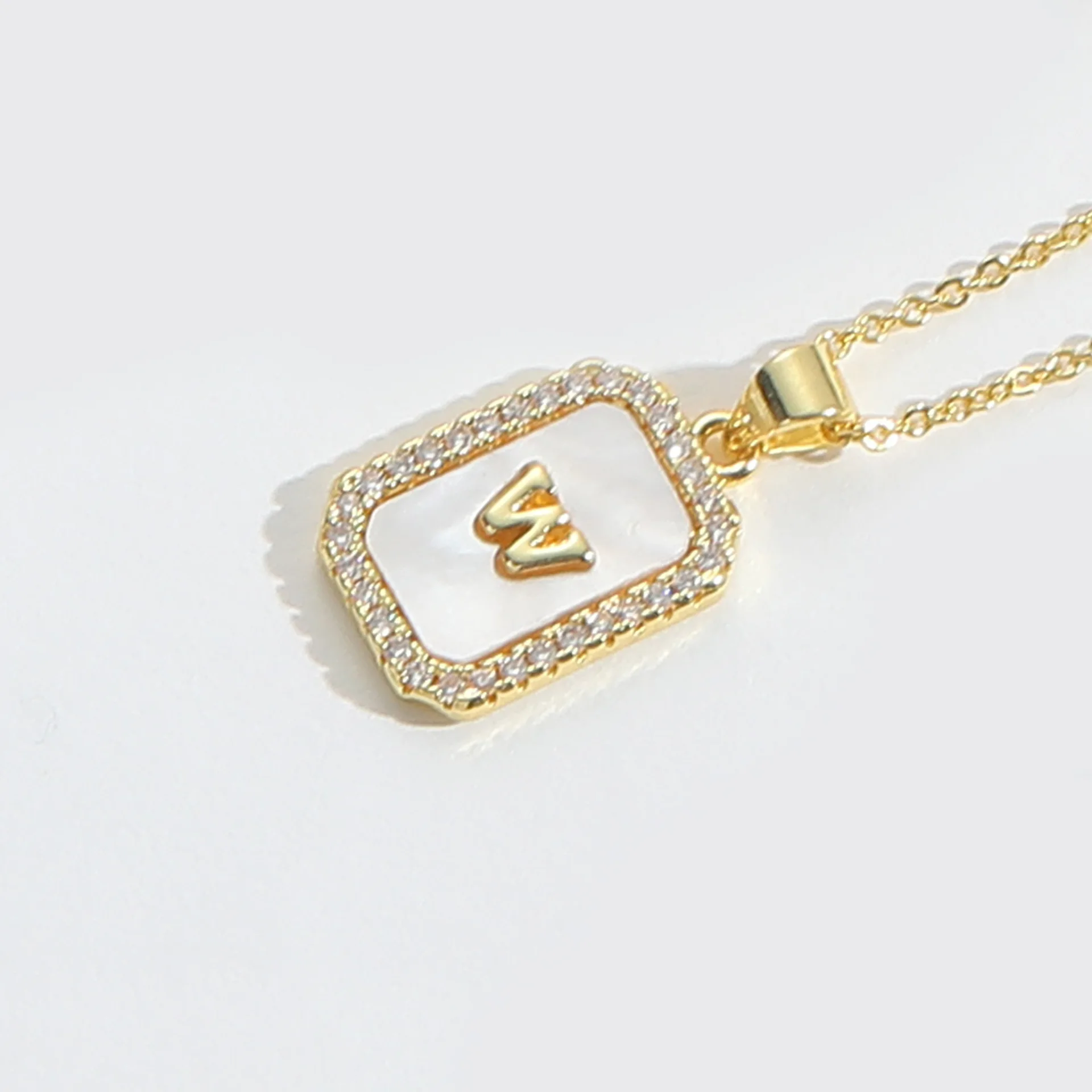 26 Initial Square Shell Pendant Necklace with Fashionable Zircon Copper Box Chain for Women's Fashionable Gifts