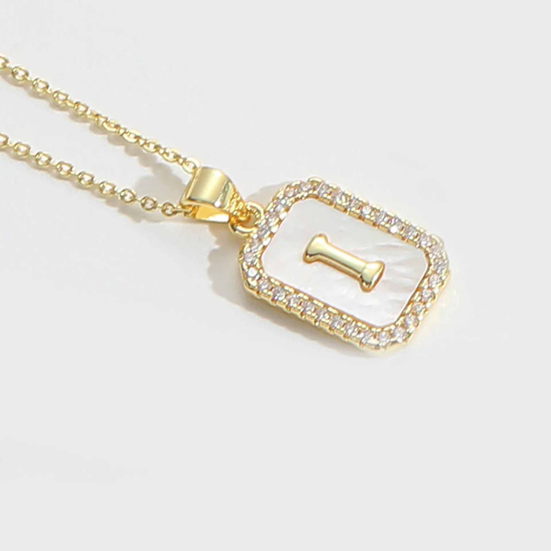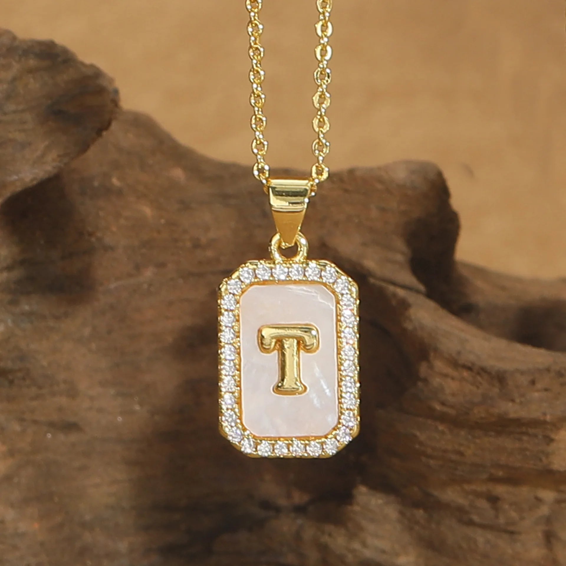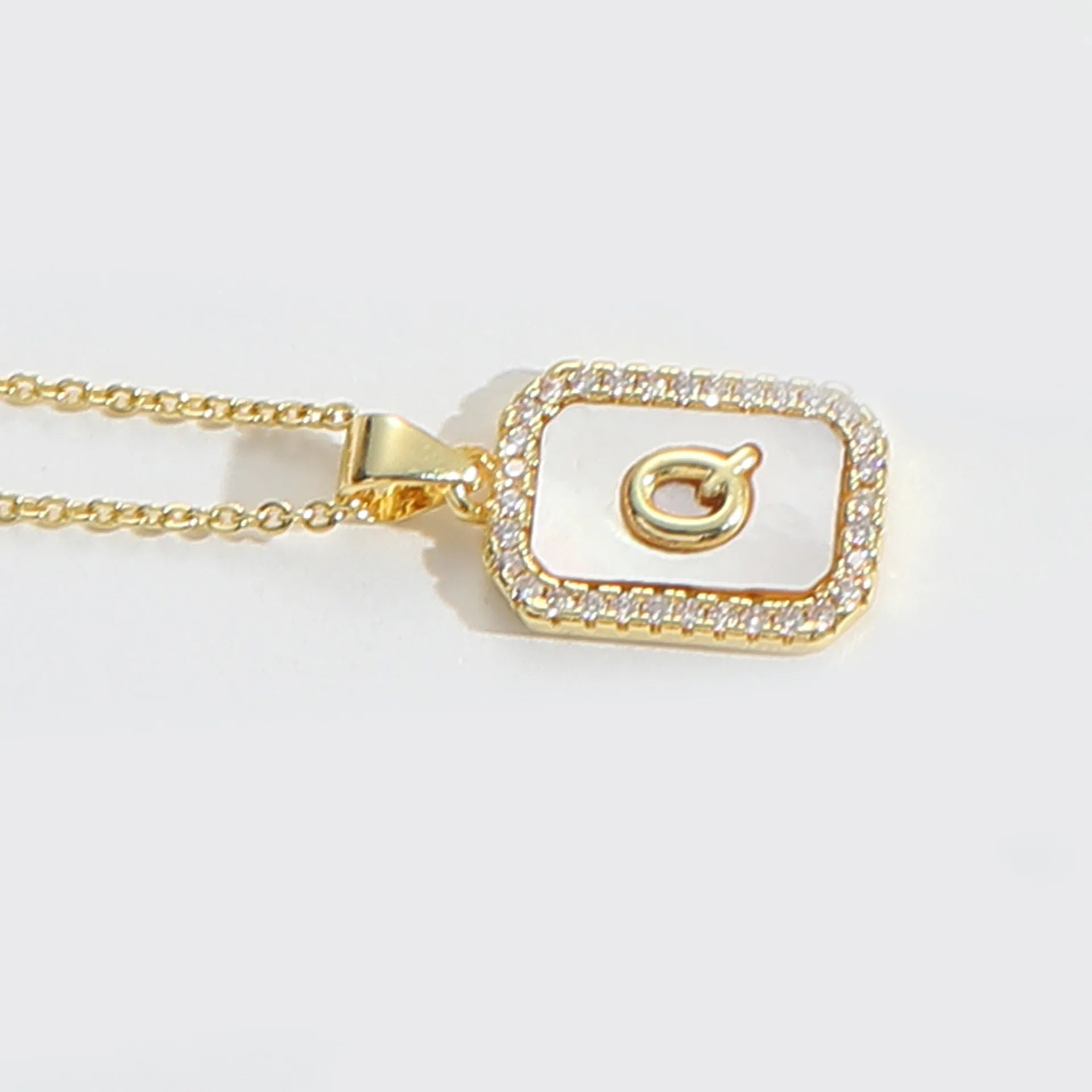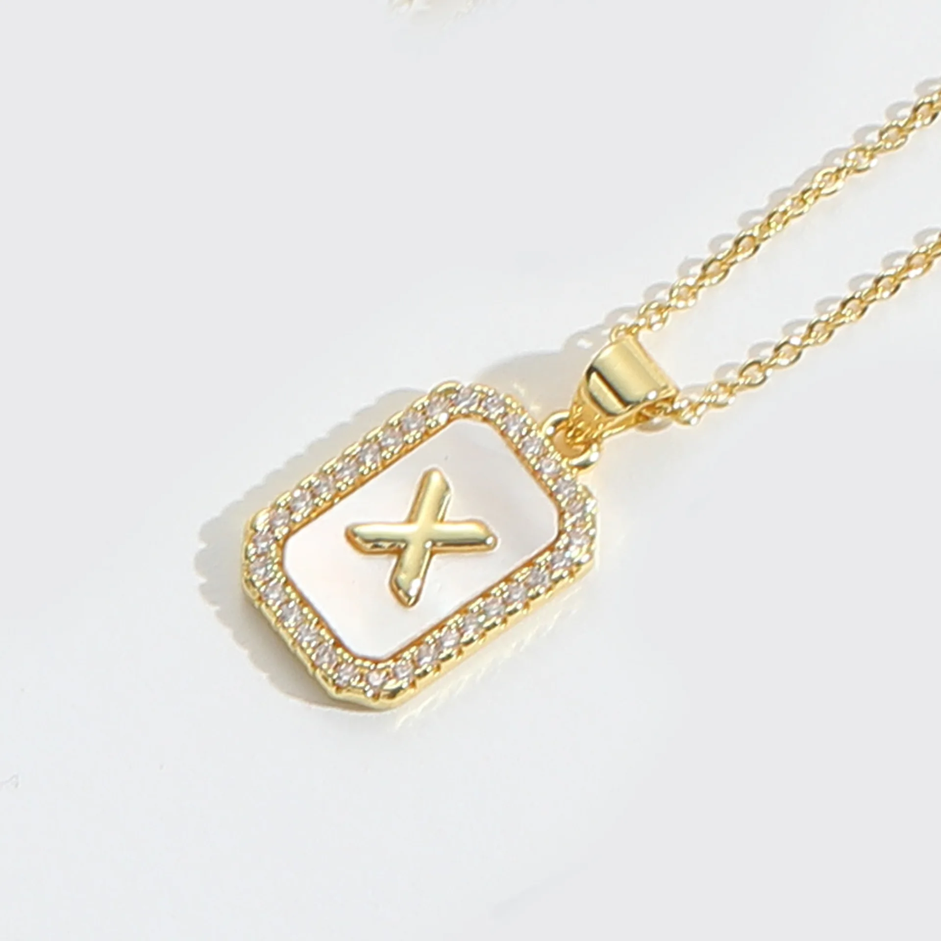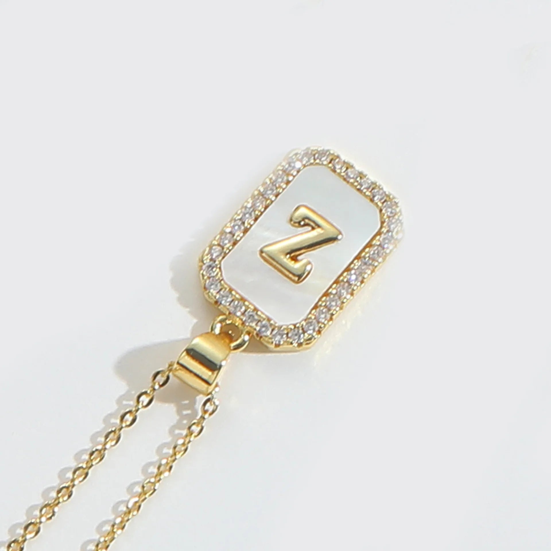 26 Initial Square Shell Pendant Necklace with Fashionable Zircon Copper Box Chain for Women's Fashionable Gifts