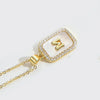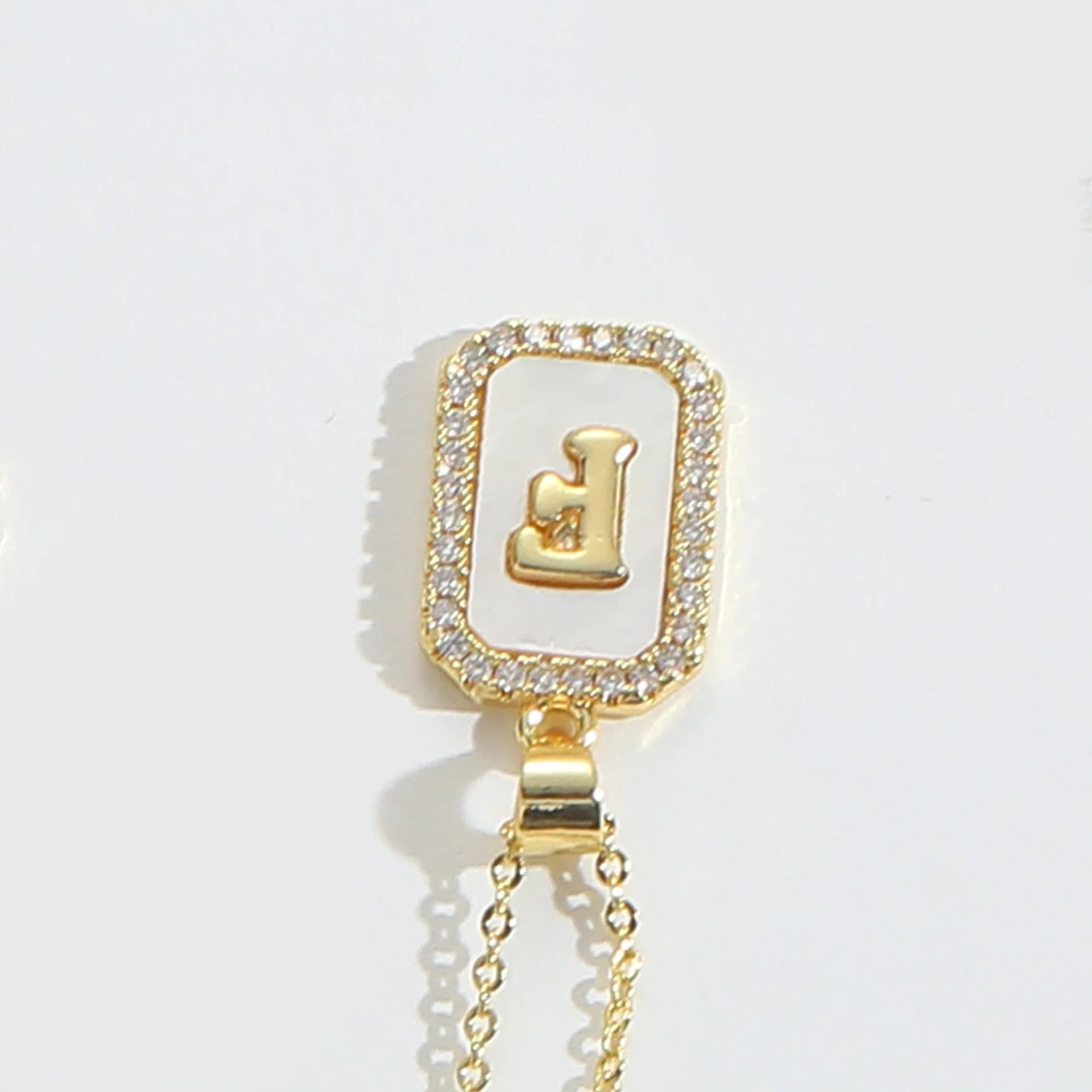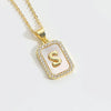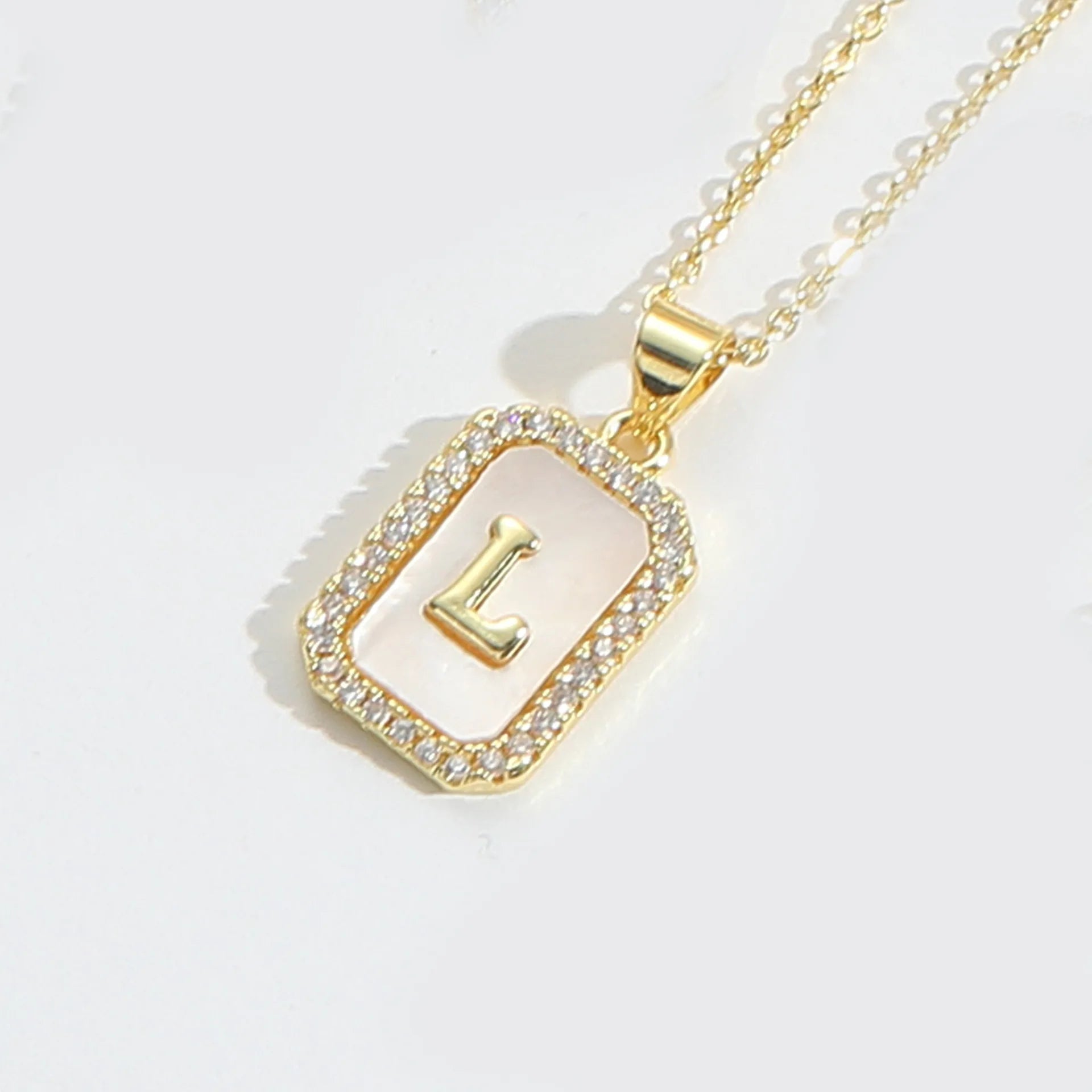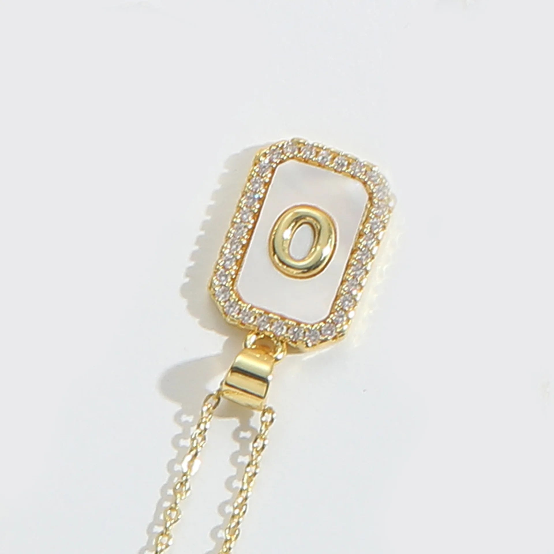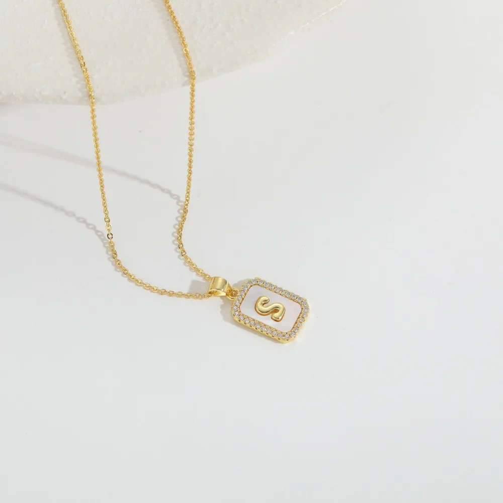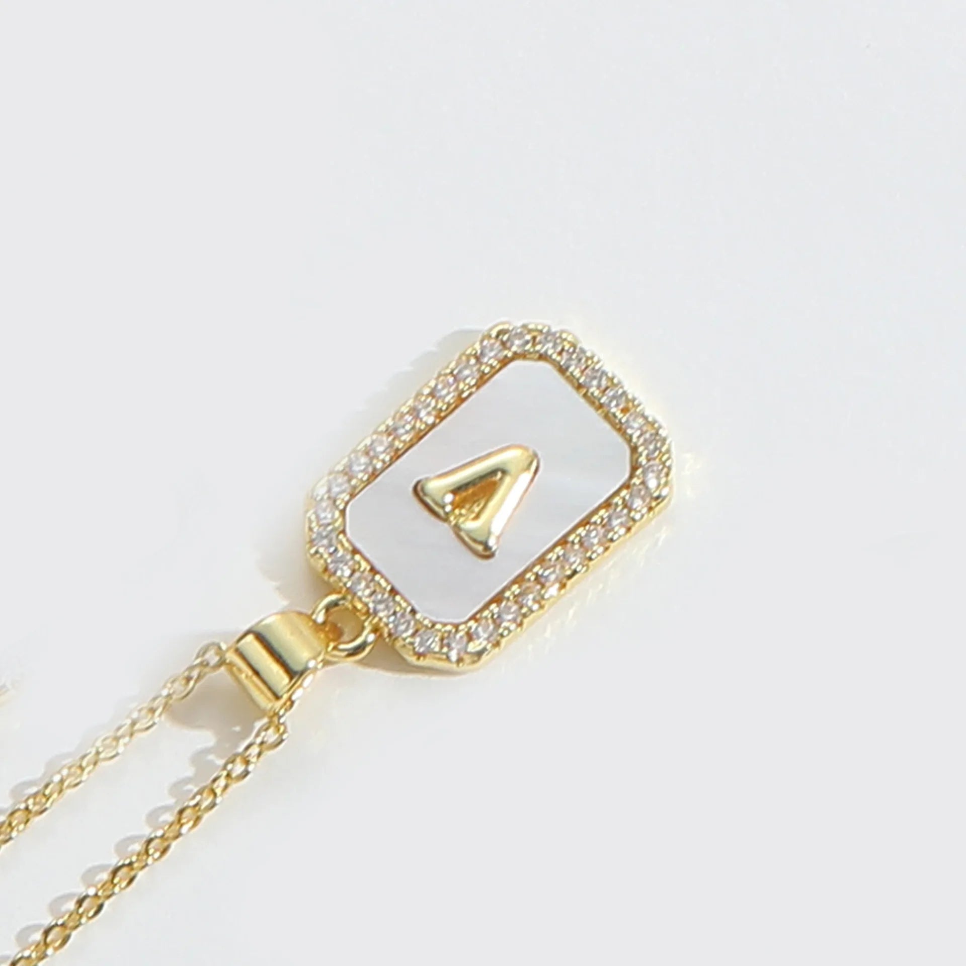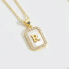 26 Initial Square Shell Pendant Necklace with Fashionable Zircon Copper Box Chain for Women's Fashionable Gifts