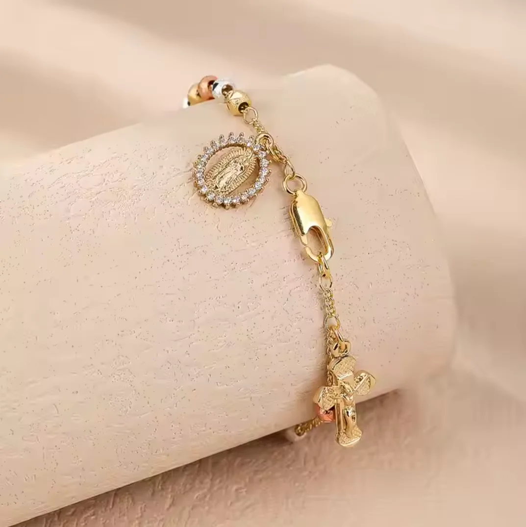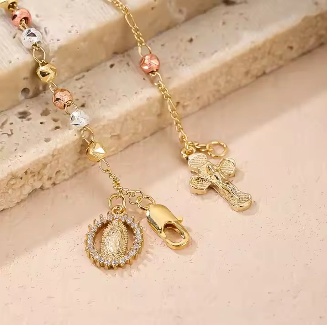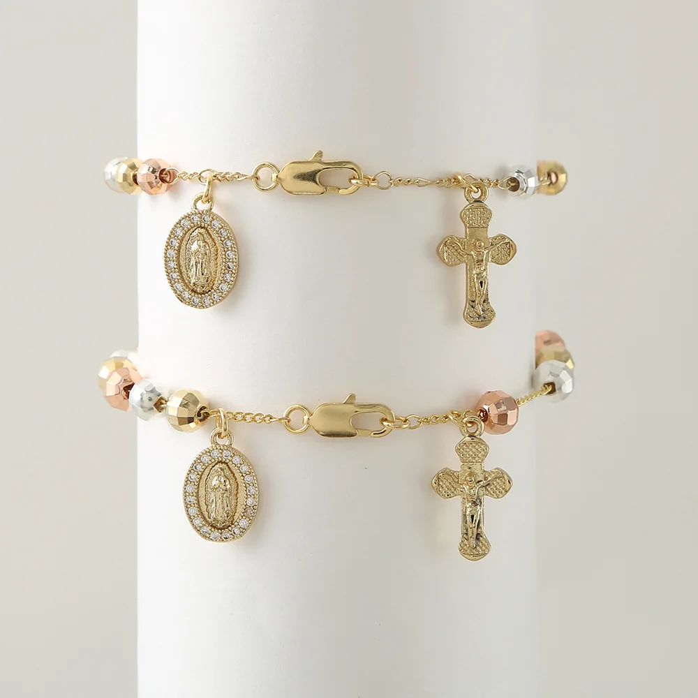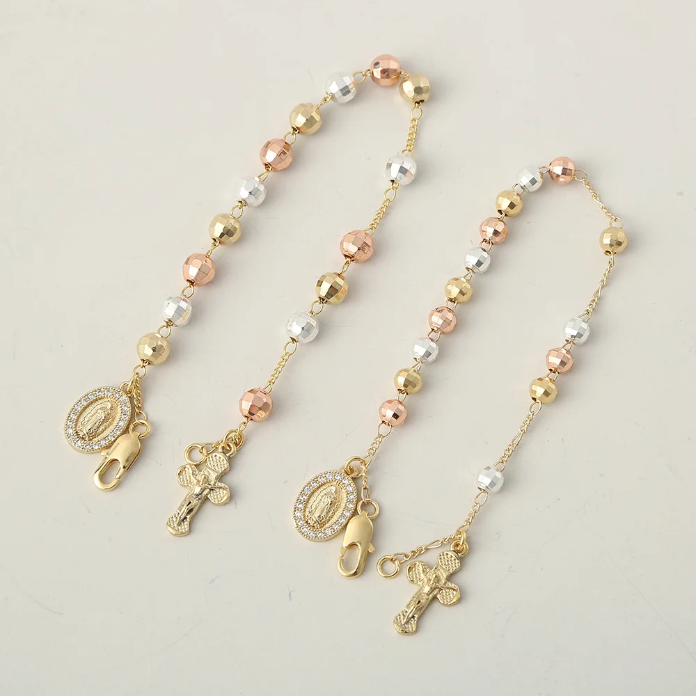 Handmade Gold Religious Beaded Prayer Bead Fashionable Catholic Saints Medal & Crucifix Stainless Steel Jewelry Zircon Stone
