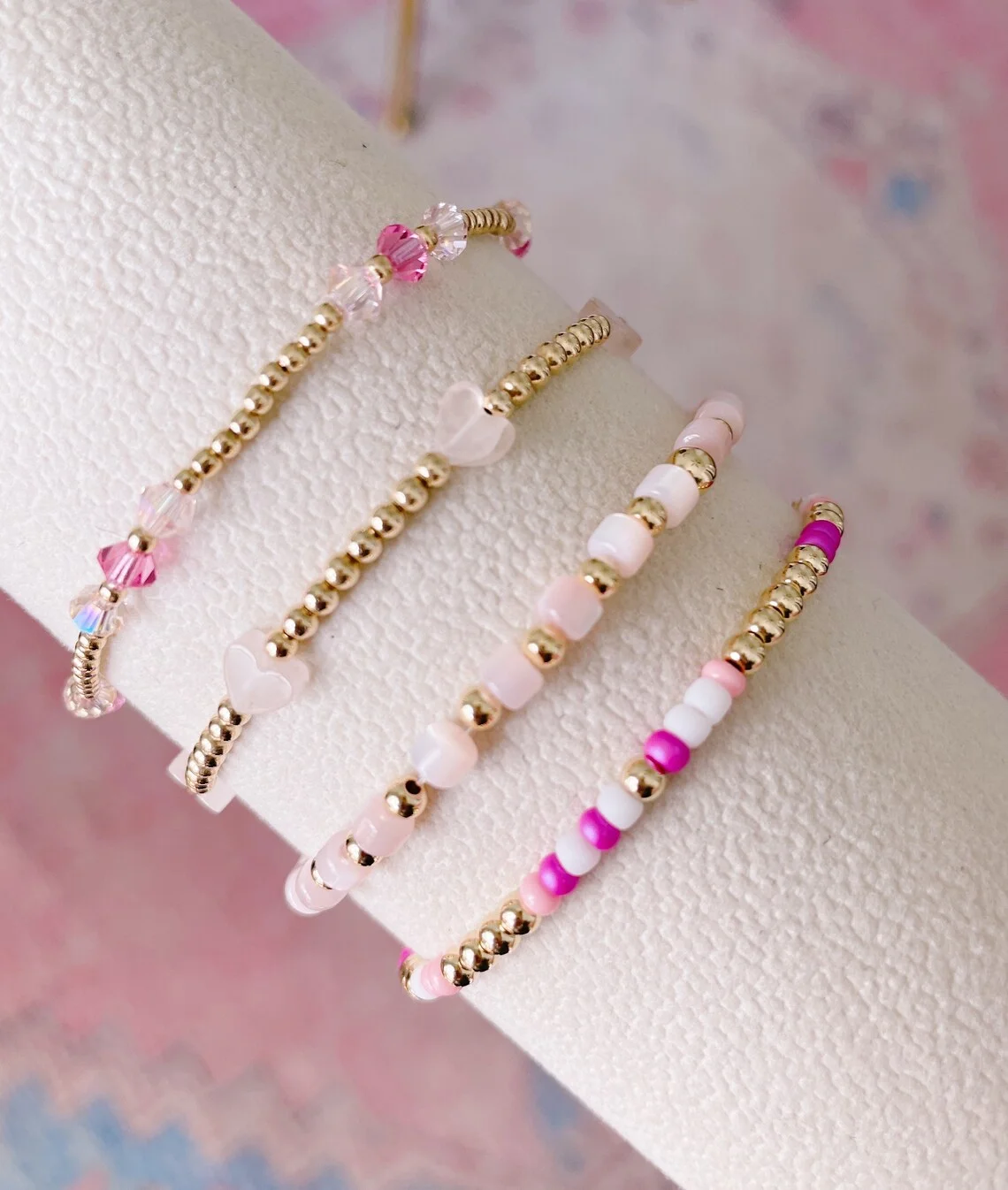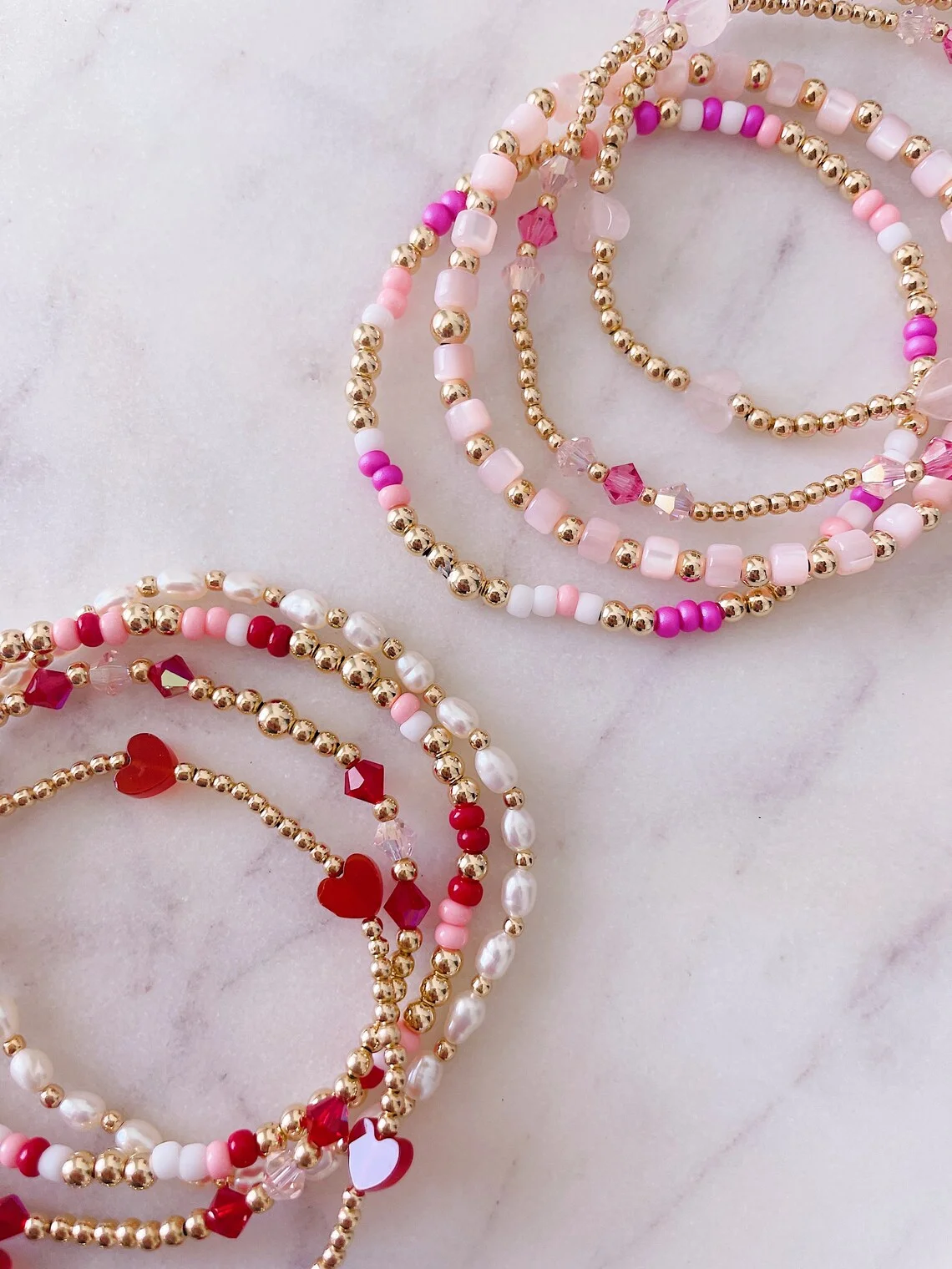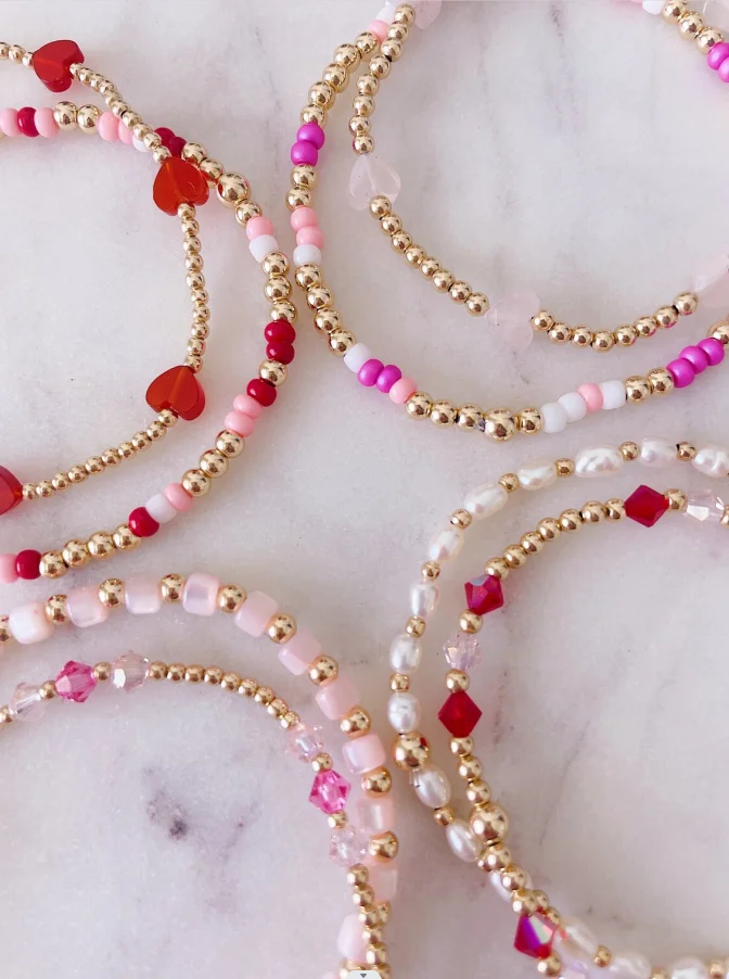 Valentines Day Heart Bracelets for Her Non-Tarnish Gold Plated Stainless Steel Beads Elastic String Bracelets for Women