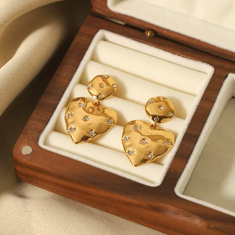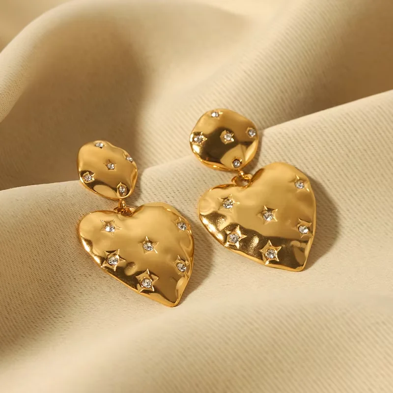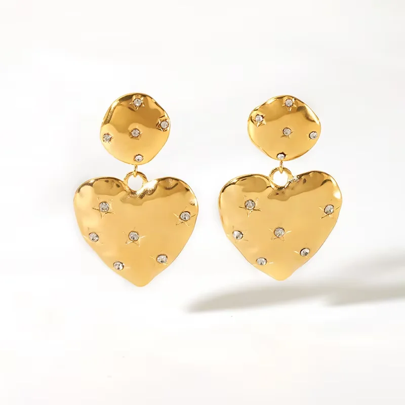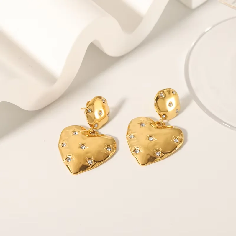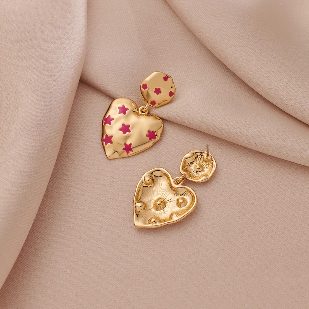 Valentine's Day Piercing Jewelry Gold Pink Heart Dangle Earrings for Women Fashion Statement Jewelry Gift