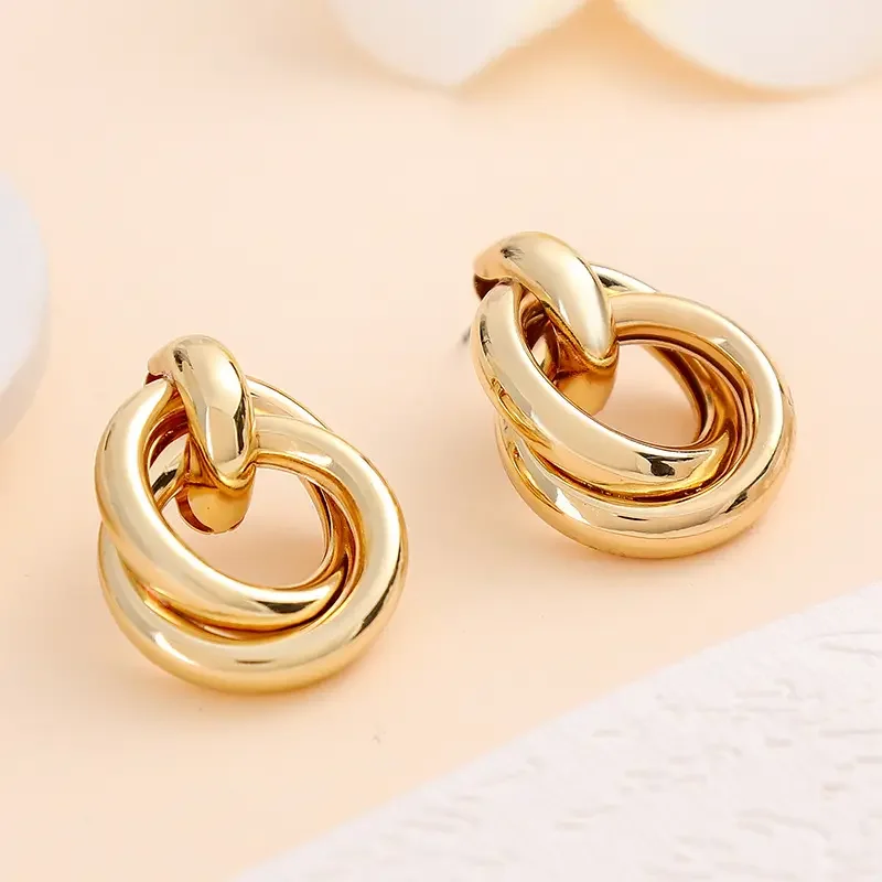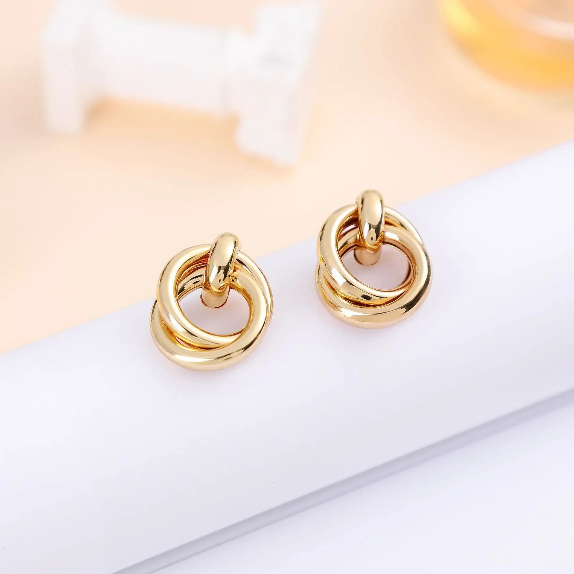 2024 New Fashion Women Retro Circle Gold Earring Geometric Style Stainless Steel Embellished Metal Earrings for Womens