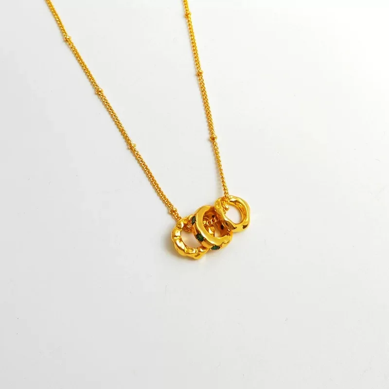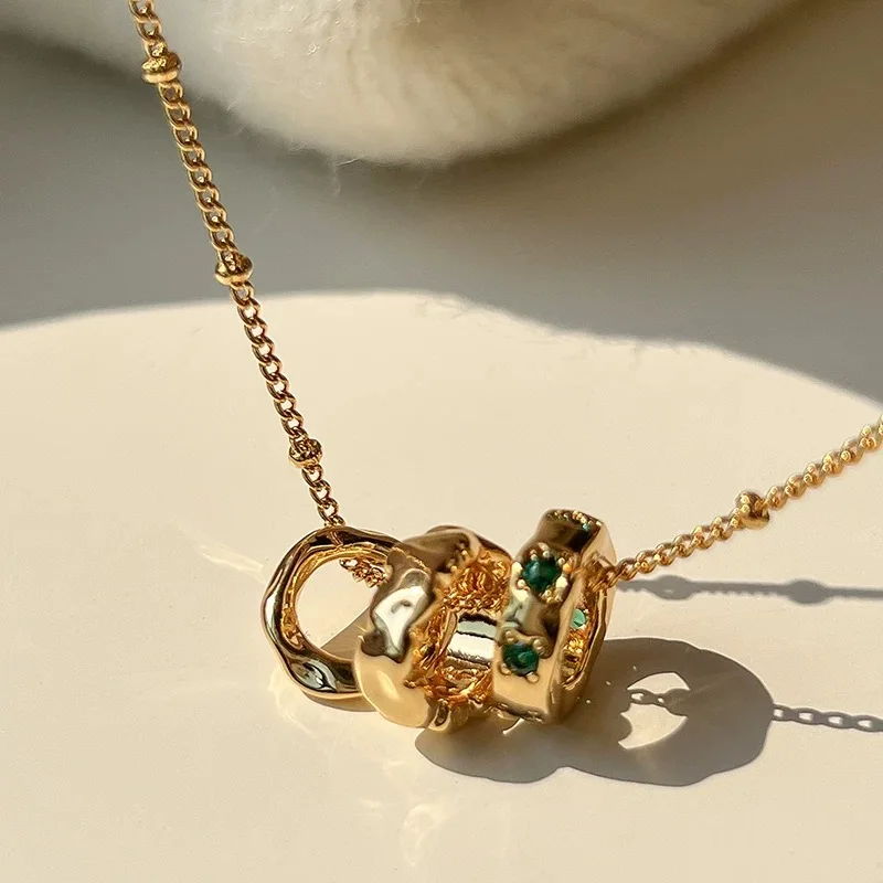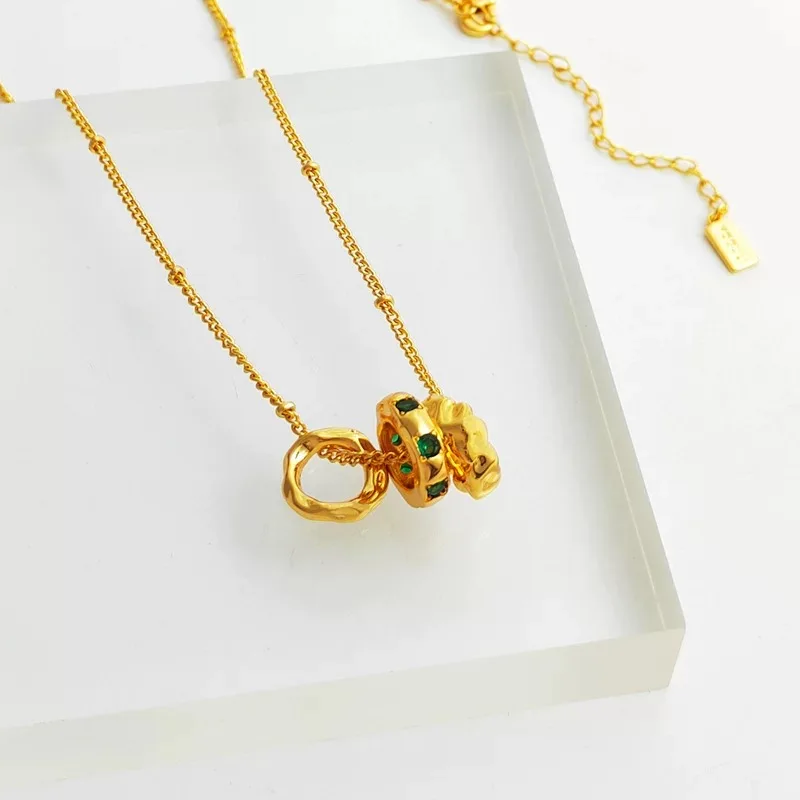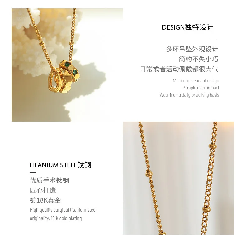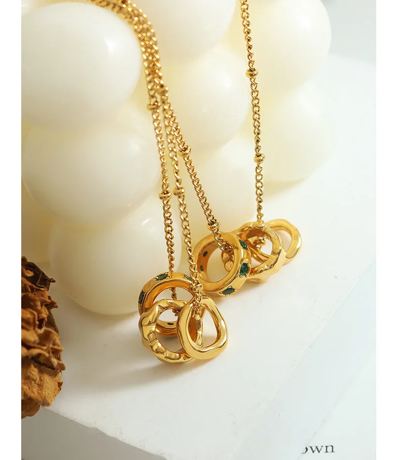 Titanium Steel Inlaid Zircon Pendant Necklace Green Detachable Zircon Ring Charm Necklace Hot Selling Three Ring Buckle Necklace