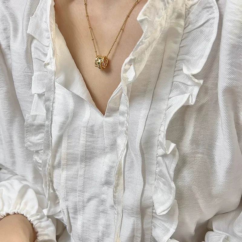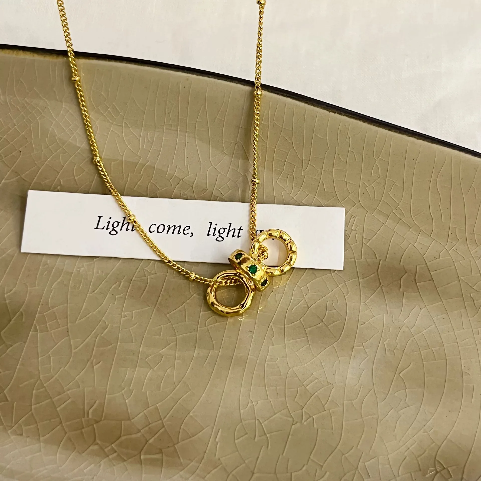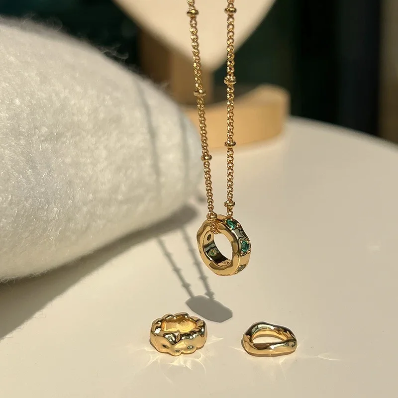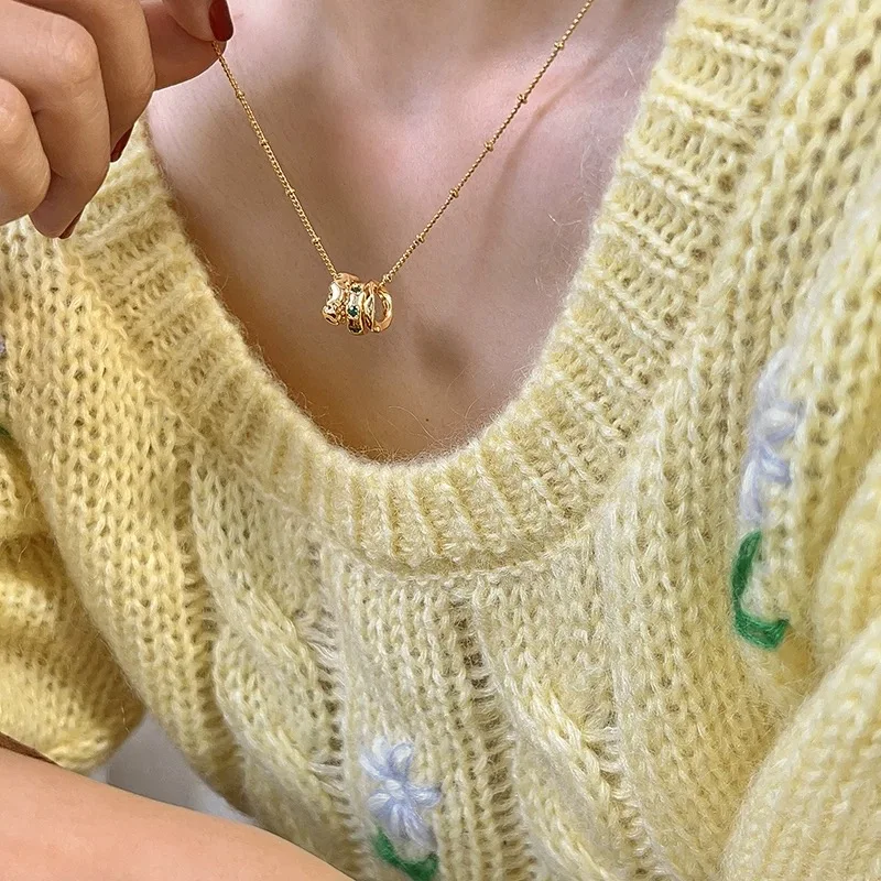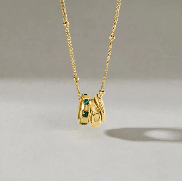 Titanium Steel Inlaid Zircon Pendant Necklace Green Detachable Zircon Ring Charm Necklace Hot Selling Three Ring Buckle Necklace