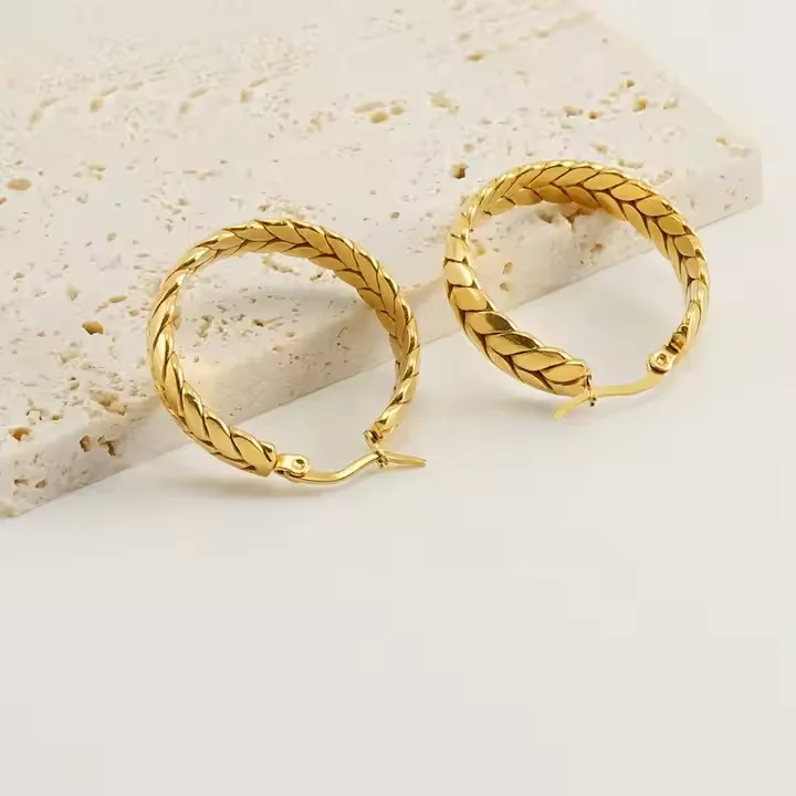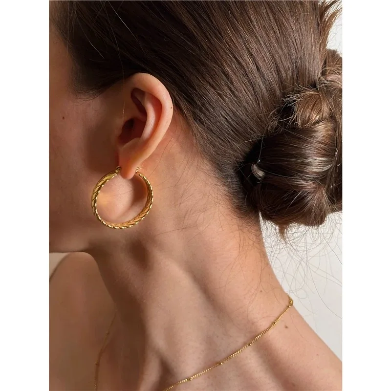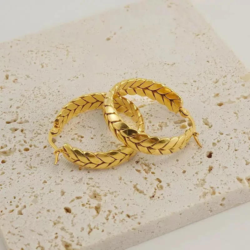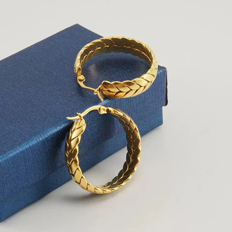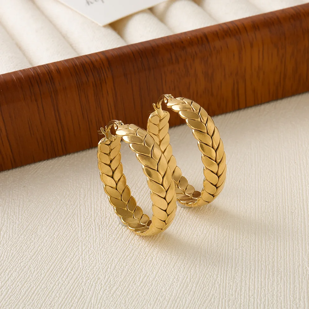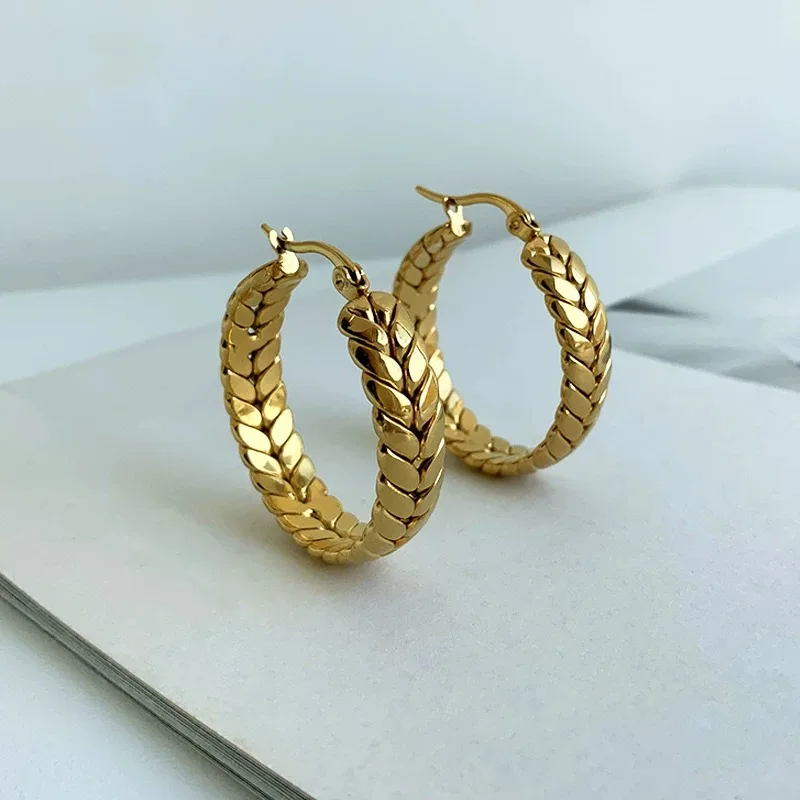 New Design Wheat Geometric Big Hoop Stainless Steel Fashion Earrings Large Fine Hoop Earrings Jewelry for Women