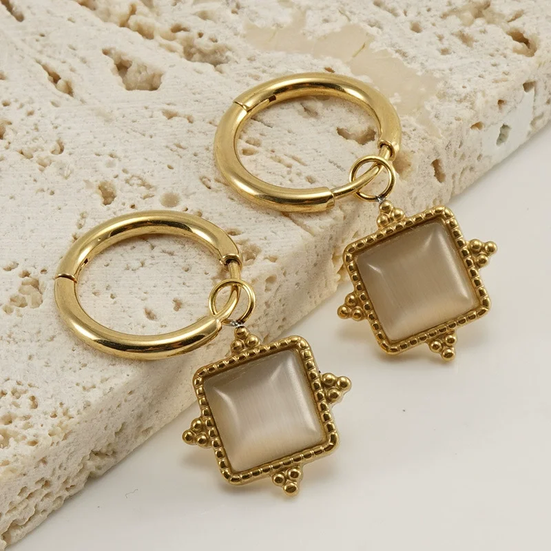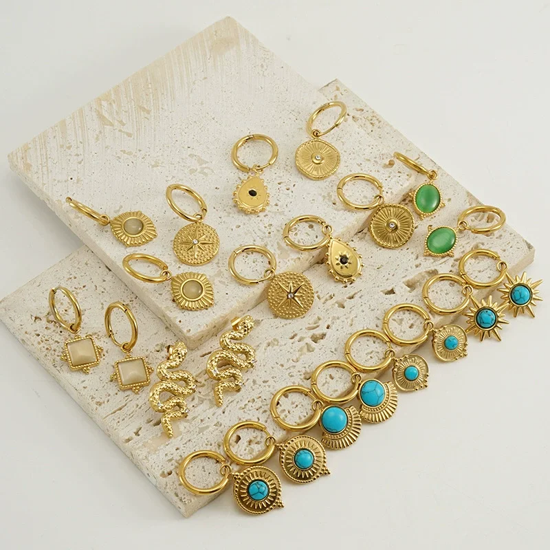 Trendy 18K Gold Plated Stainless Steel Snake and Sun Dangle Earrings With Turquoise for Everyday Sophistication