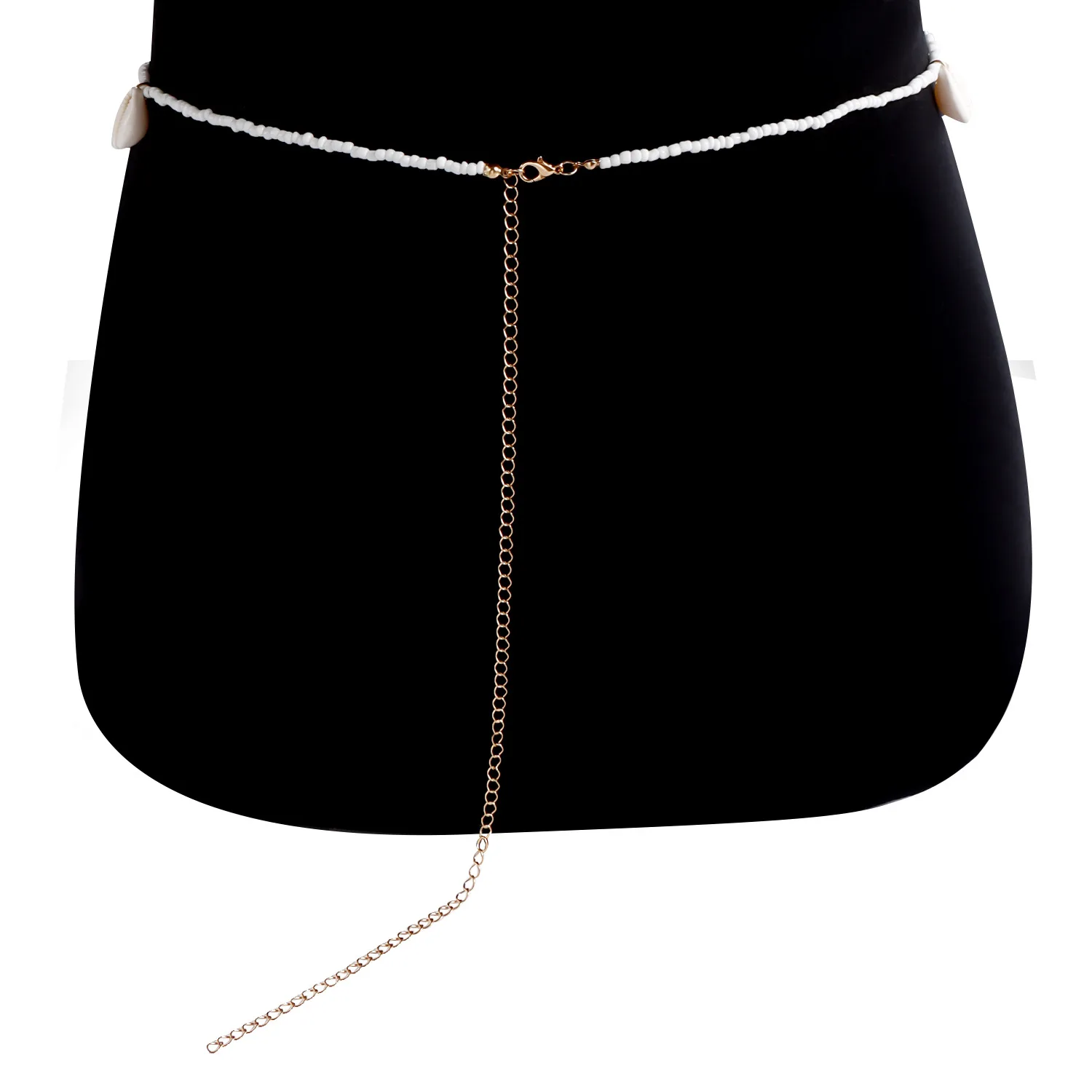 Bohemian White Beaded Waist Chain | Handmade Seashell Elastic Hip Jewelry for Beach Vacation & Women's Fashion Accessories