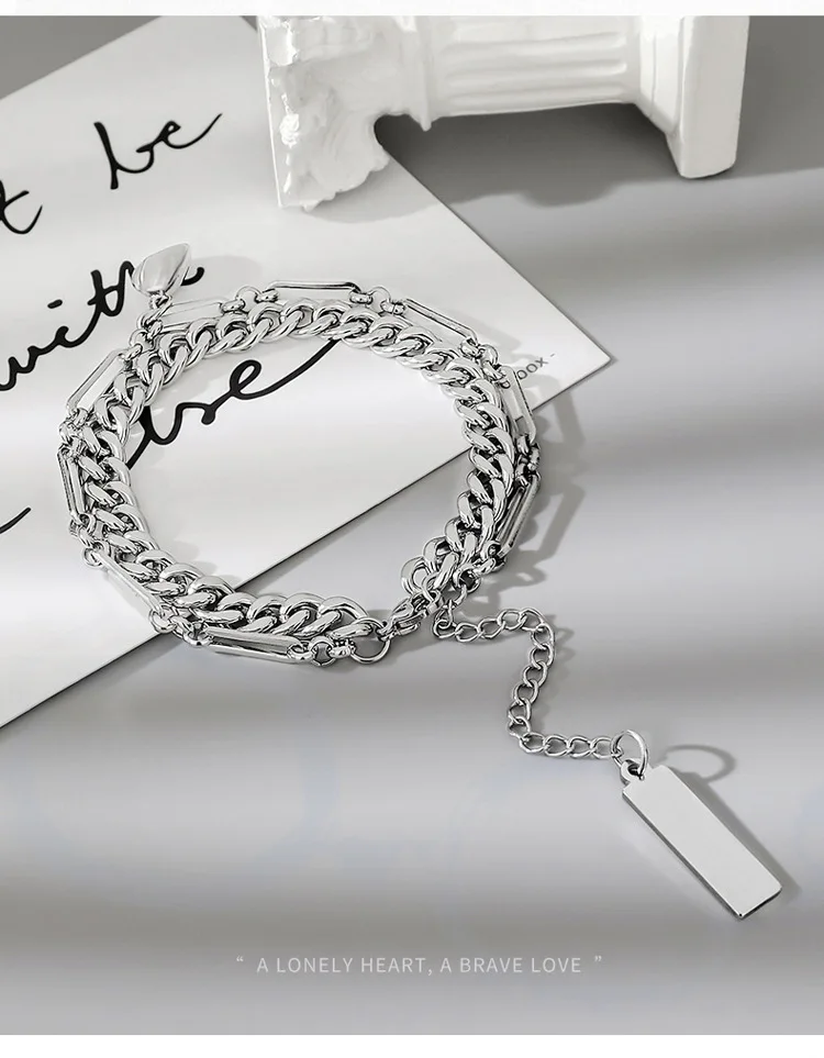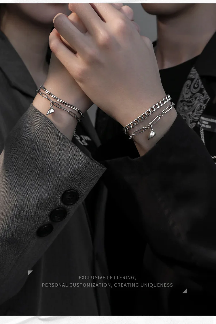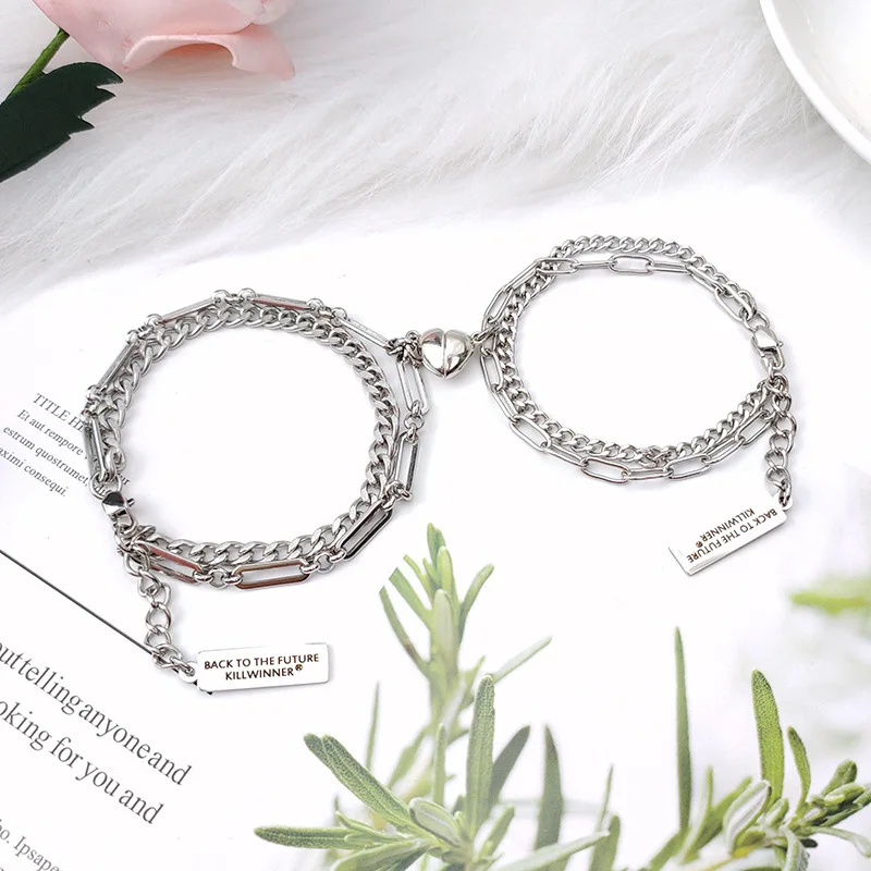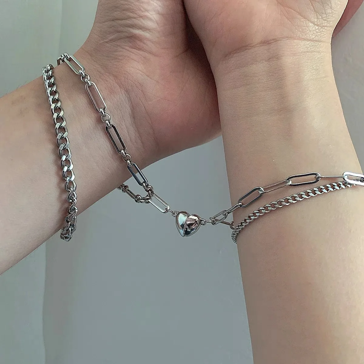 Fashion Adjustable Half Heart Magnetic Bracelets Silver Love Couple Bracelet Set Matching Cuban Link Bracelets for Couples