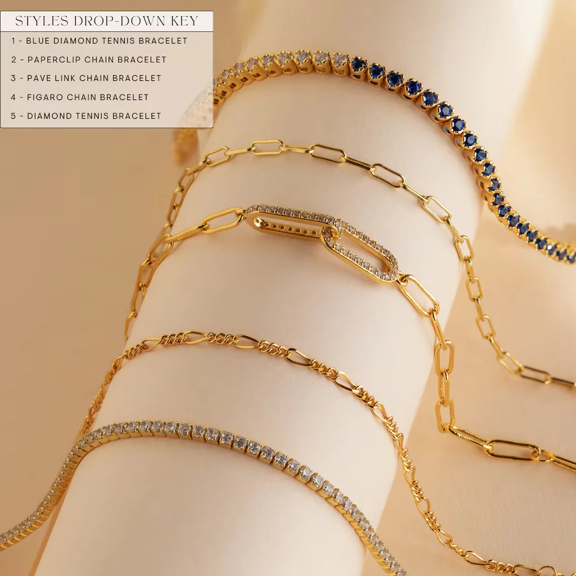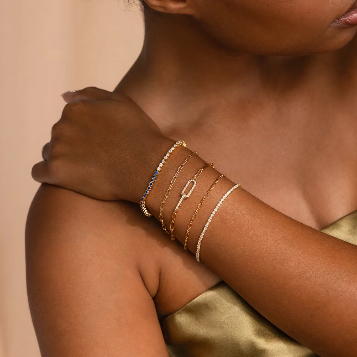 Dainty Diamond Link Chain Bracelets Minimalist Paperclip Chain Bracelet Classic Blue Diamond Tennis Bracelet for Ladies