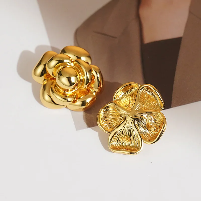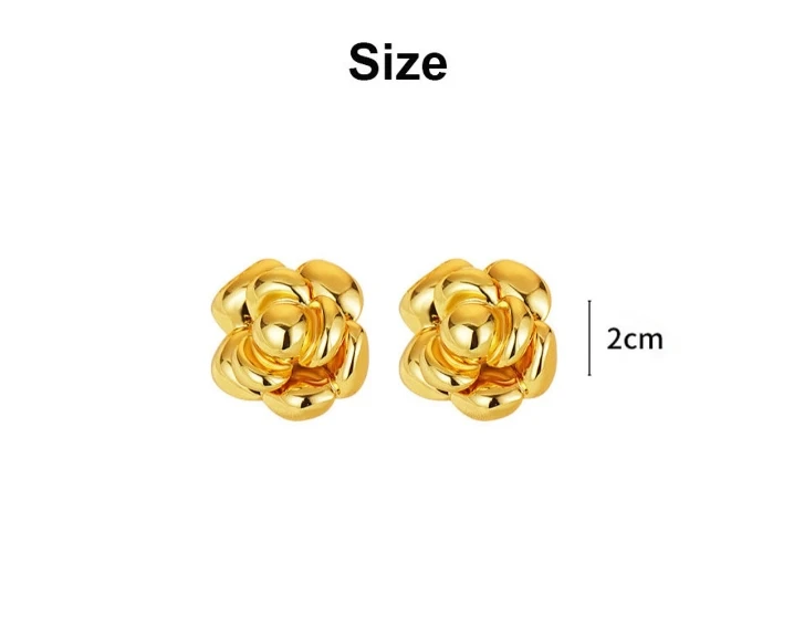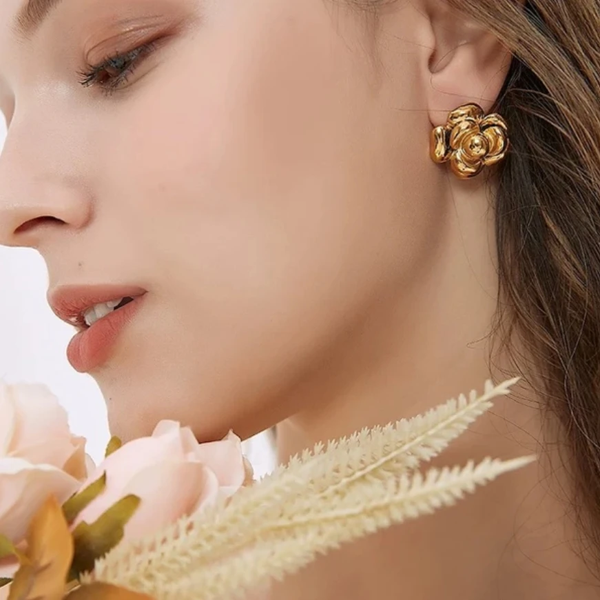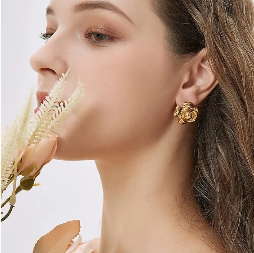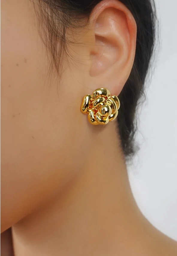 Glossy Rose Flower Gold Plating Stud Earring Wholesale Sparkling Fancy Camille Flower Earrings Hypoallergenic Earring for Women