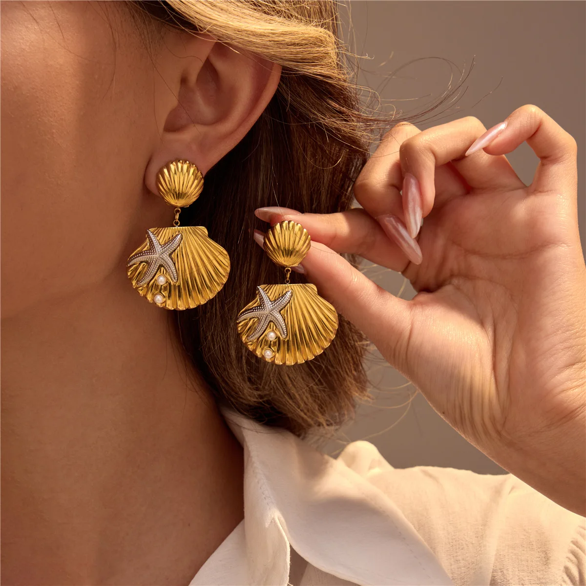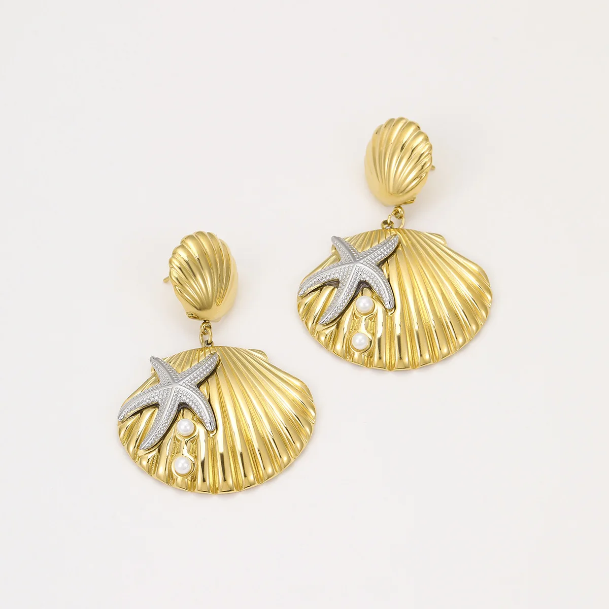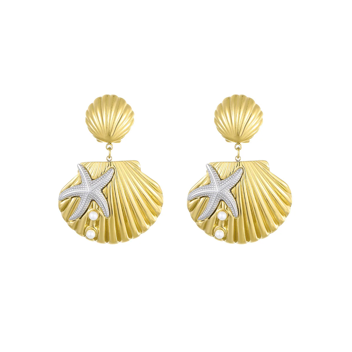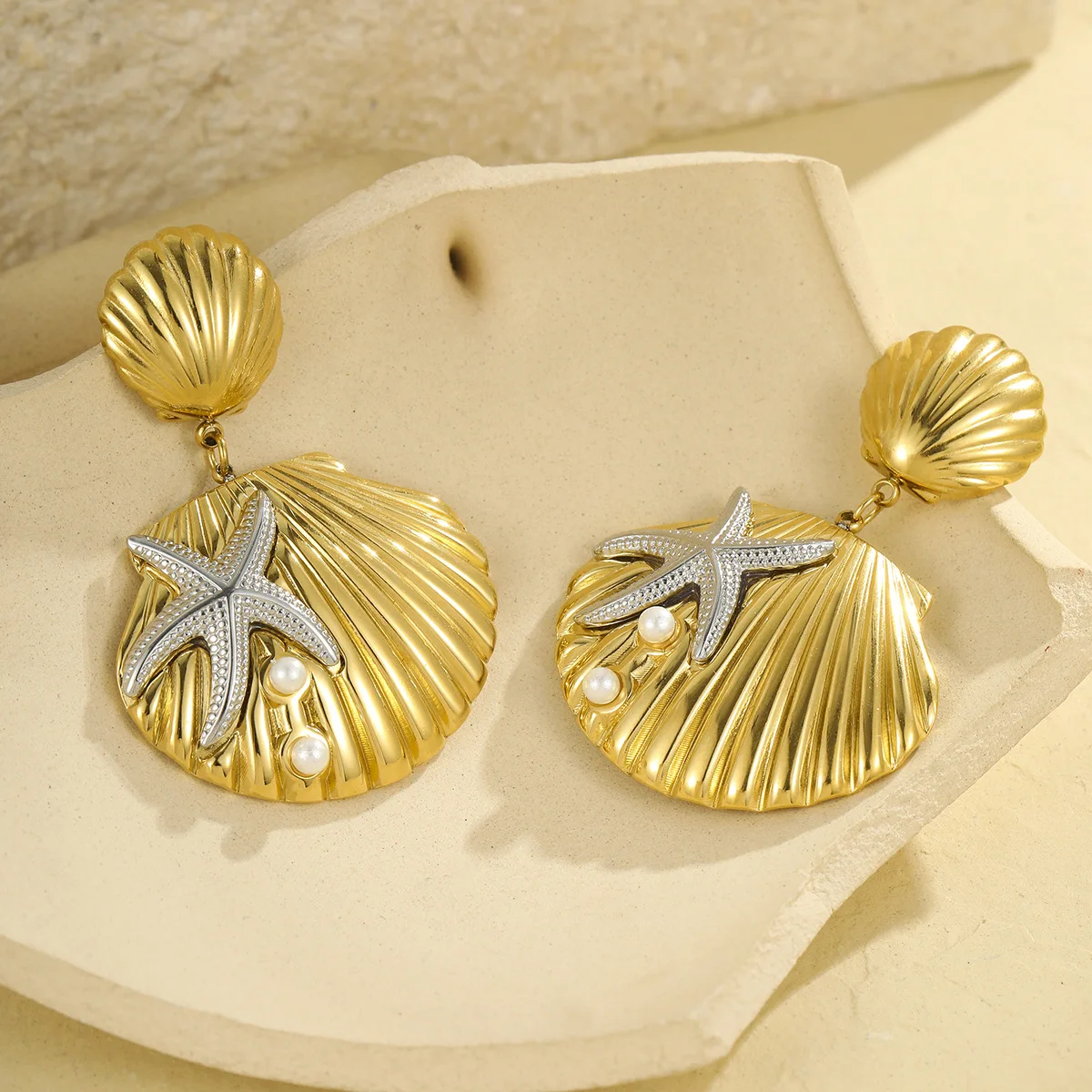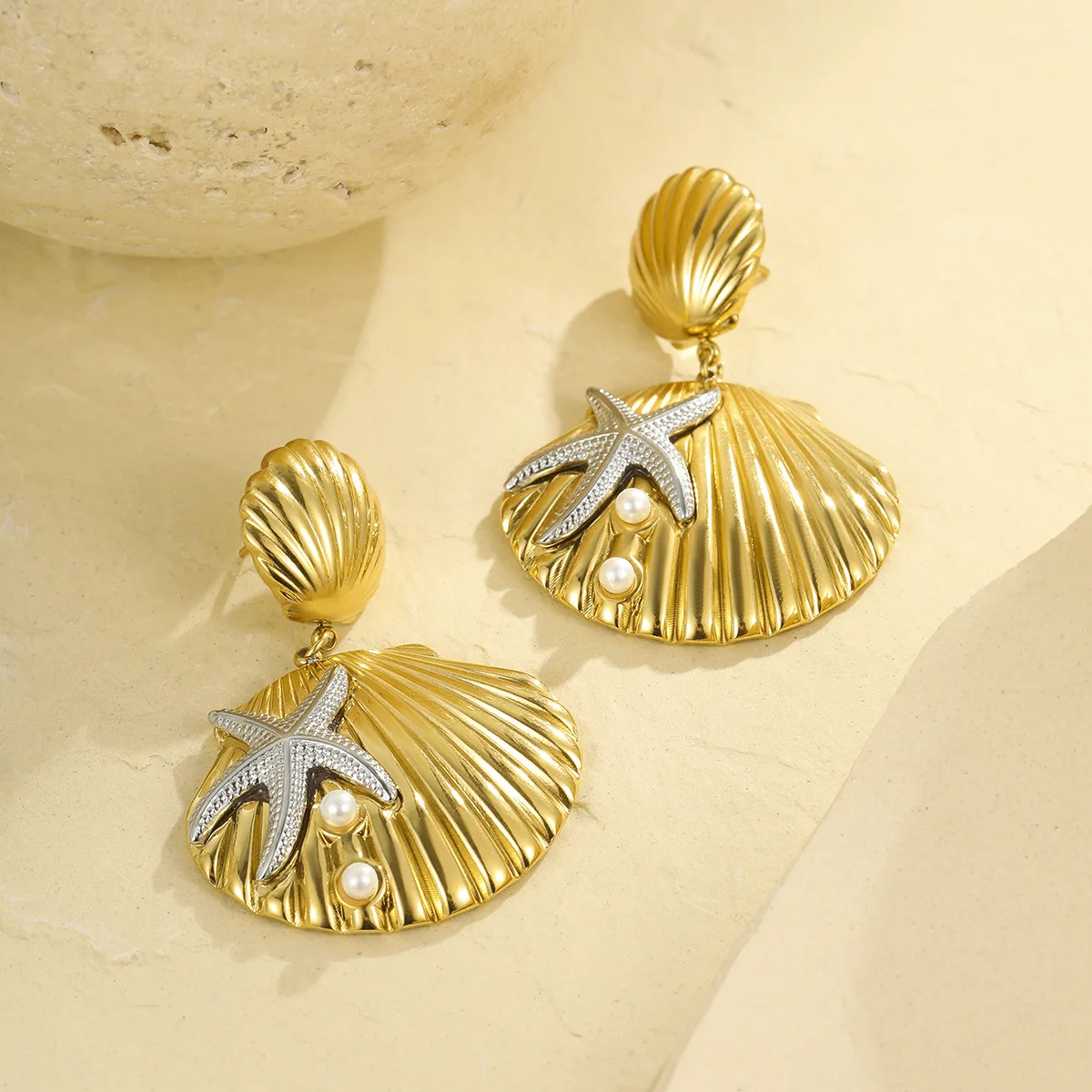 Wholesale Fashion Earrings 18k Gold Plated Stainless Steel Shell Starfish Pearl Earrings Women's Ocean Jewelry