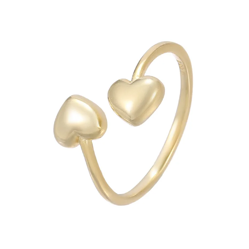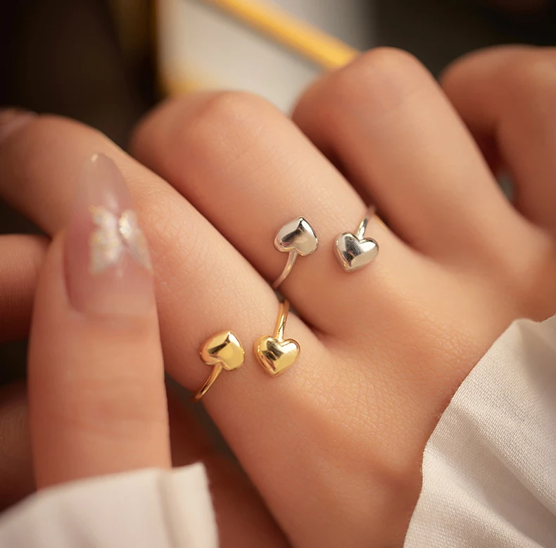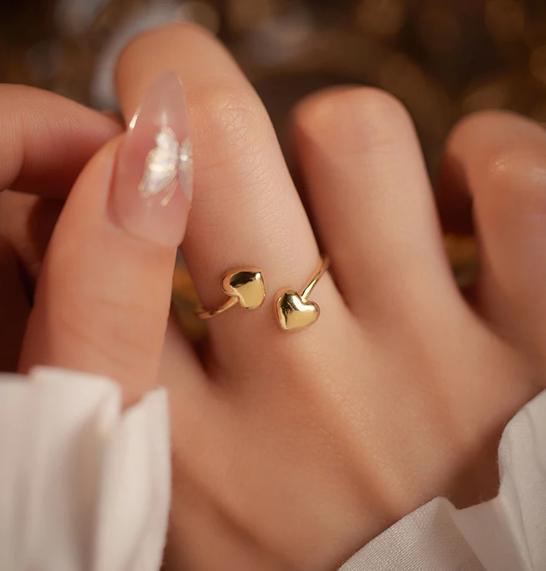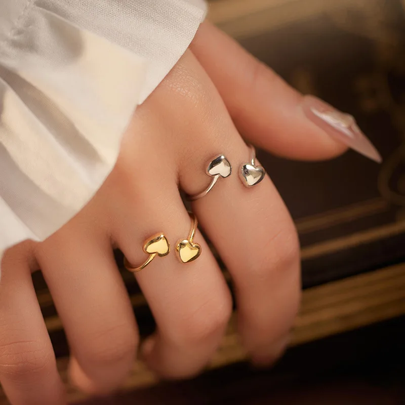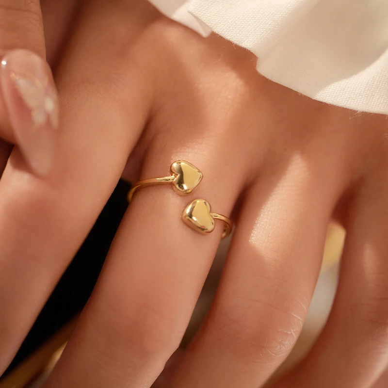 Trendy Double Heart Stacking Bypass Ring Classic Stainless Steel Double Heart Stacking Open Ring for Couple Valentine's Day