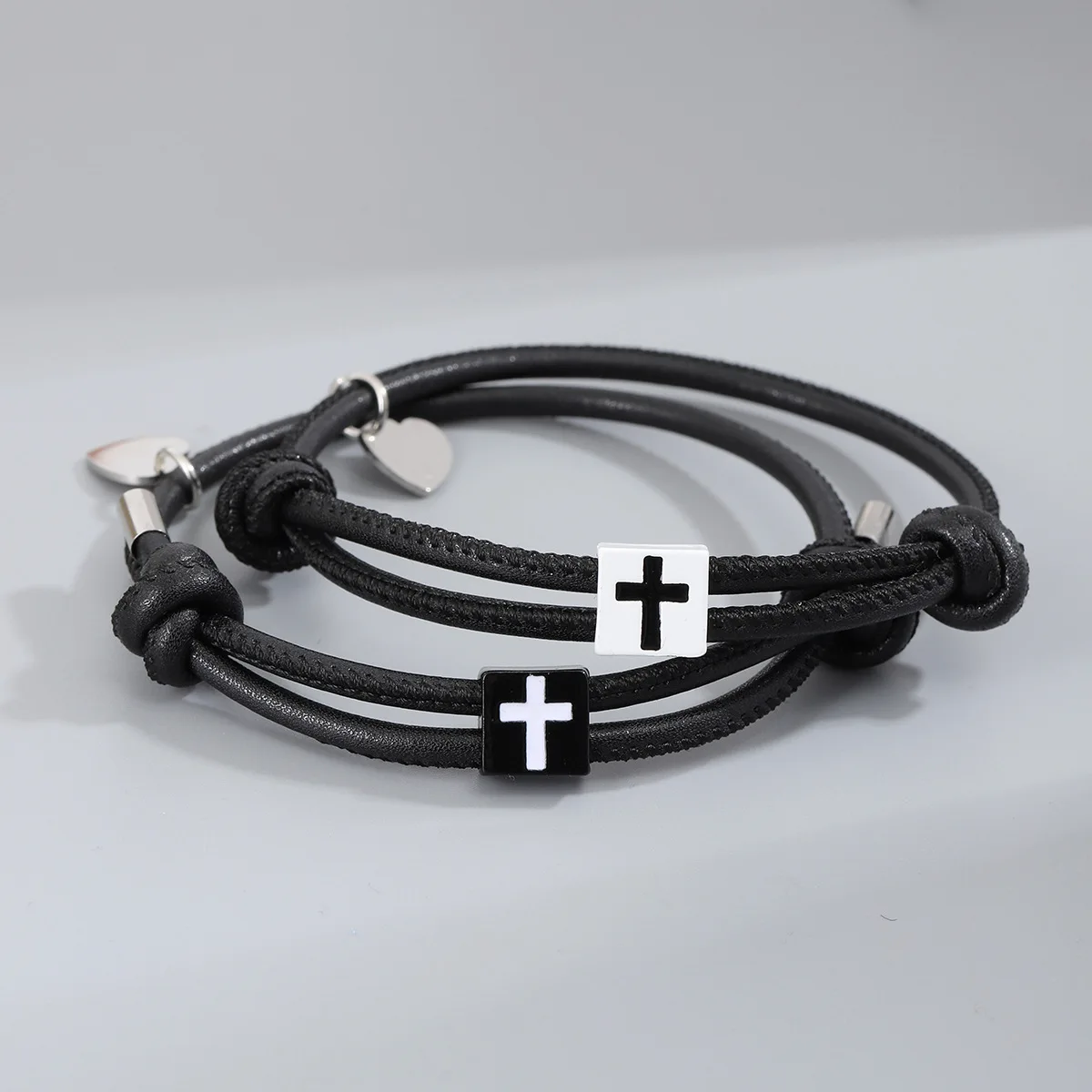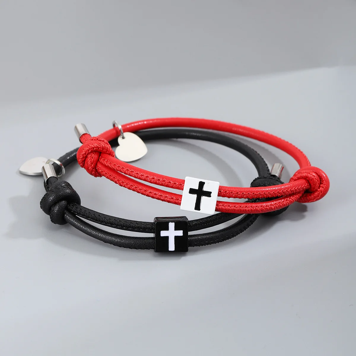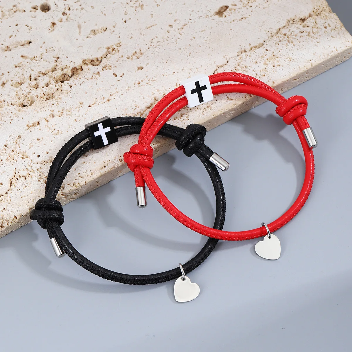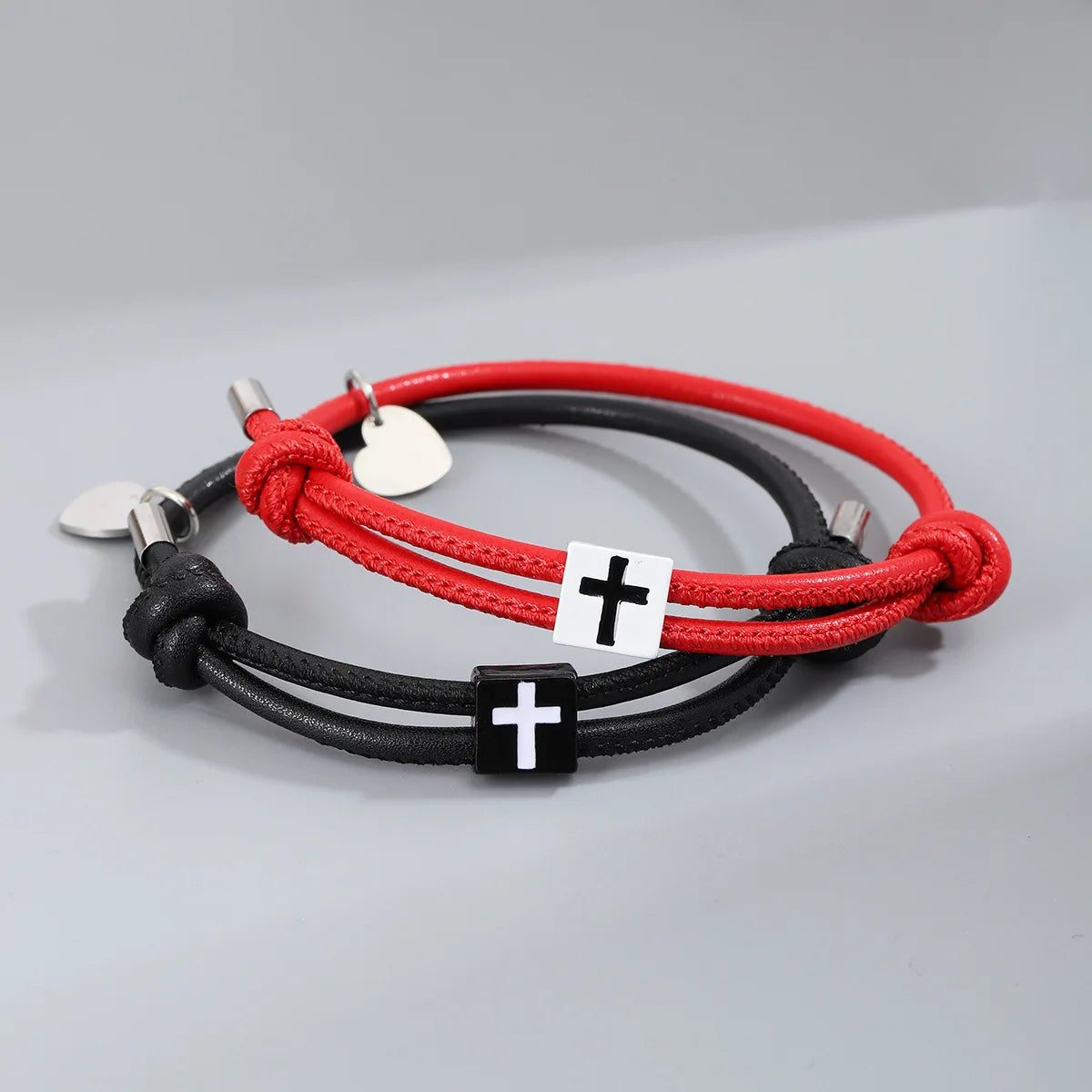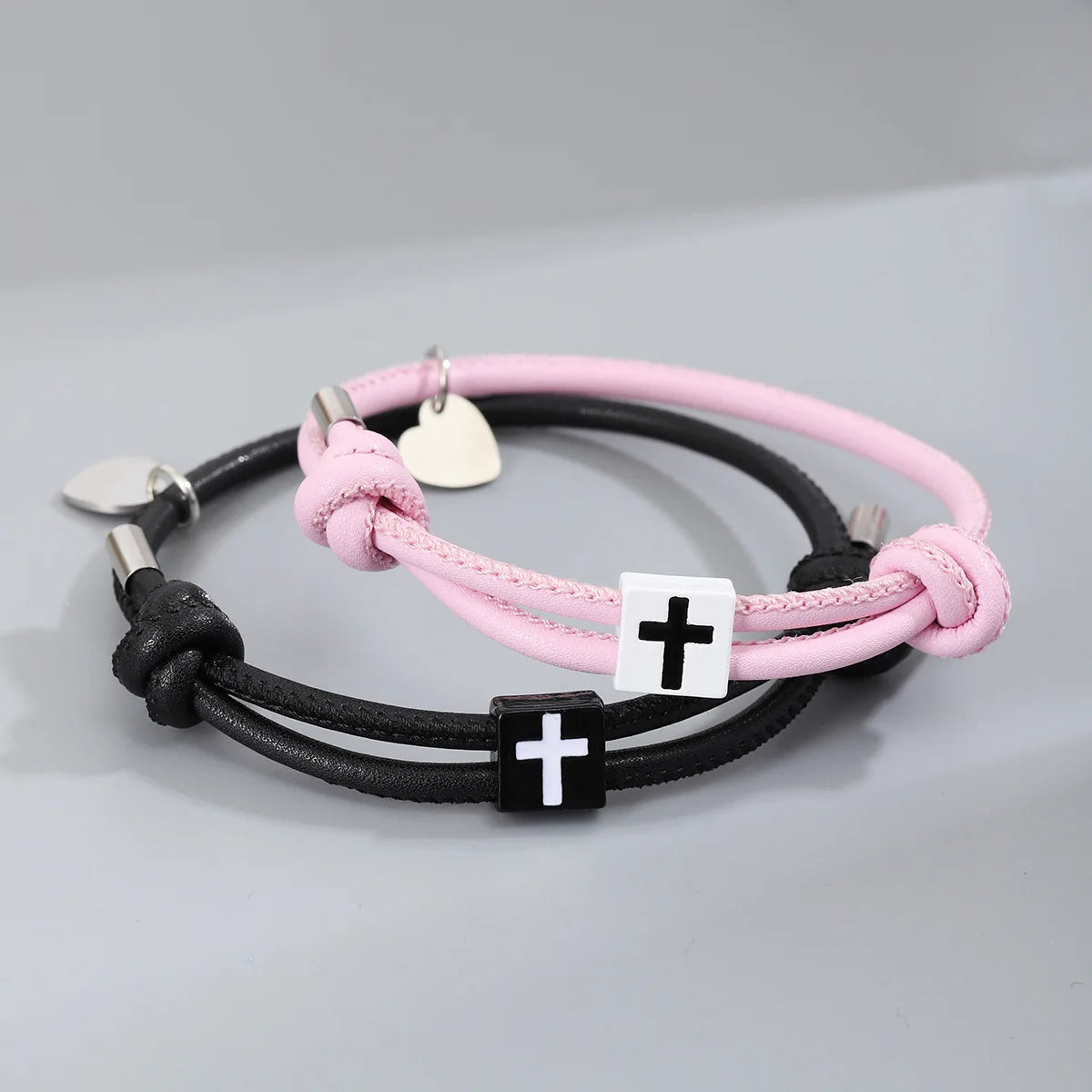 Fashion Couples Bracelet Handmade Colorful Metal-Crossing Bracelet Alloy Cross Adjustable Bracelets for Valentine's Day Gifts