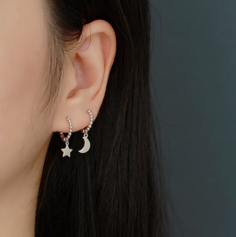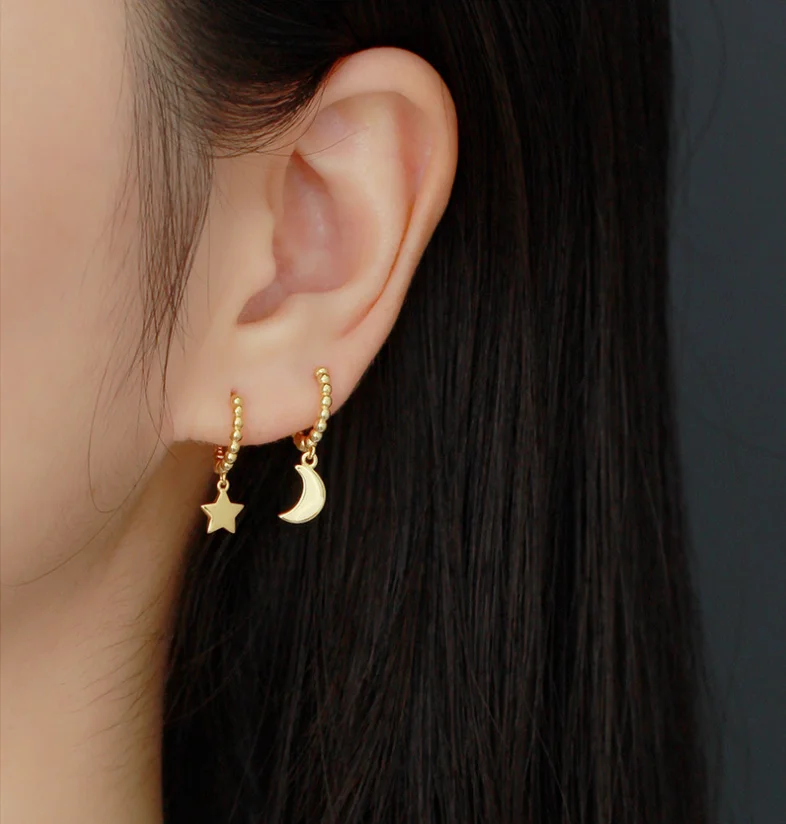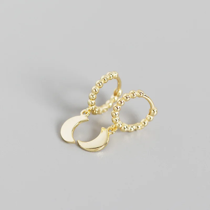 New Arrival Jewelry 2025 Beaded Moon Huggies Earrings Minimalist Hypoallergenic Zodiac Earrings for Women Jewelry