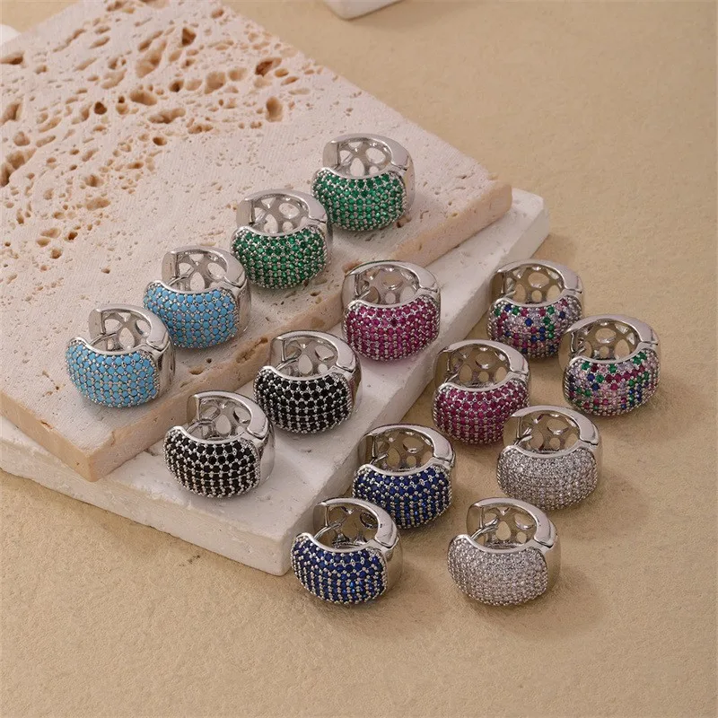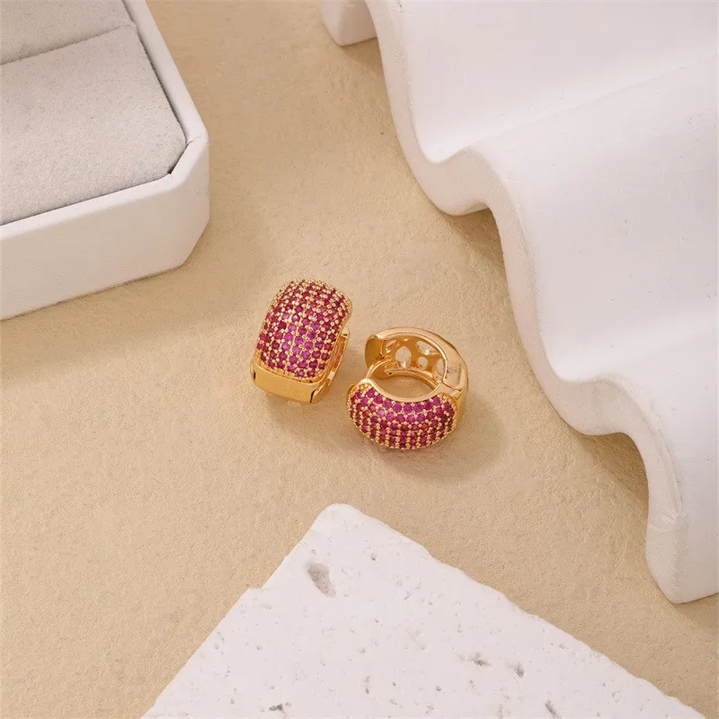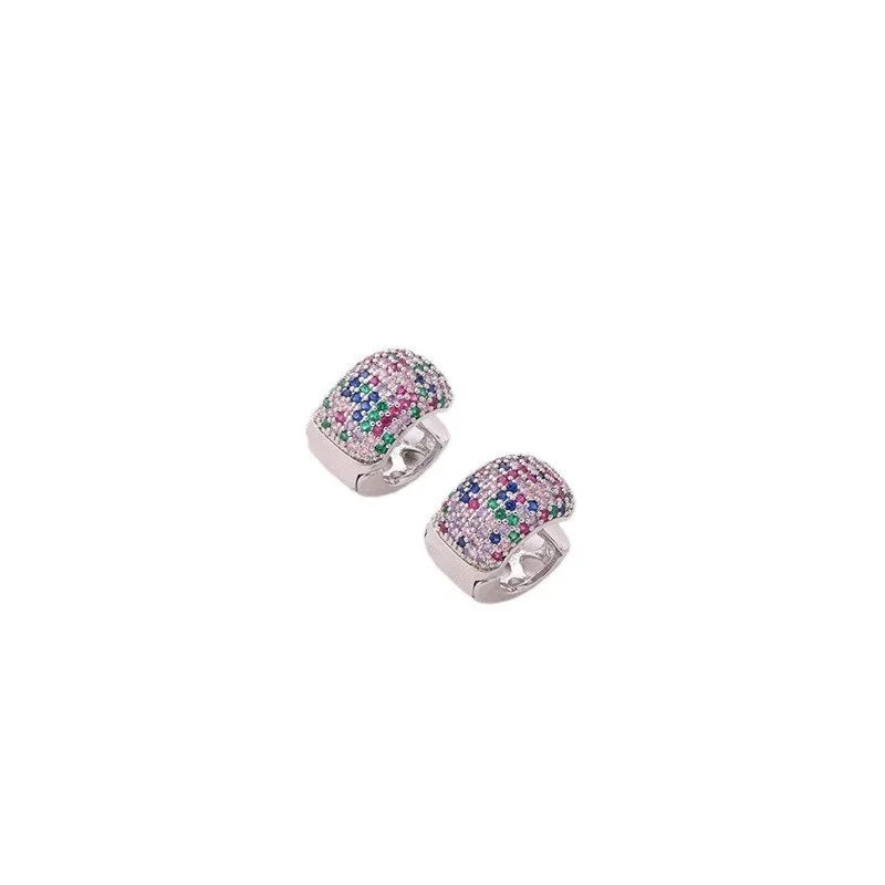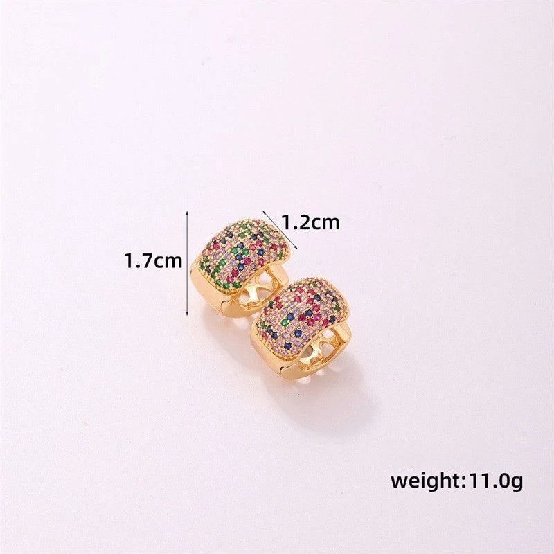 Wholesale Explosion Style Brass Stud Earrings for Women Hypoallergenic 18K Gold Plated Colorful Zircon Earrings Jewelry