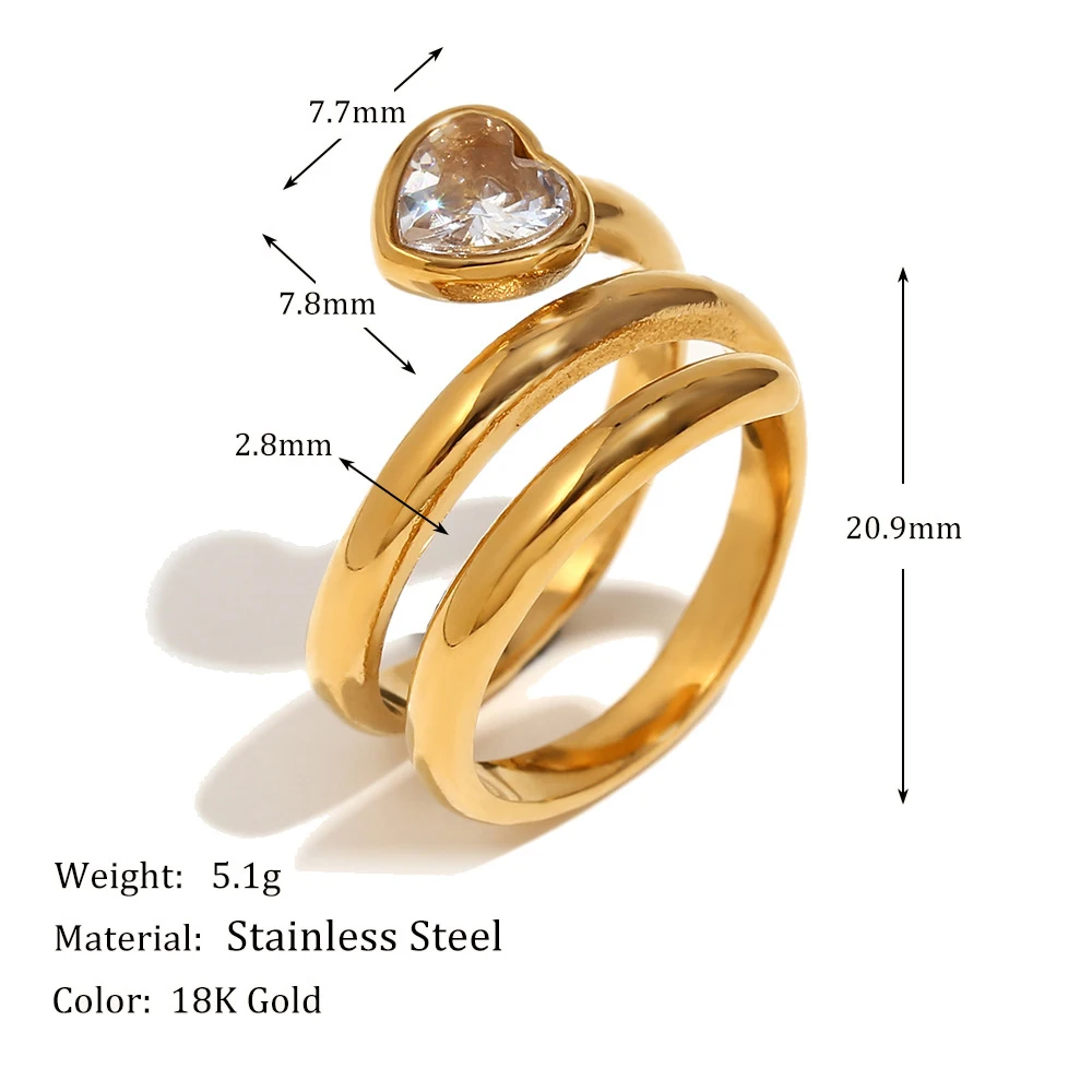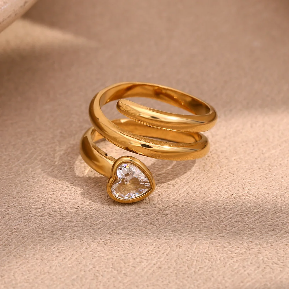 Valentine Gift Heart Shape Silver Rings for Couple Elegant Zircon Love Spiral Wrap Around Polished Statement Ring Jewelry