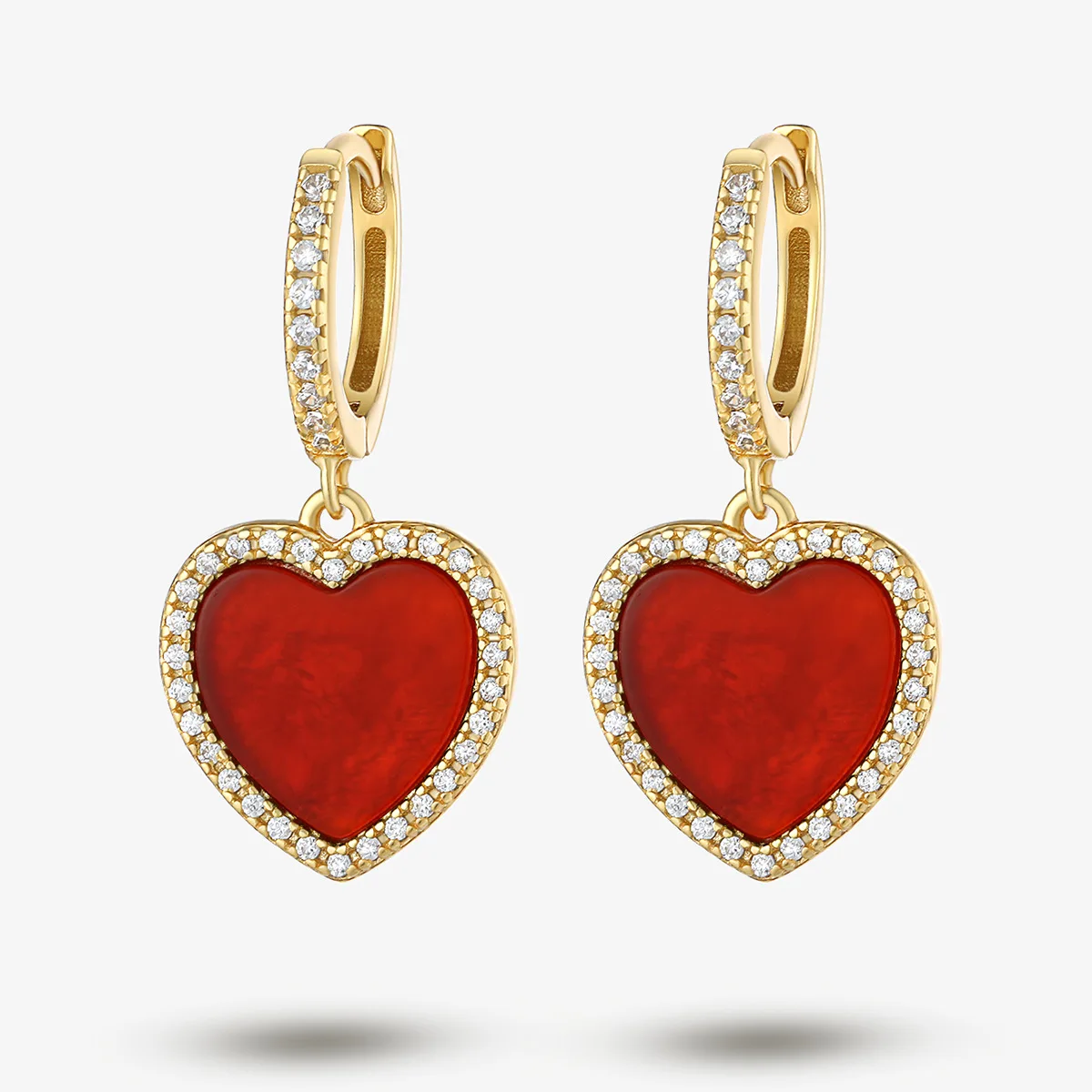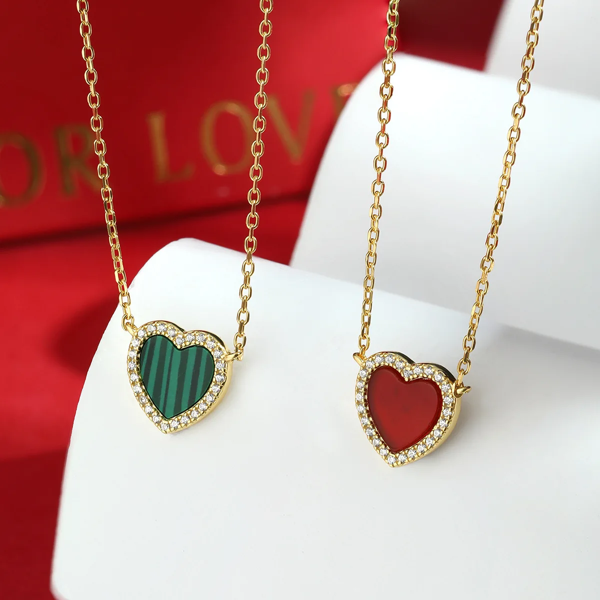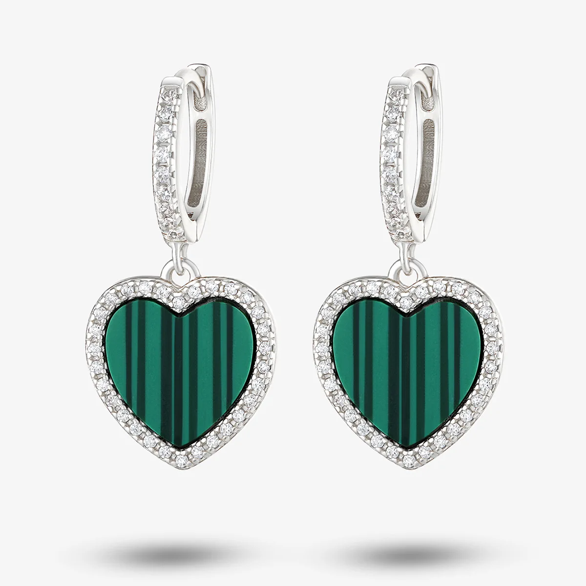 Fine Jewelry Set for Women Featuring 18K Gold Plated 925 Silver Malachite and Zirconia Heart Shape Designs
