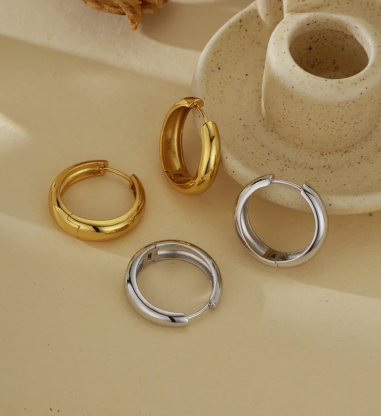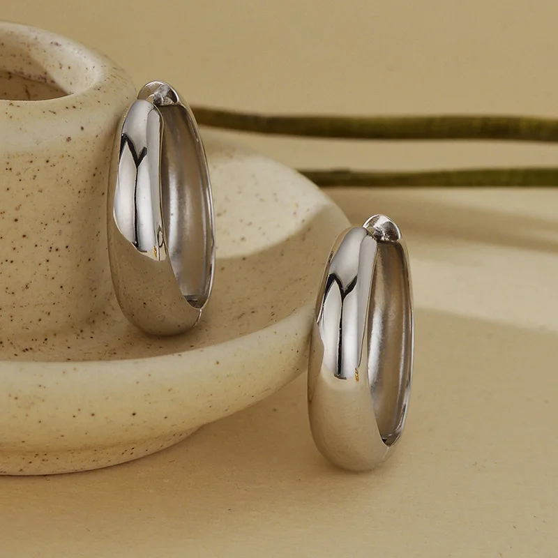 Fashion Glossy Hoop S925 Sterling Silver Earring Buckles Minimalist Plain Hoop Earrings Jewellery for Women