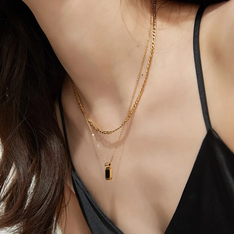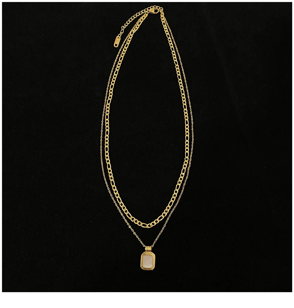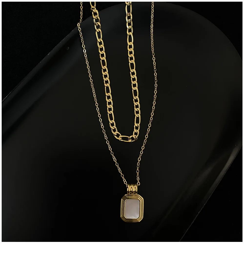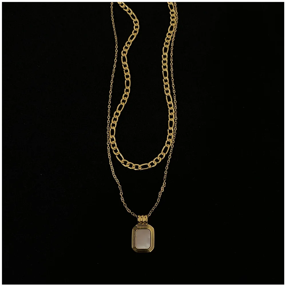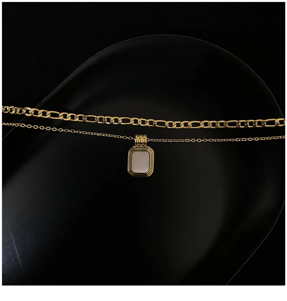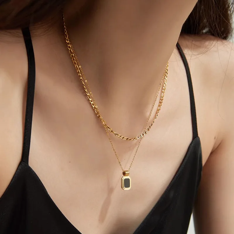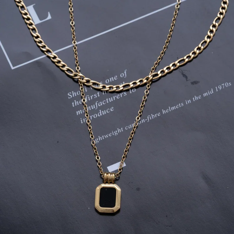 High Quality Vintage Stainless Steel Double Layered Black Onyx Necklace White Mother of Pearl Multi-Layers Necklace for Women