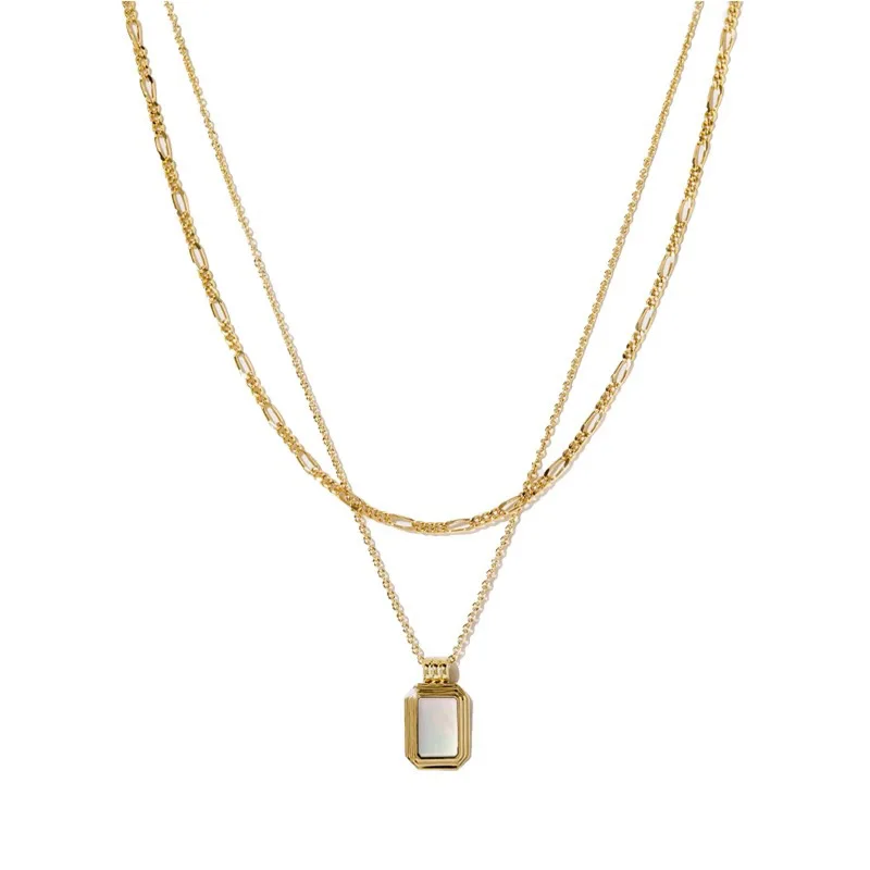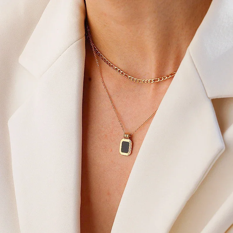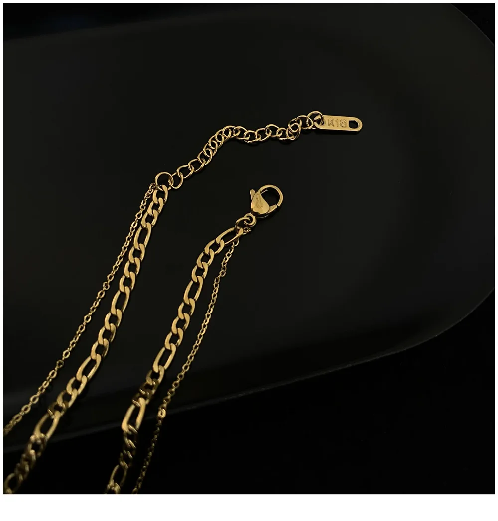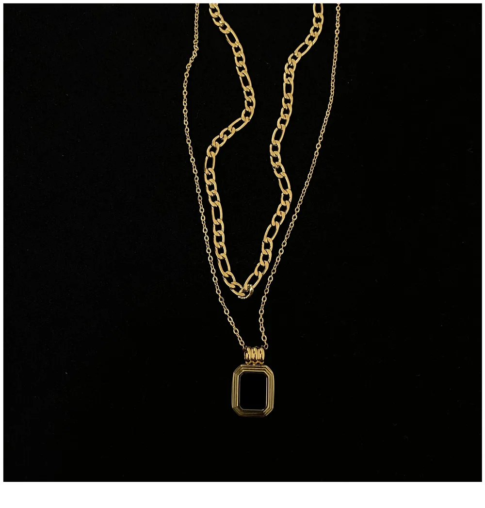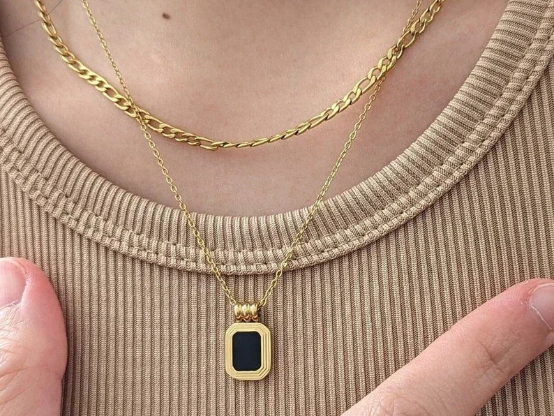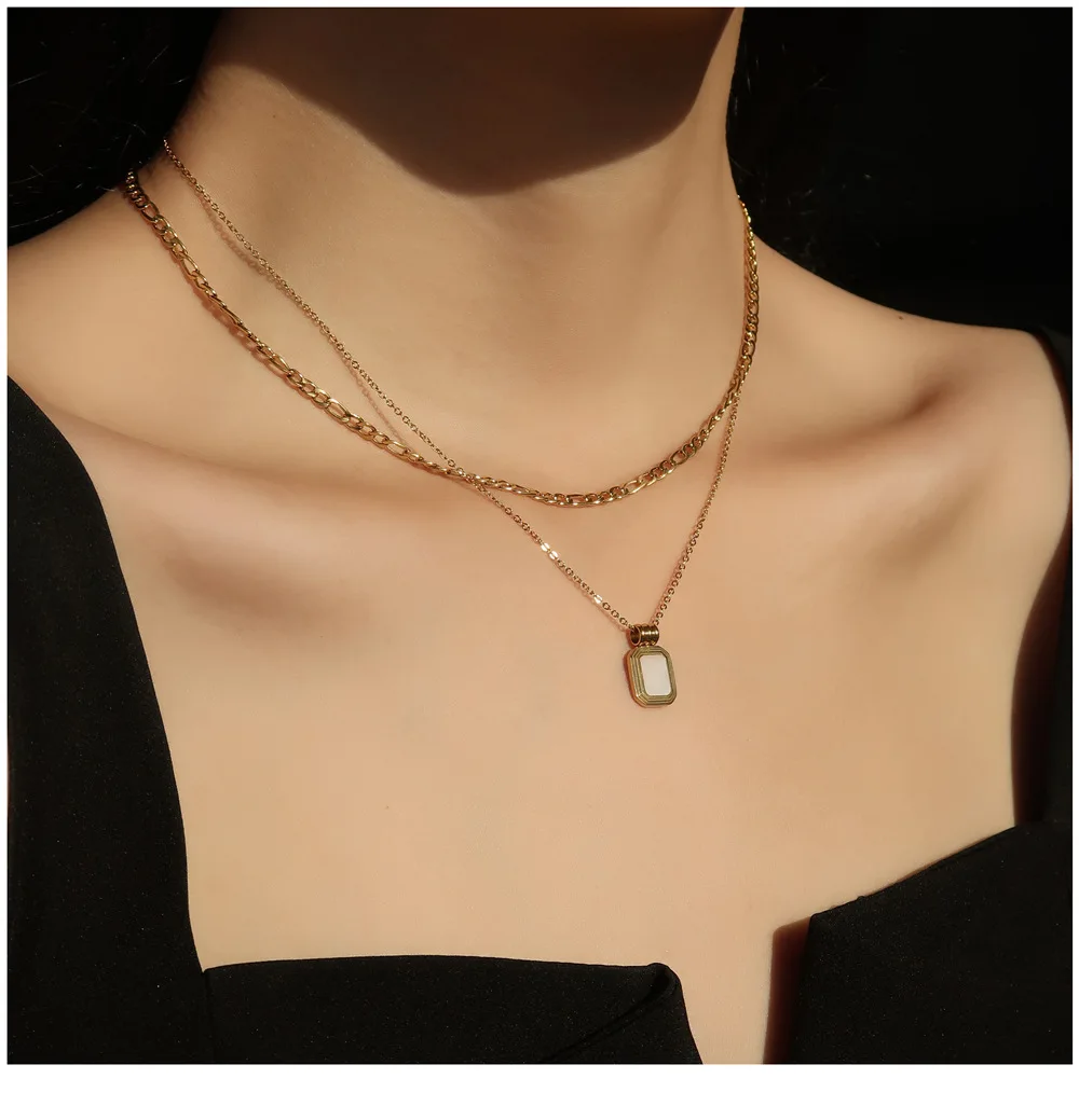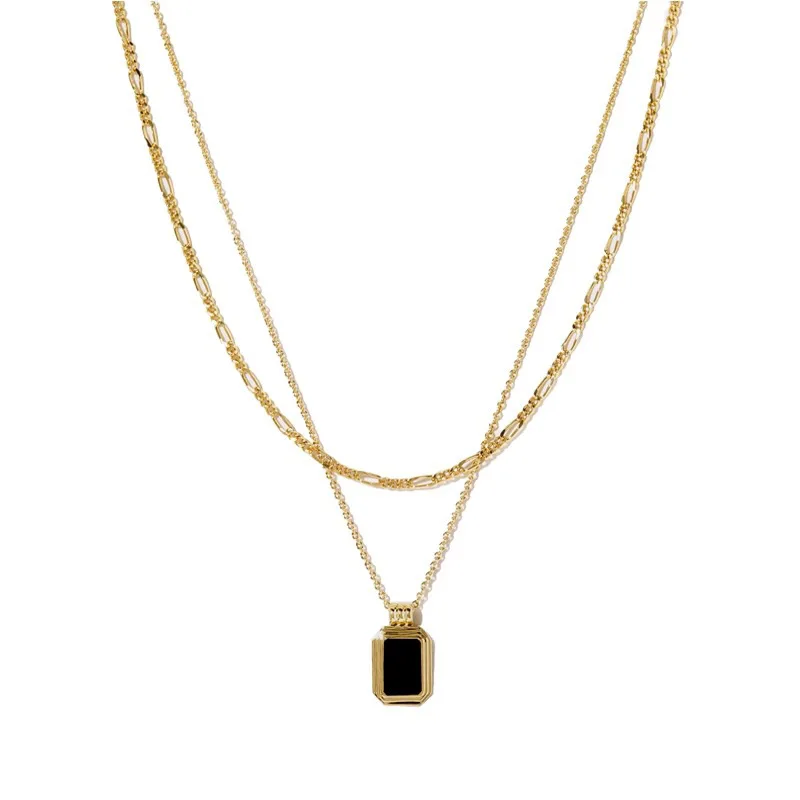 High Quality Vintage Stainless Steel Double Layered Black Onyx Necklace White Mother of Pearl Multi-Layers Necklace for Women