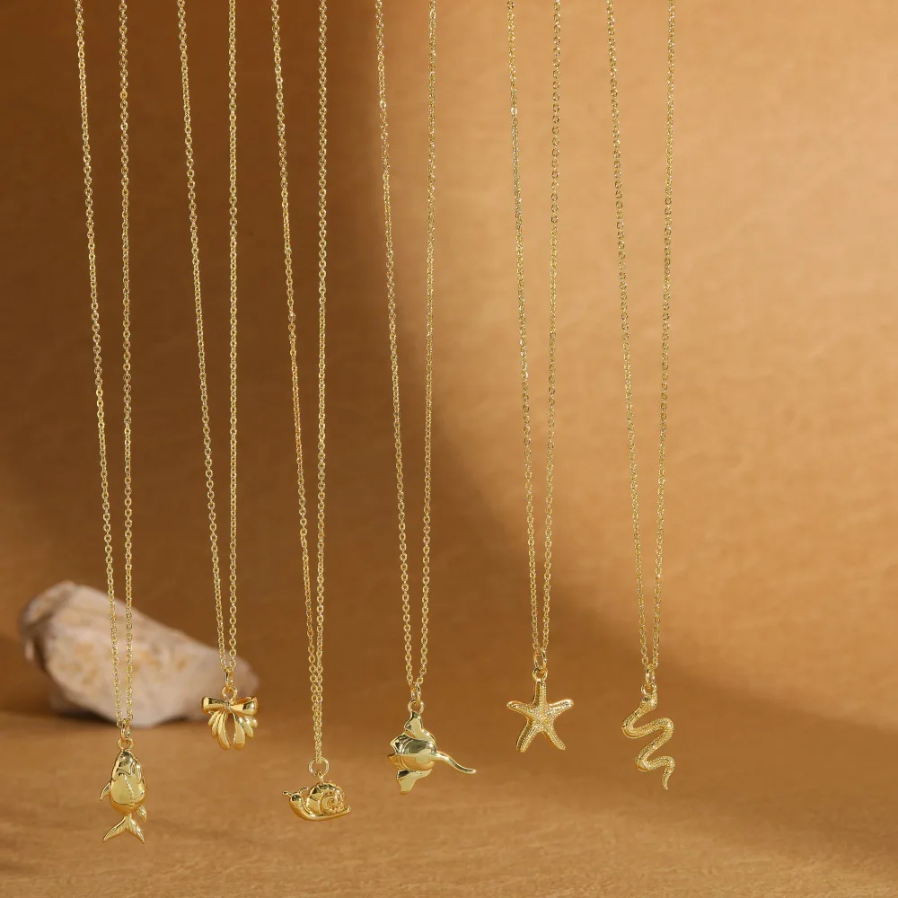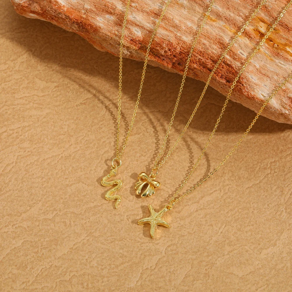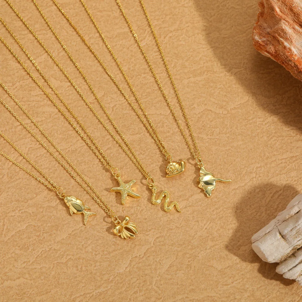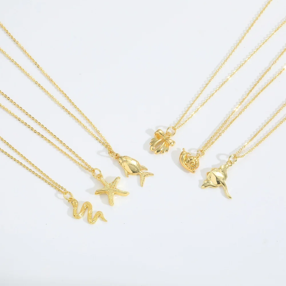 Minimalist Inoxydable Copper Starfish Conch Shell Coconut Palm Tree Pendant Necklace Fashion Jewelry