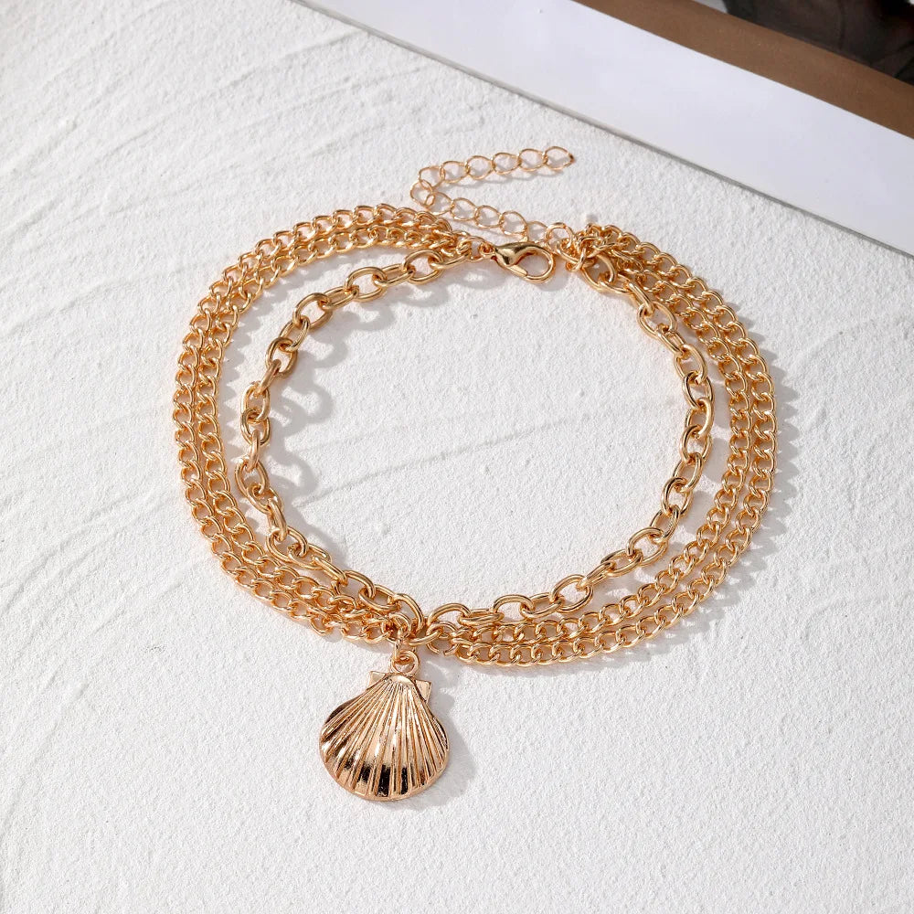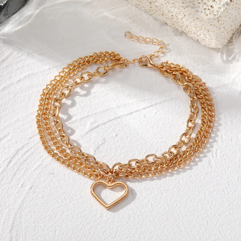2025 Trendy Bohemian Gold Silver Anklet with Heart Charms Summer Beach Layered Foot Chain Jewelry for Women