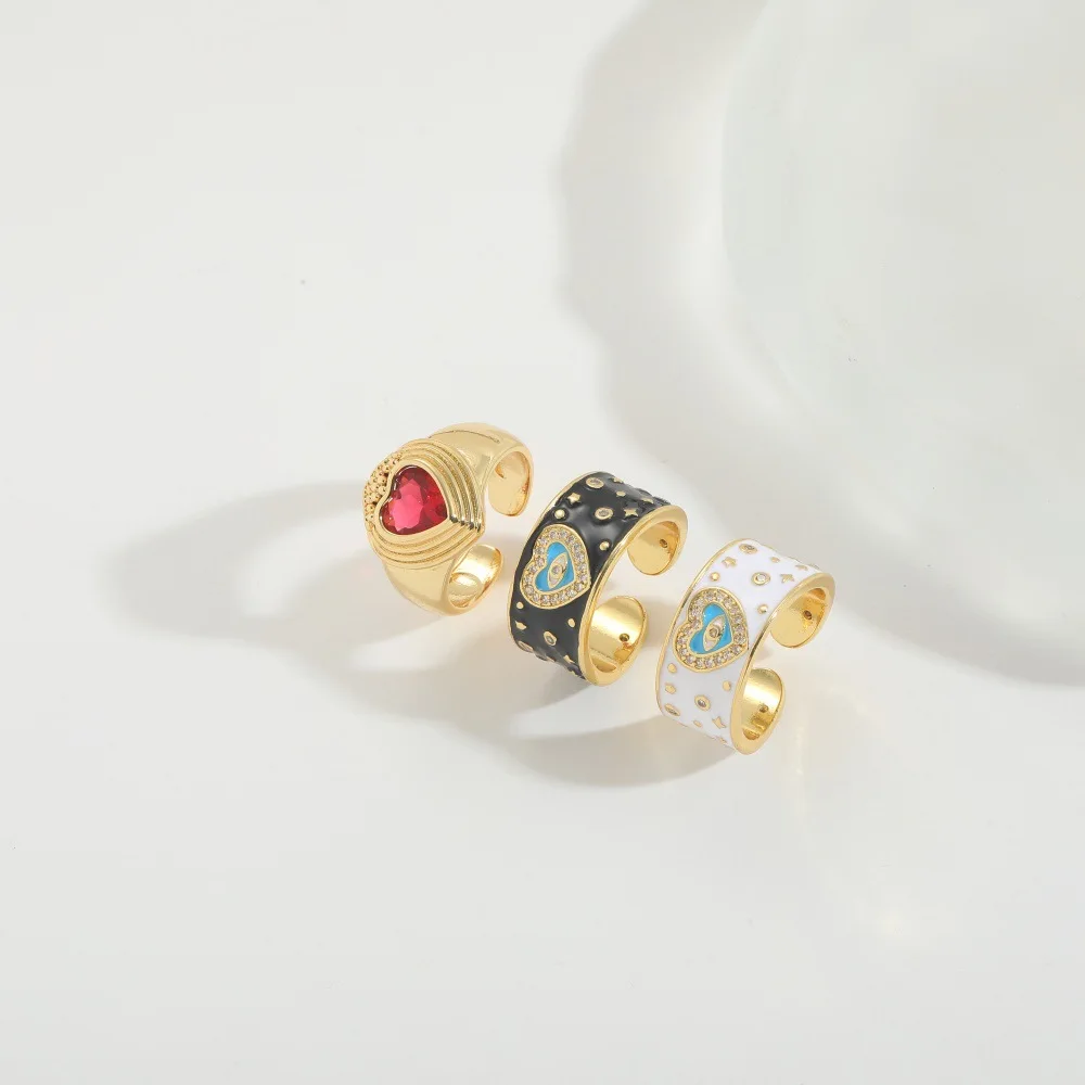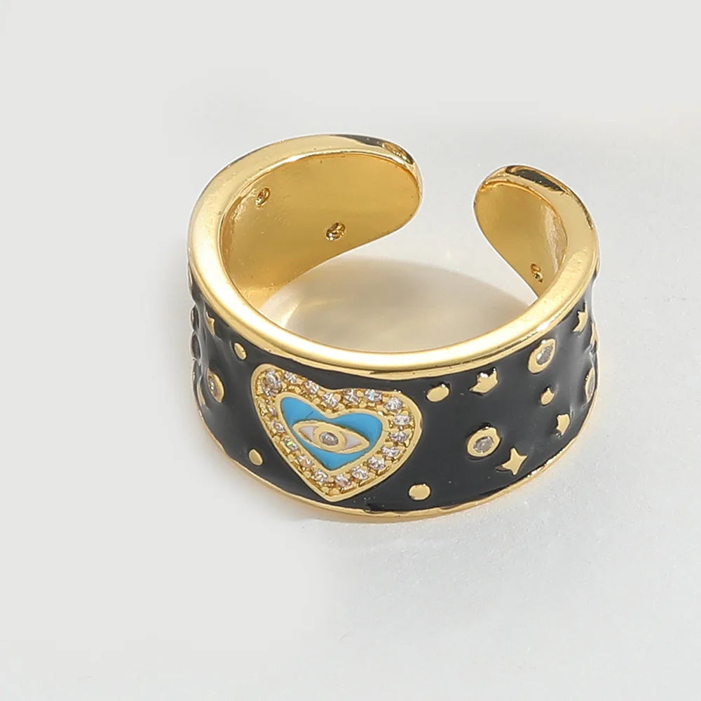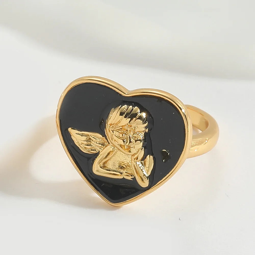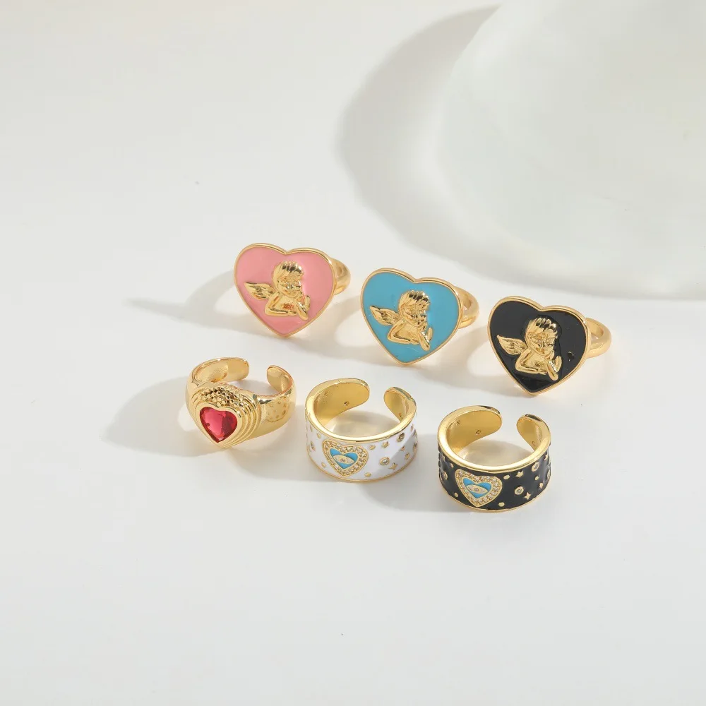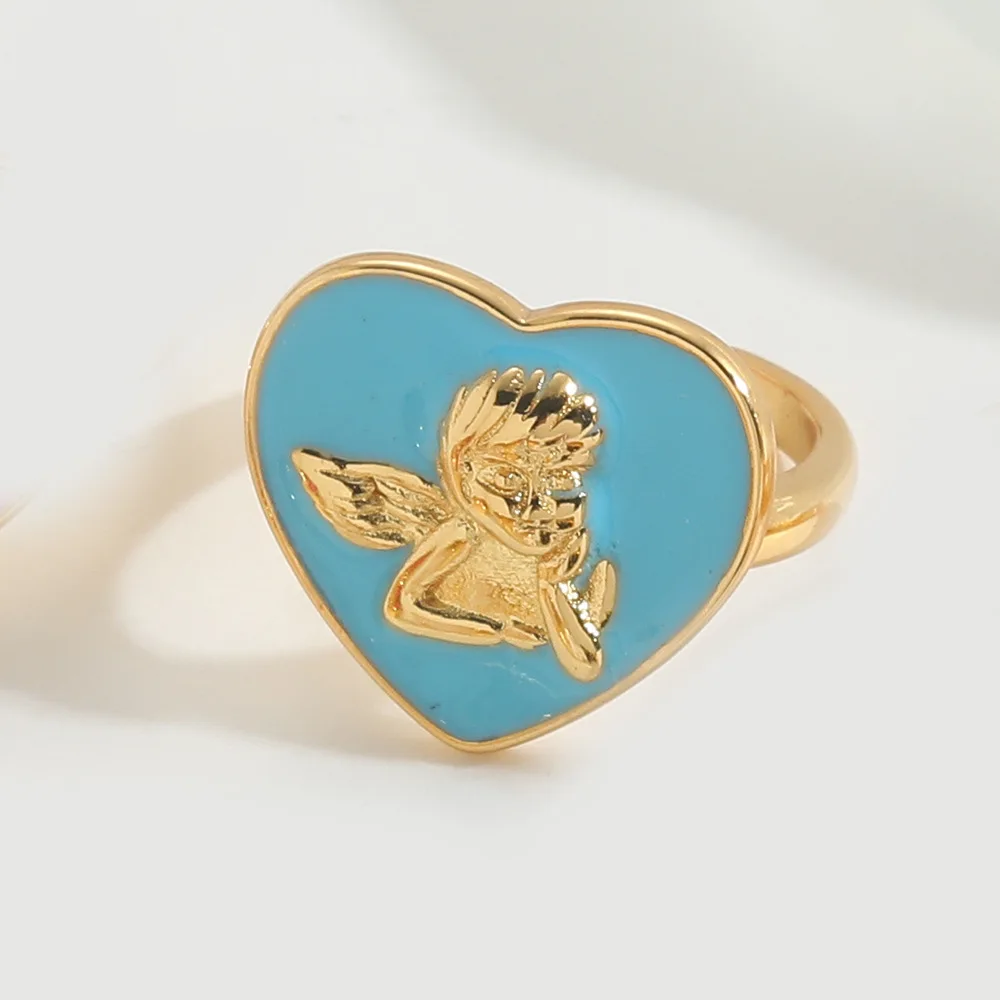 European Style Trendy Copper Ring Multicolor Enamel Adjustable Fashion Jewelry Gift with Cupid Angel Design