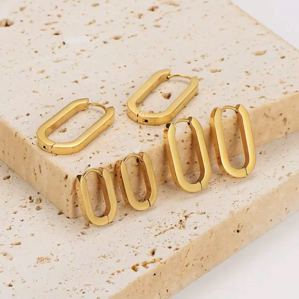 Minimalist Oval Metal Geometric Hollow Big Hoop Earrings Waterproof Stainless Steel U Shaped Hoop Earrings for Women